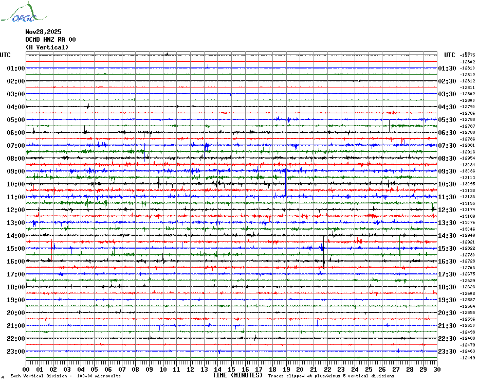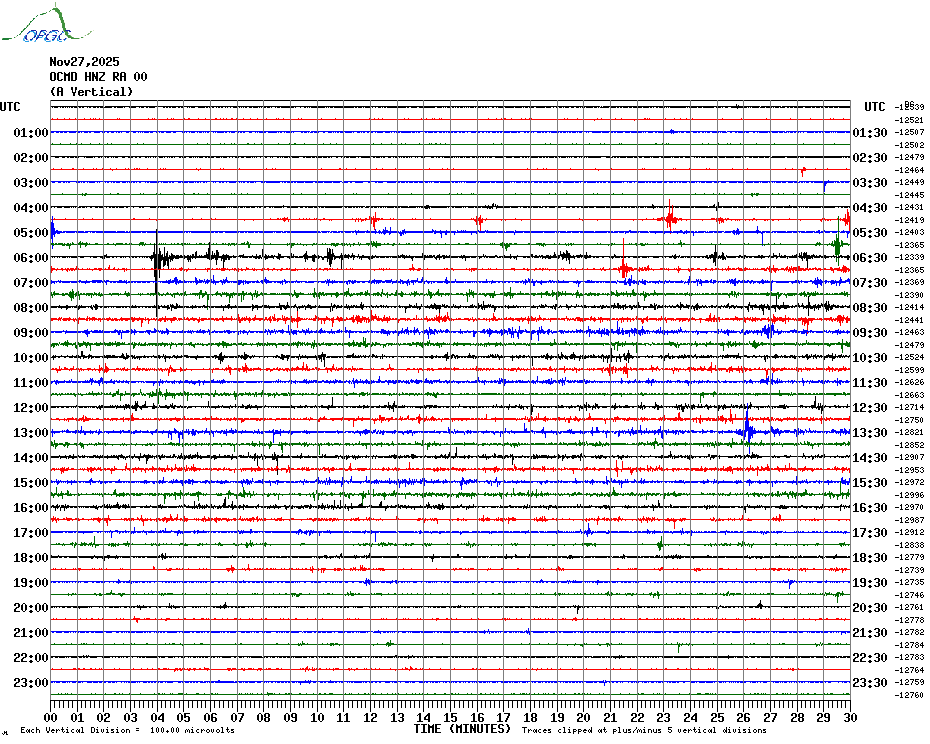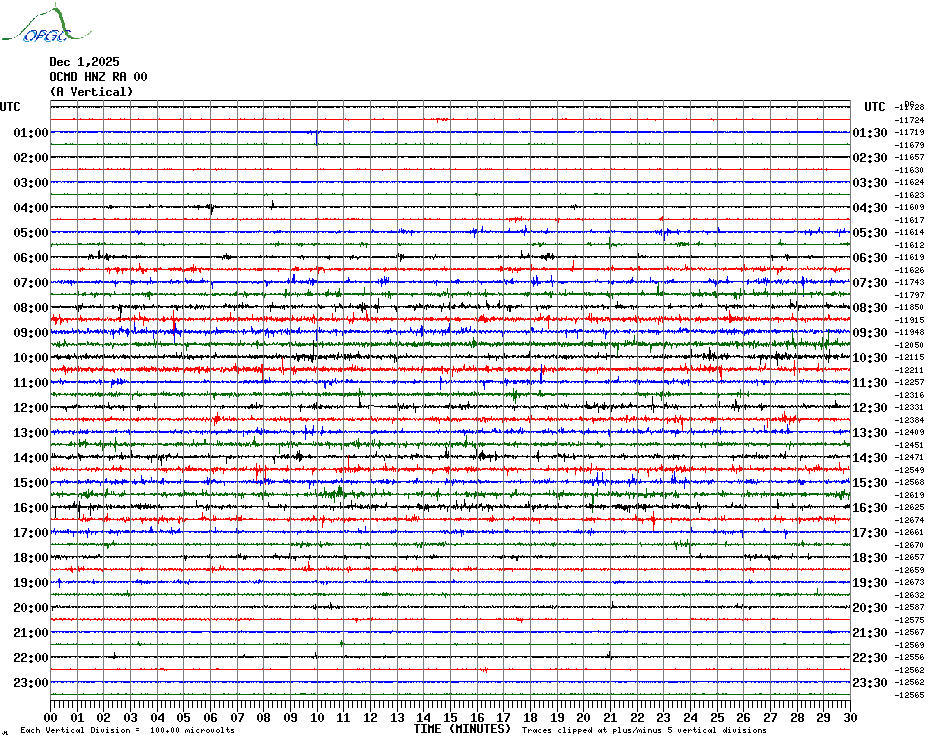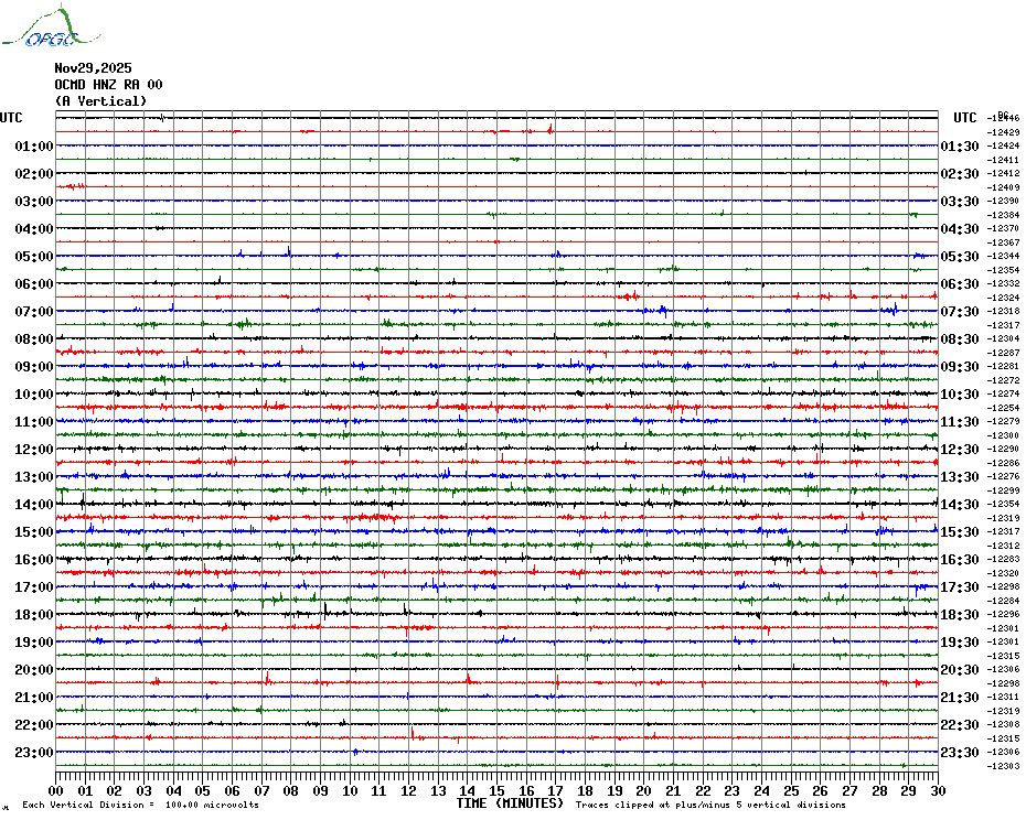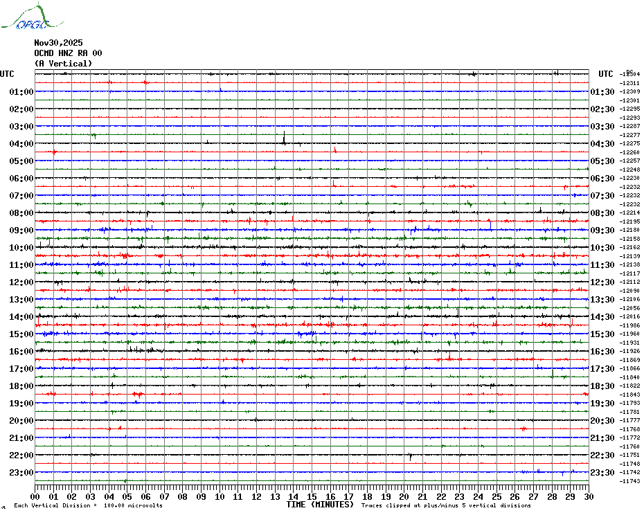 Sismogrammes du Réseau Sismologique Auvergne par fenêtre de 24h