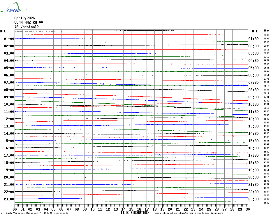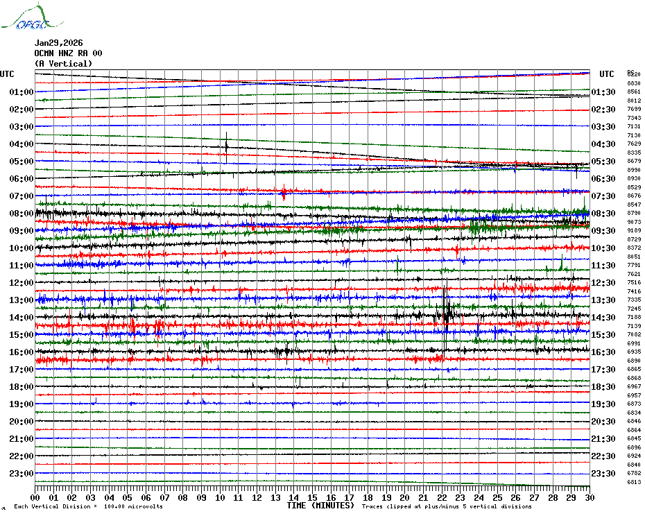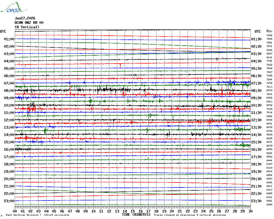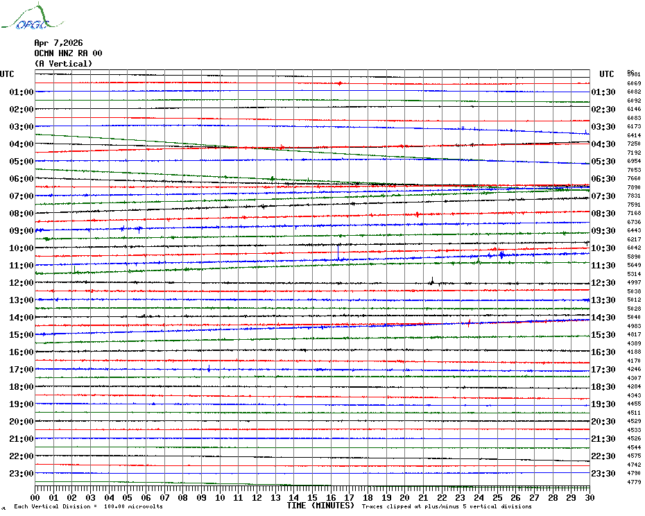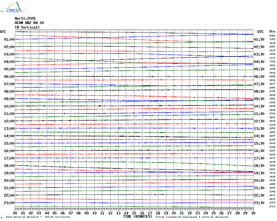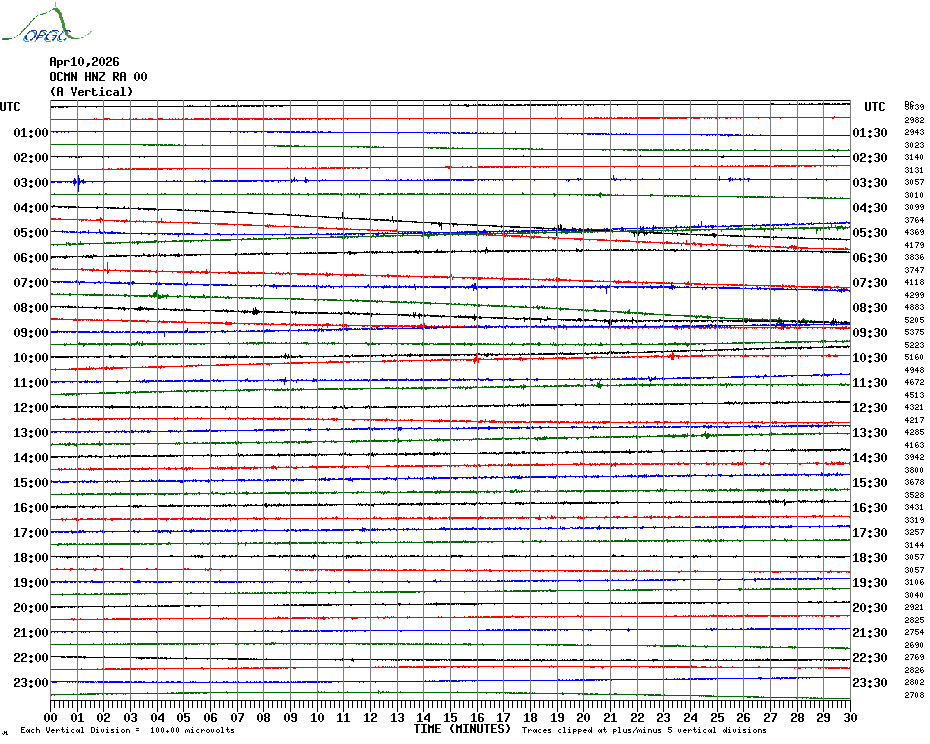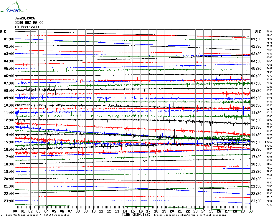 Sismogrammes du Réseau Sismologique Auvergne par fenêtre de 24h