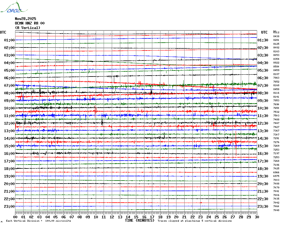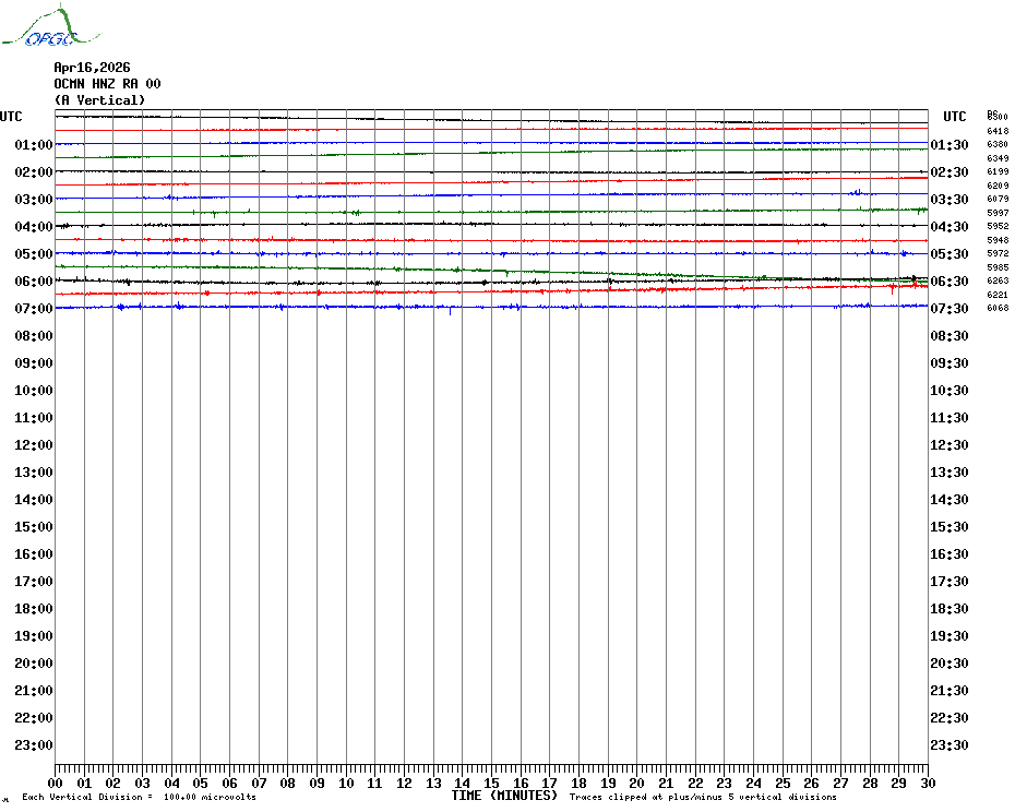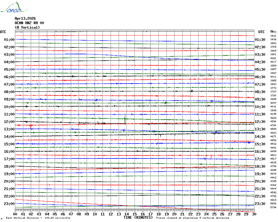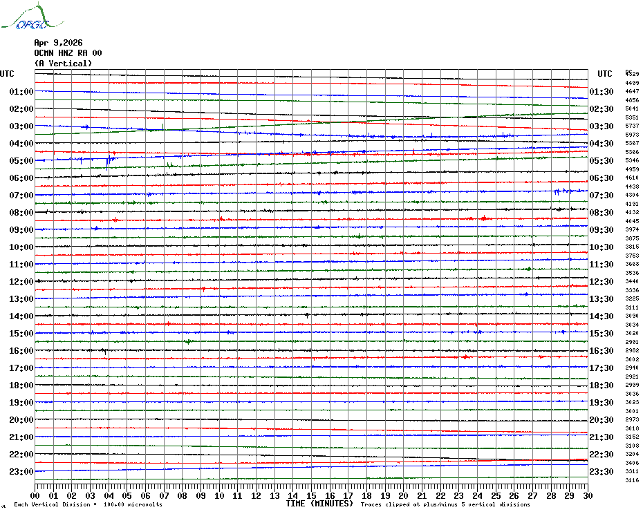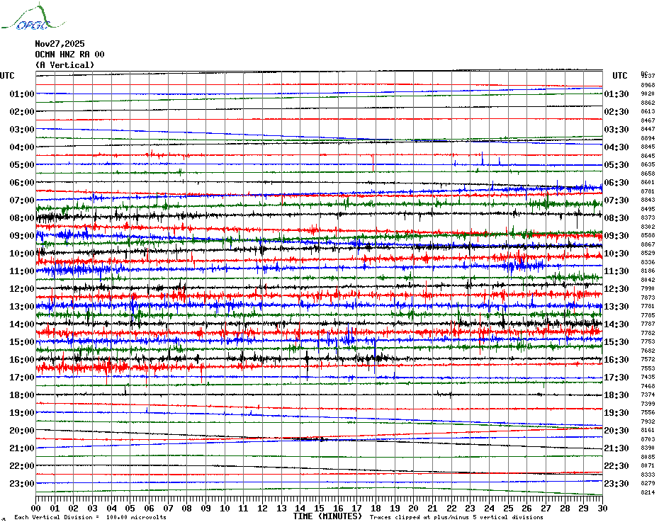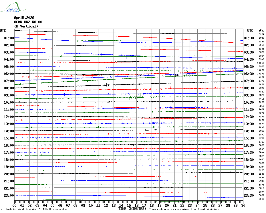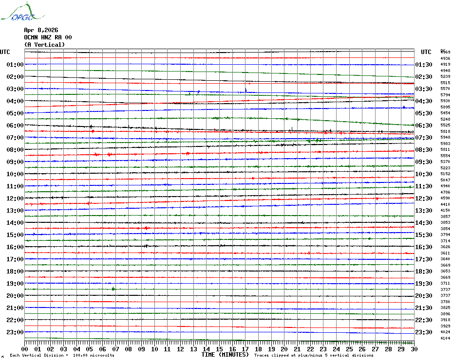 Sismogrammes du Réseau Sismologique Auvergne par fenêtre de 24h