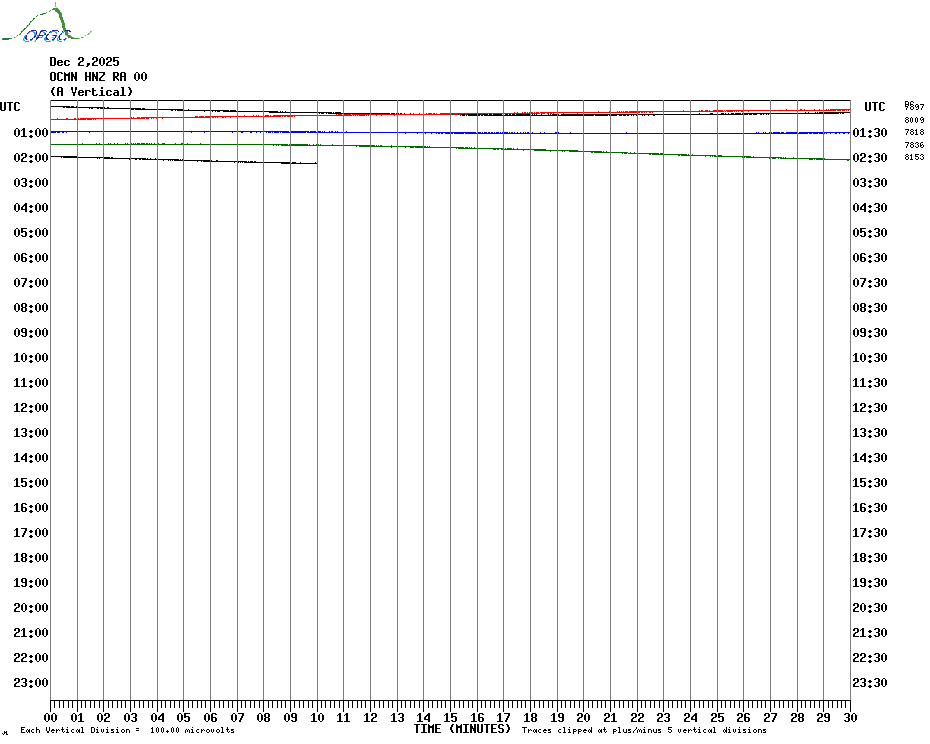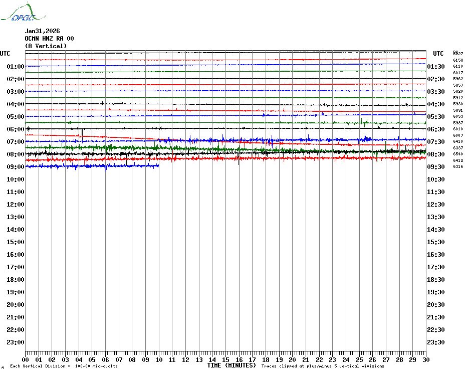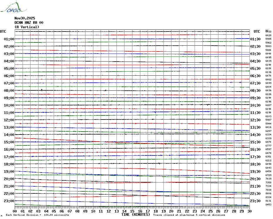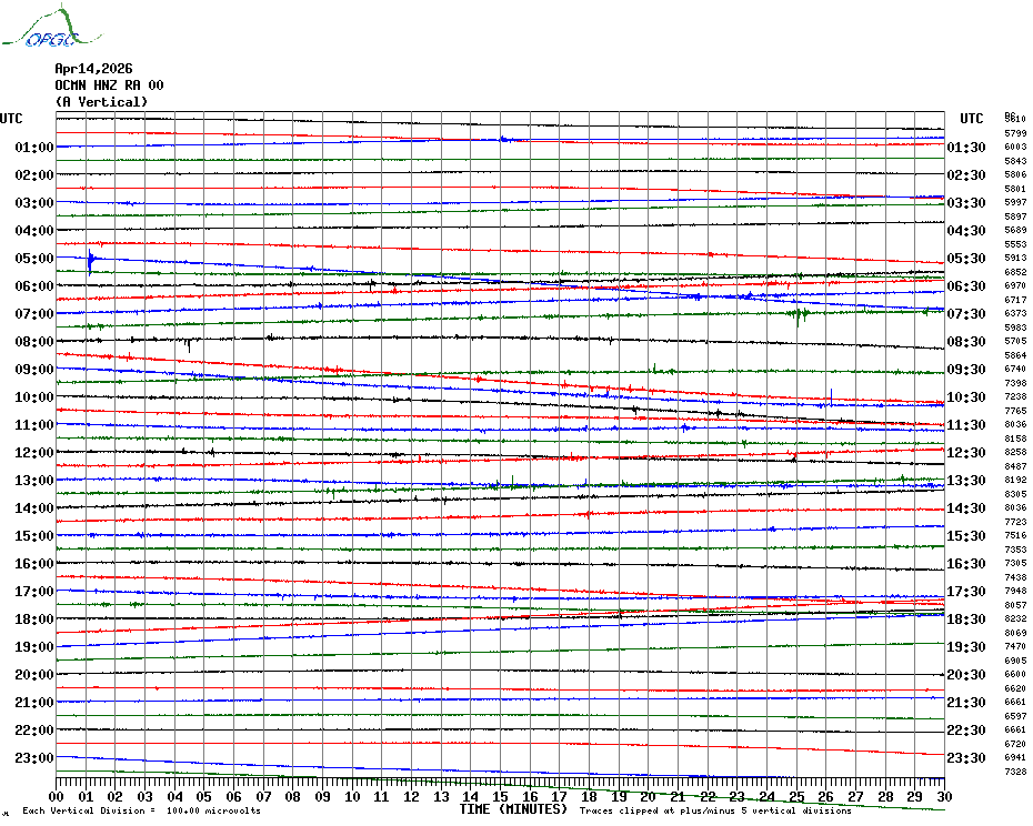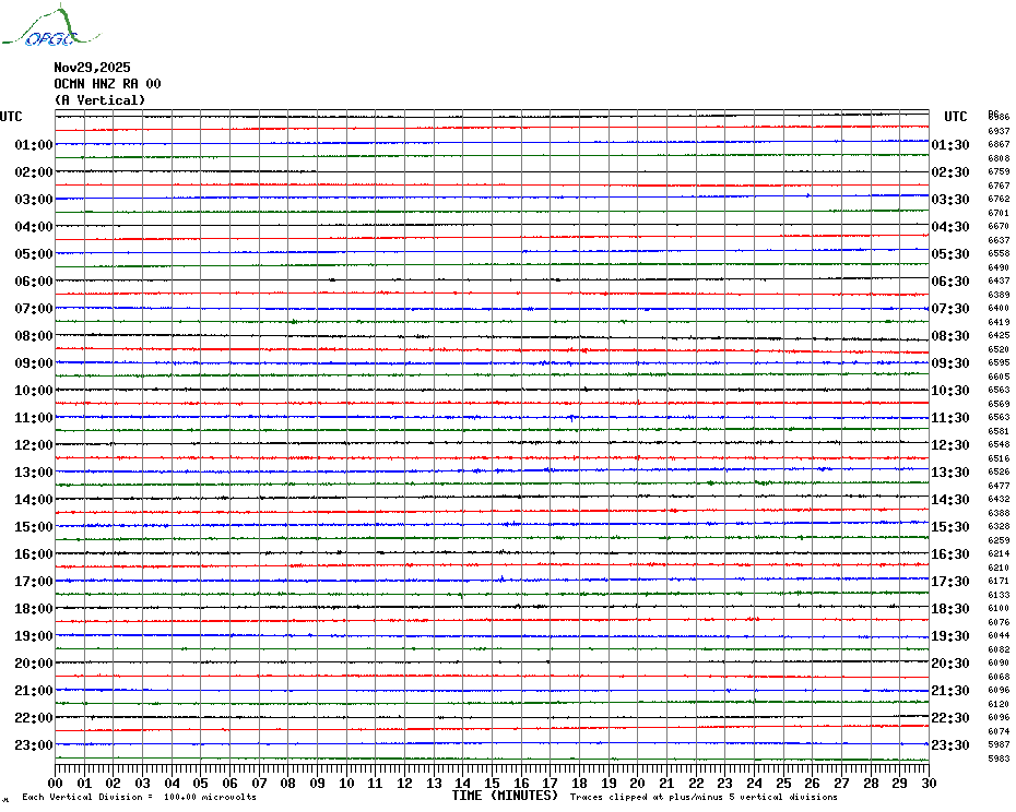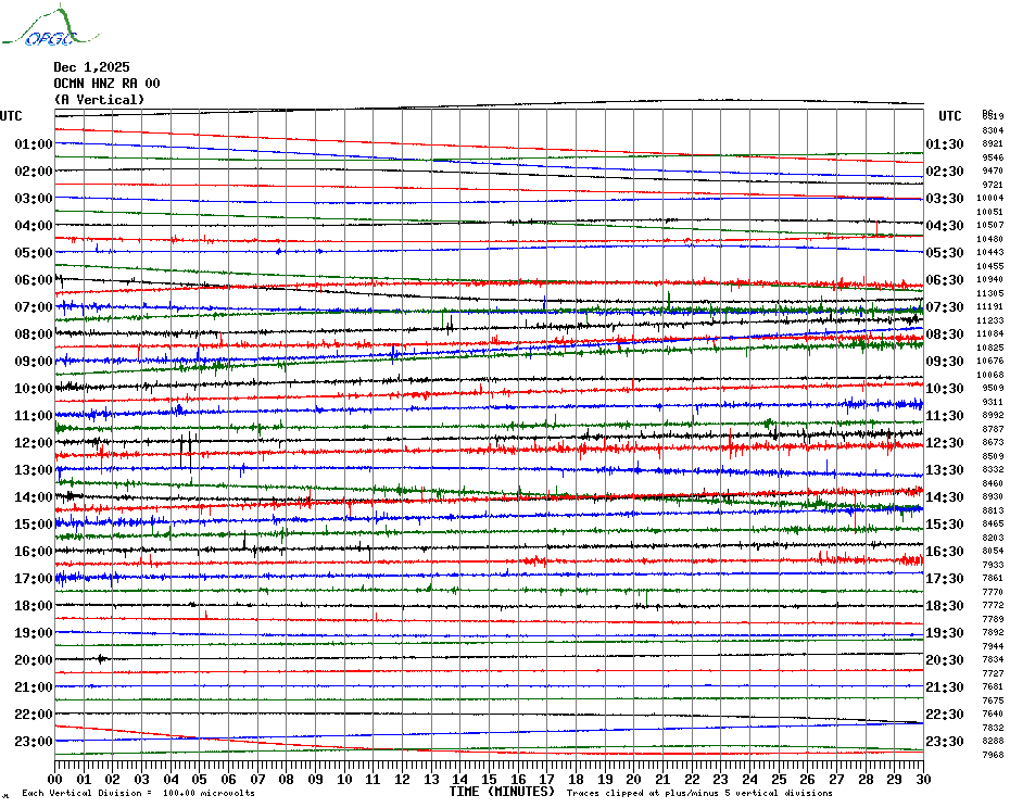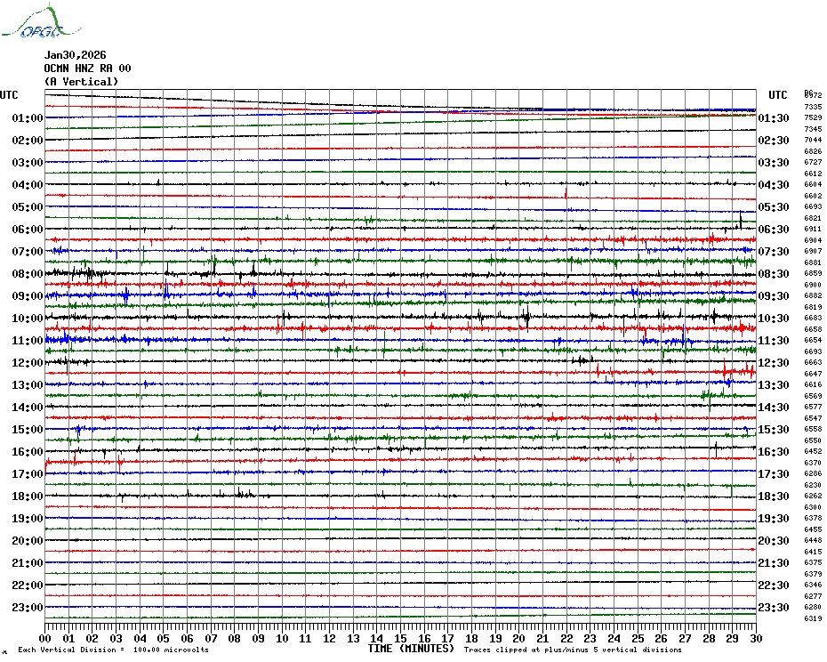 Sismogrammes du Réseau Sismologique Auvergne par fenêtre de 24h