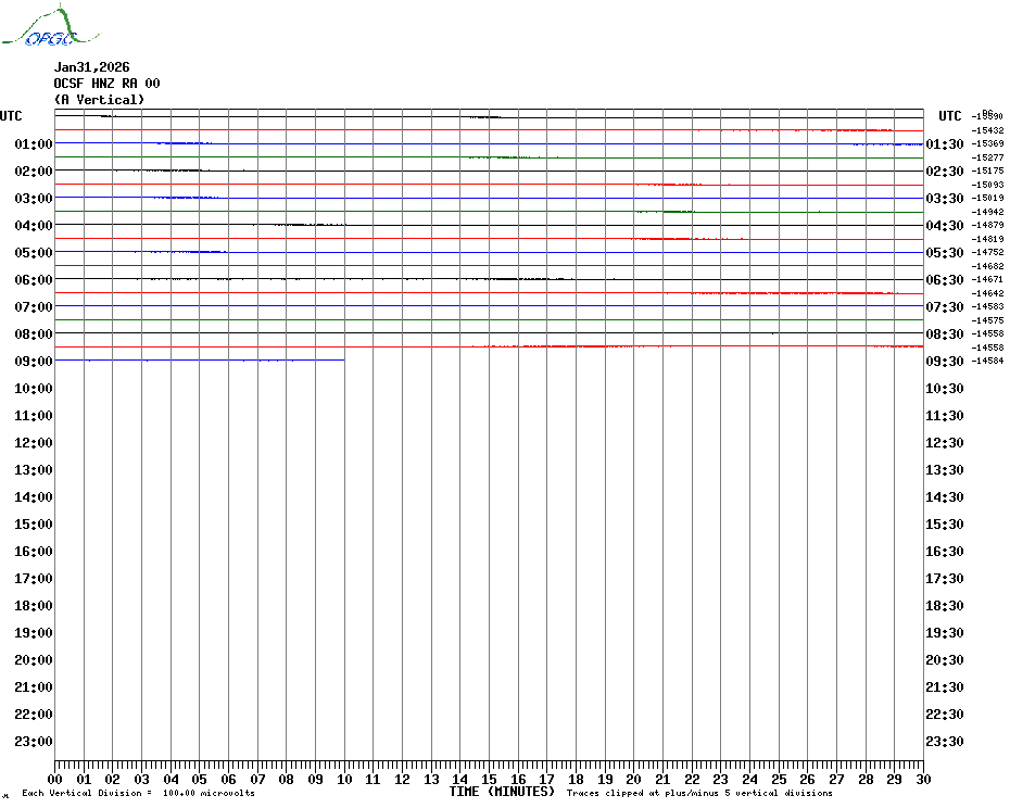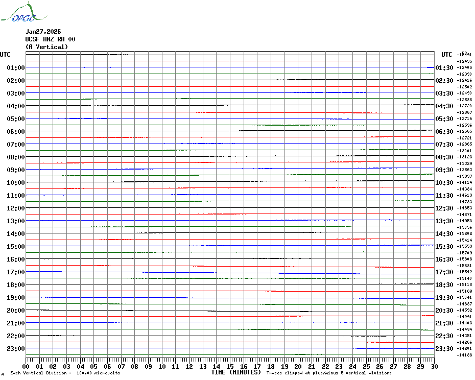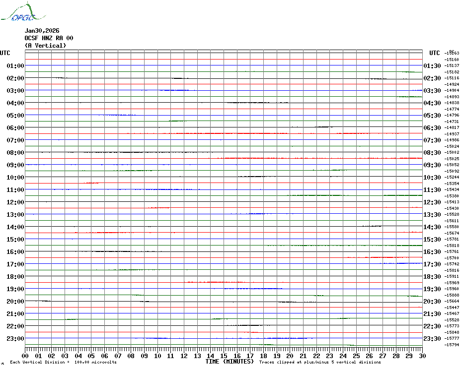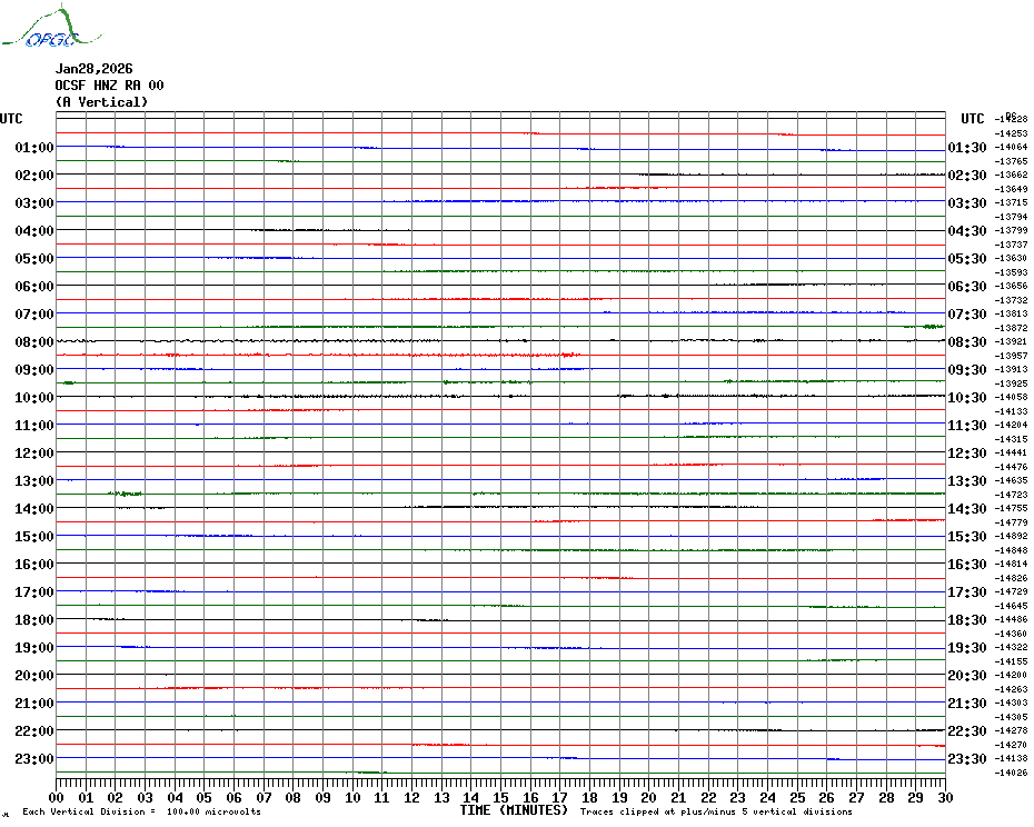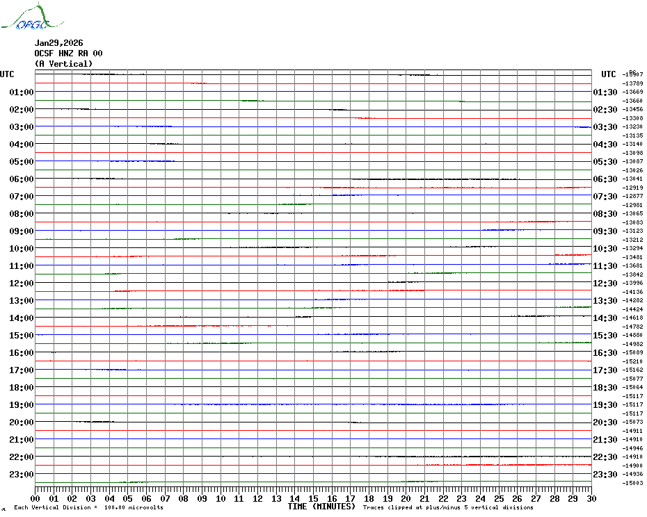 Sismogrammes du Réseau Sismologique Auvergne par fenêtre de 24h