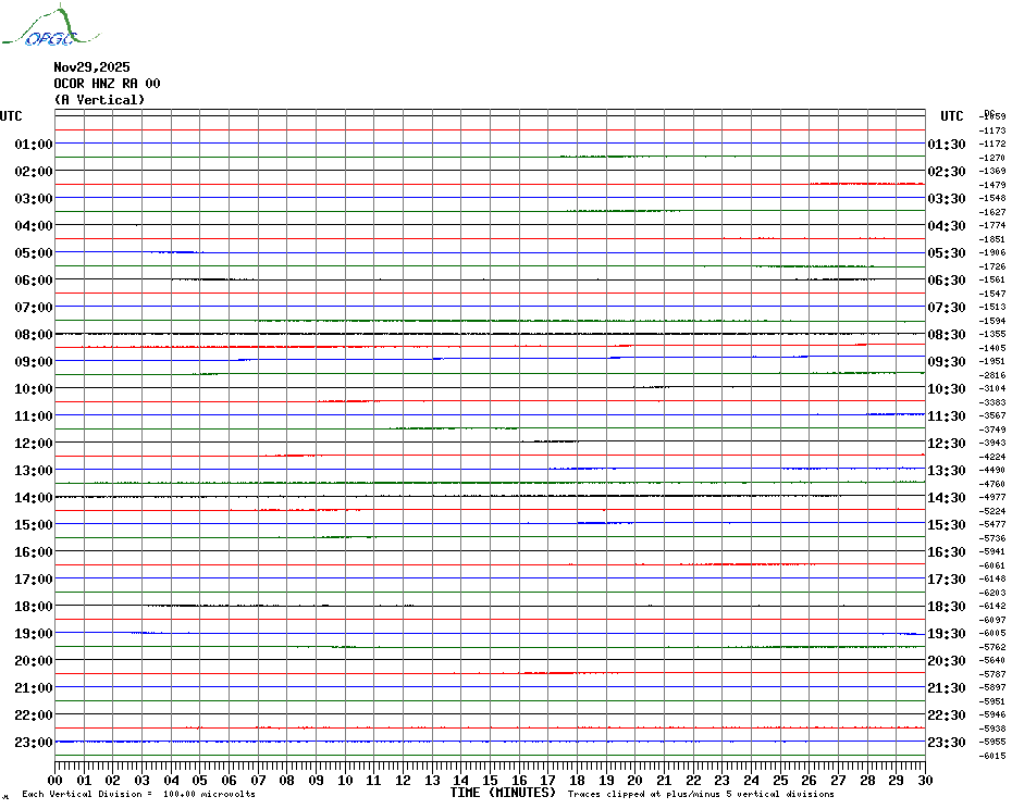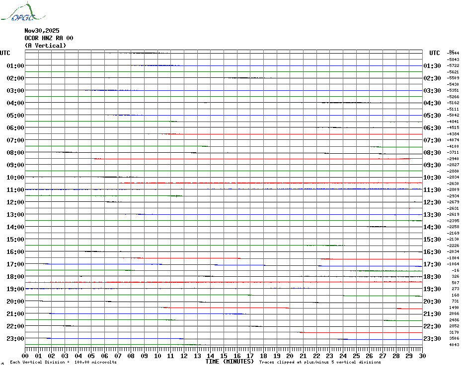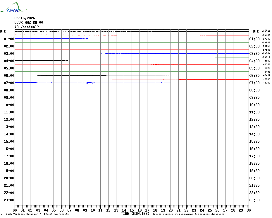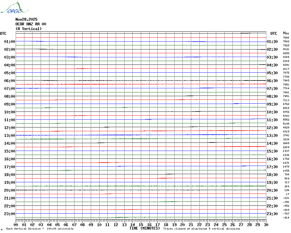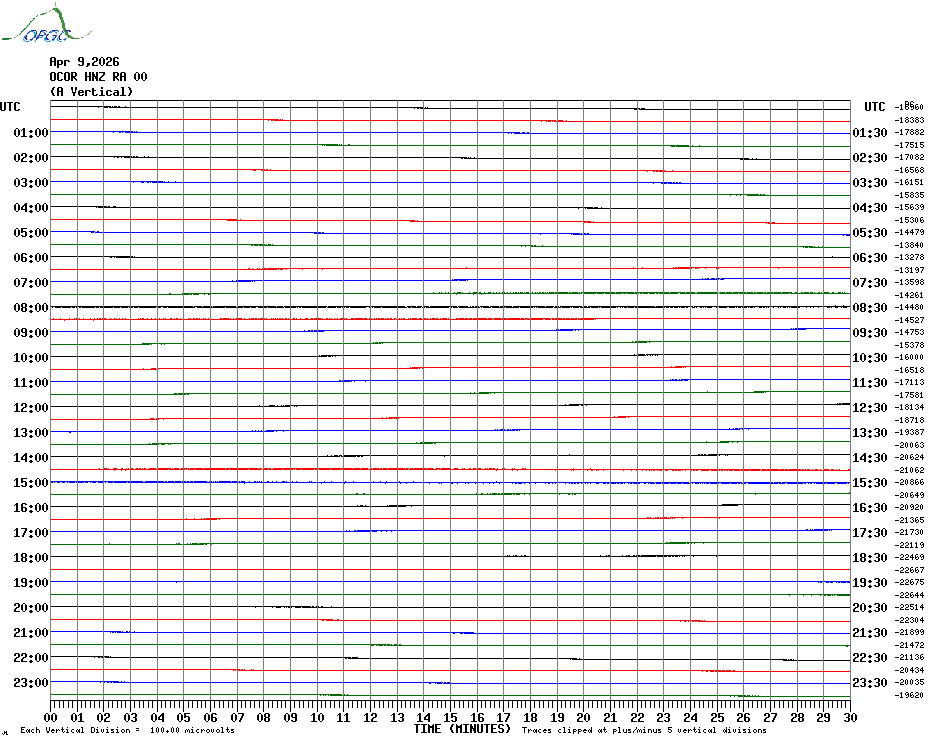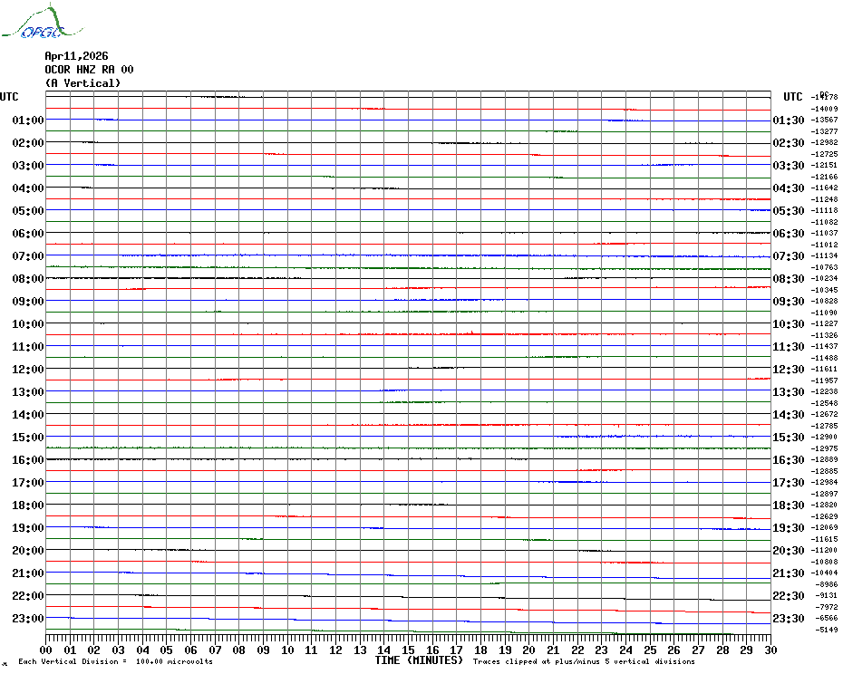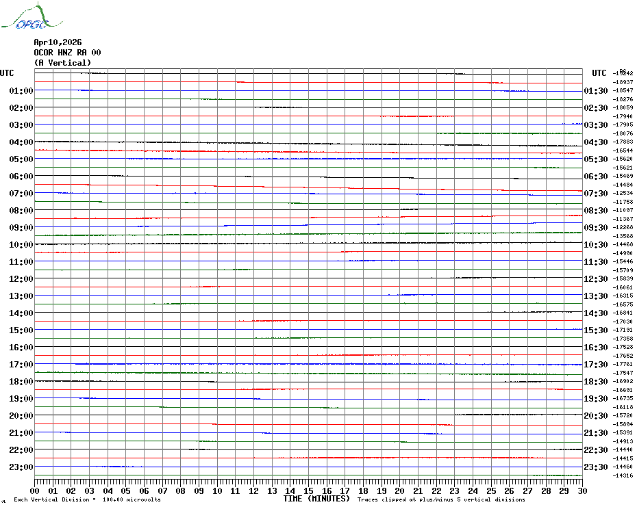 Sismogrammes du Réseau Sismologique Auvergne par fenêtre de 24h