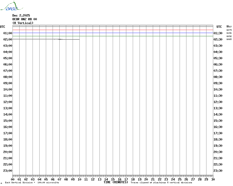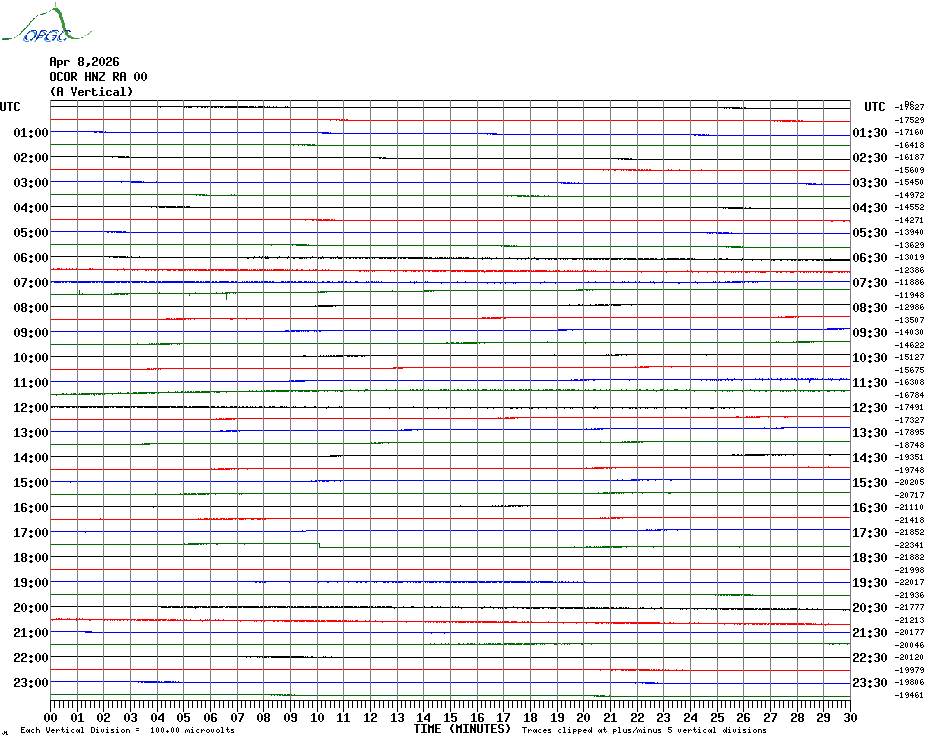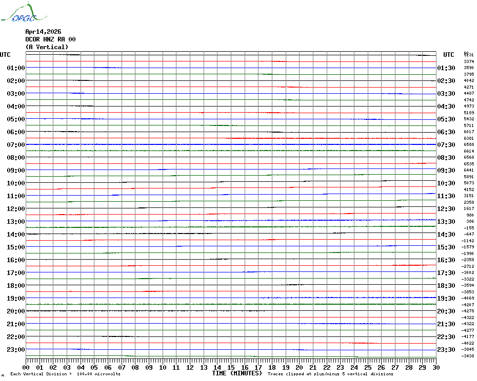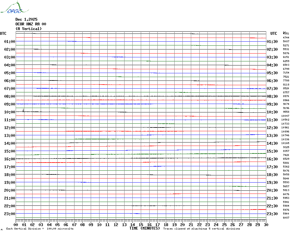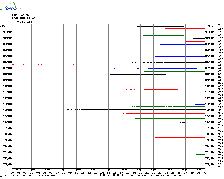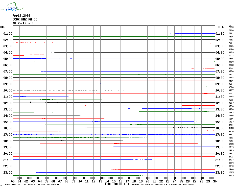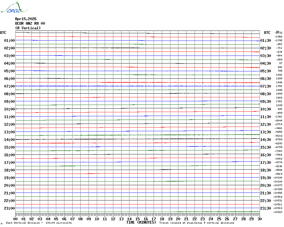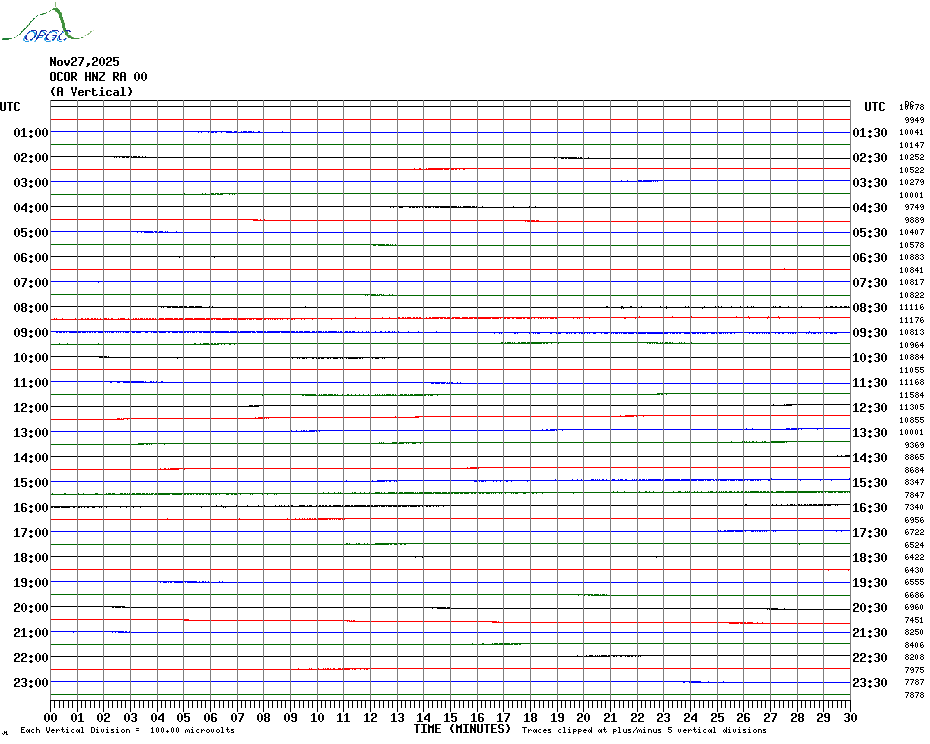 Sismogrammes du Réseau Sismologique Auvergne par fenêtre de 24h