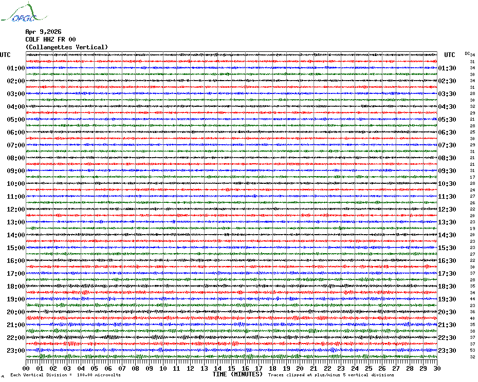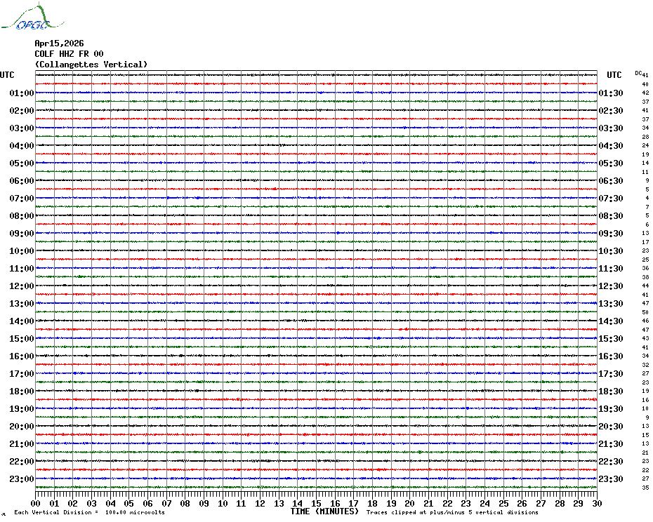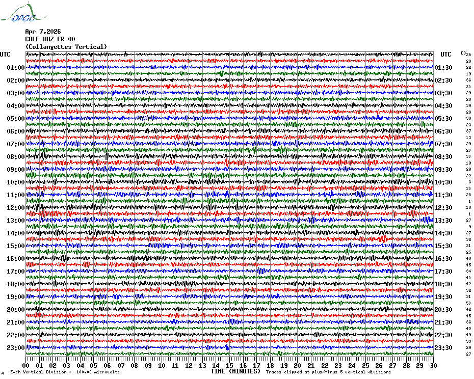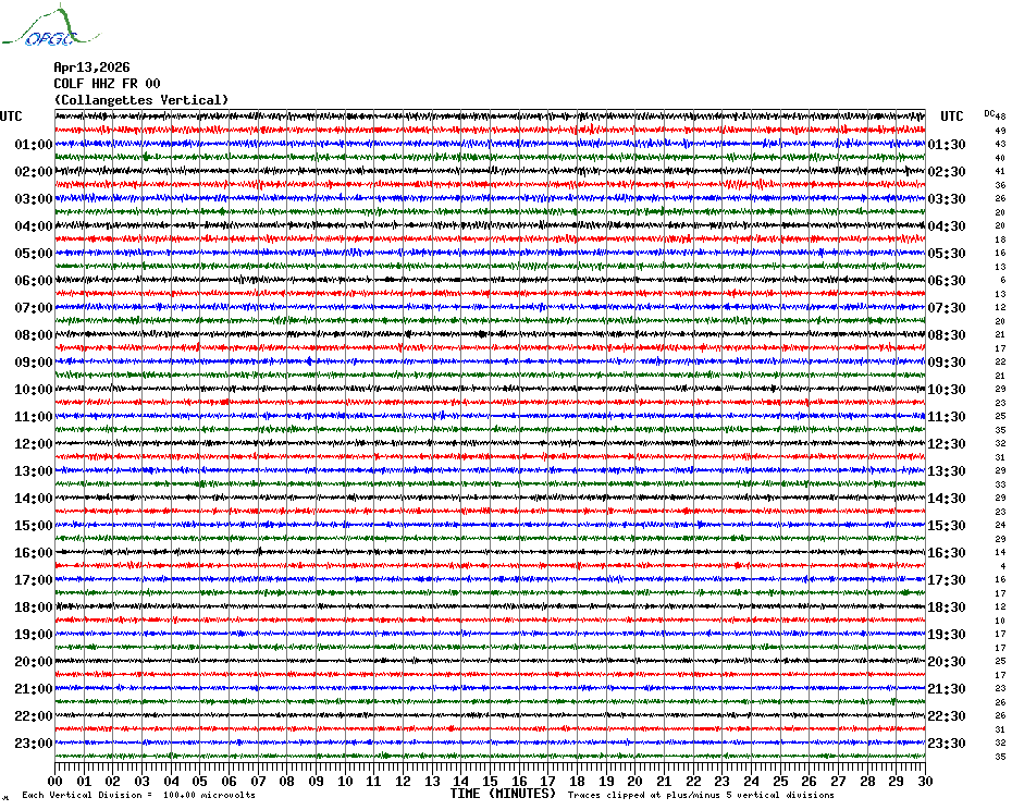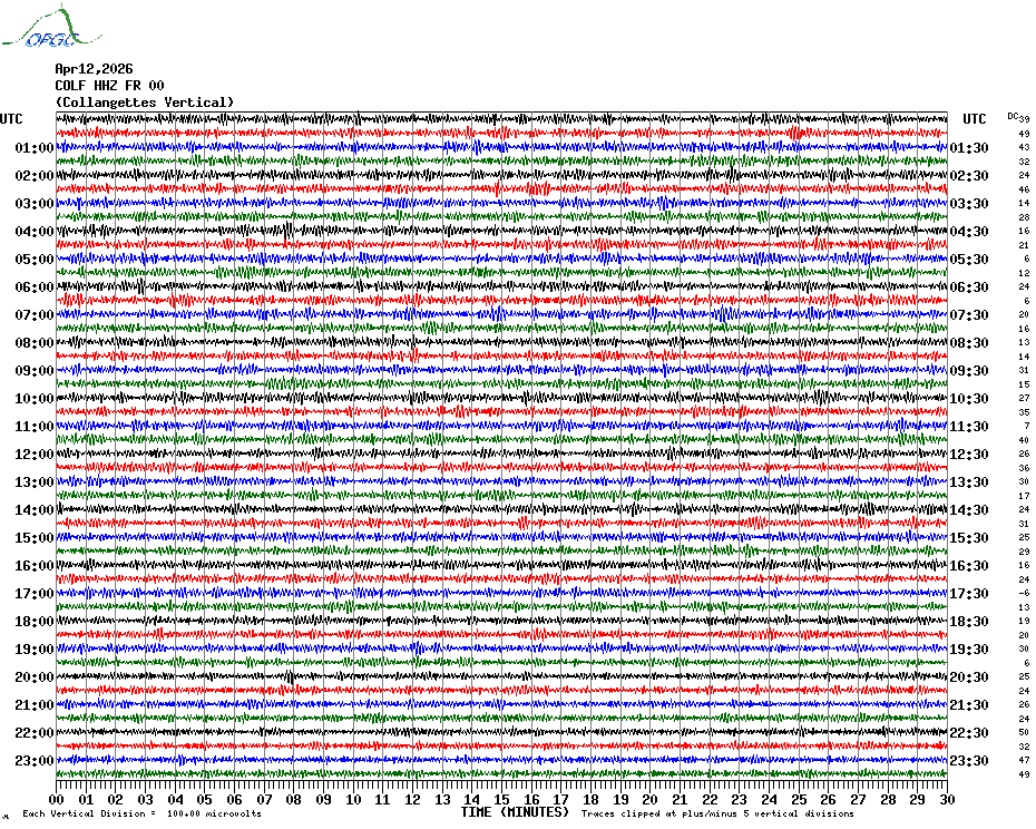 Sismogrammes du Réseau Sismologique Auvergne par fenêtre de 24h