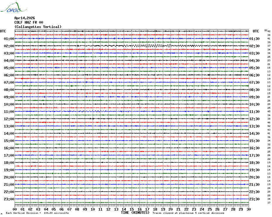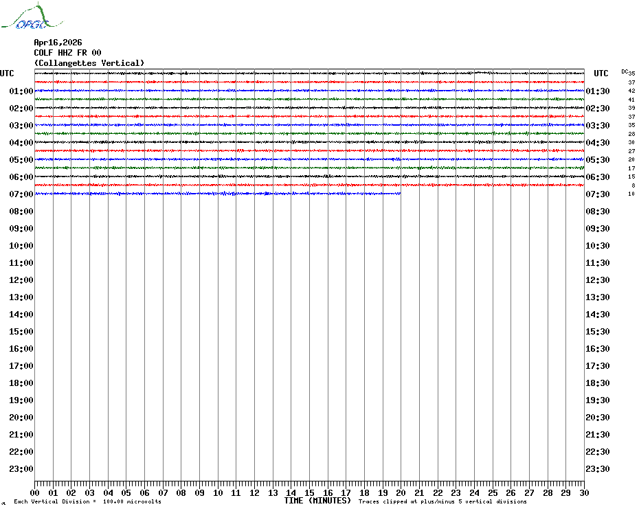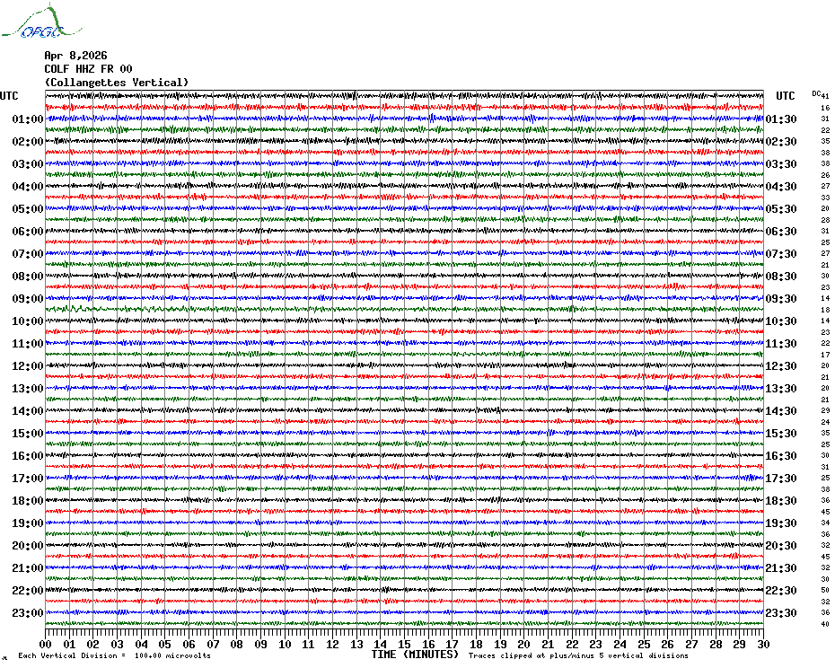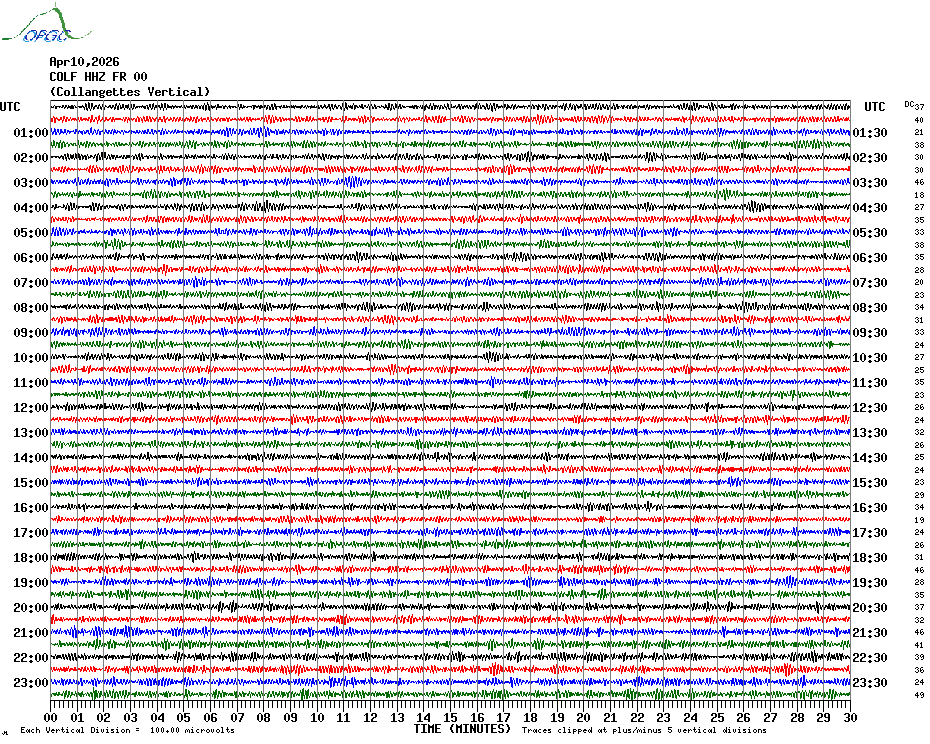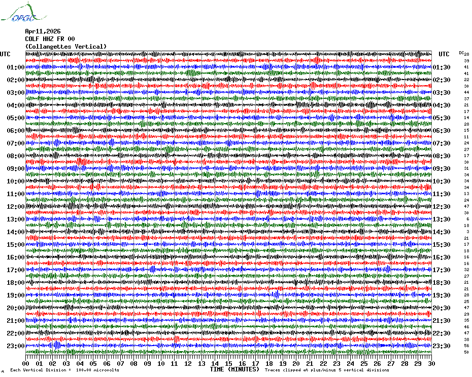 Sismogrammes du Réseau Sismologique Auvergne par fenêtre de 24h