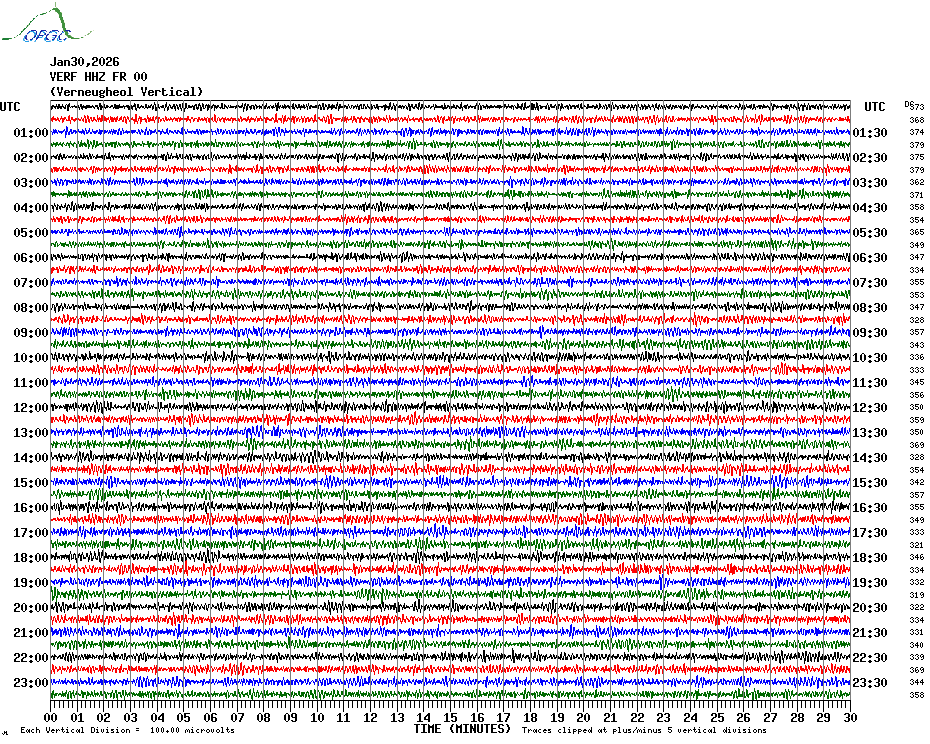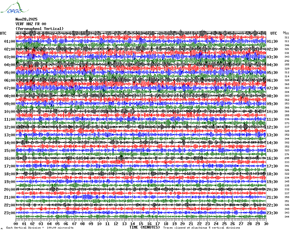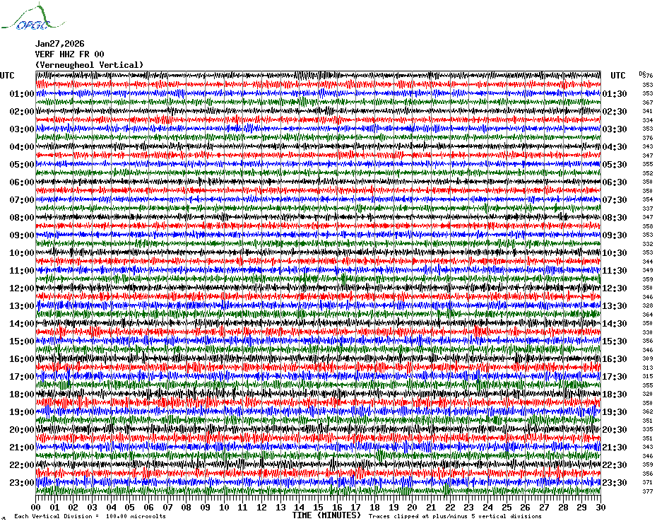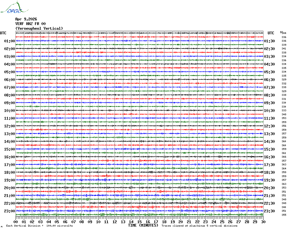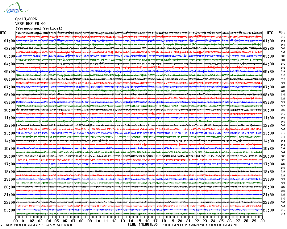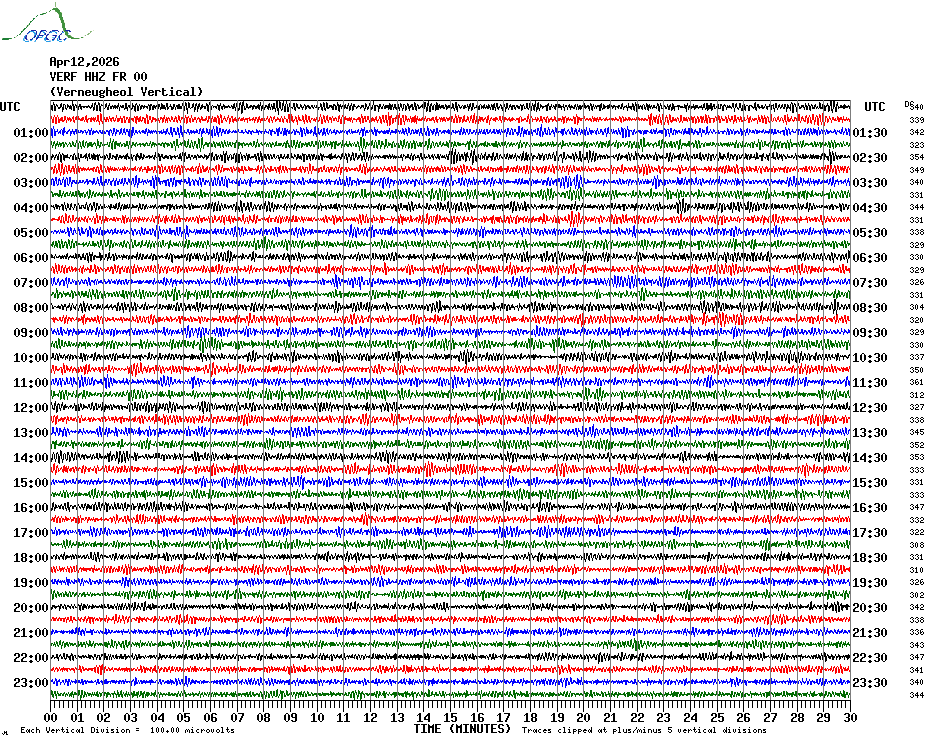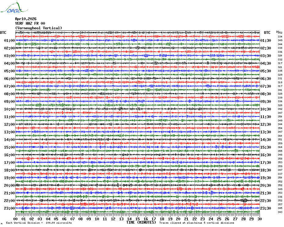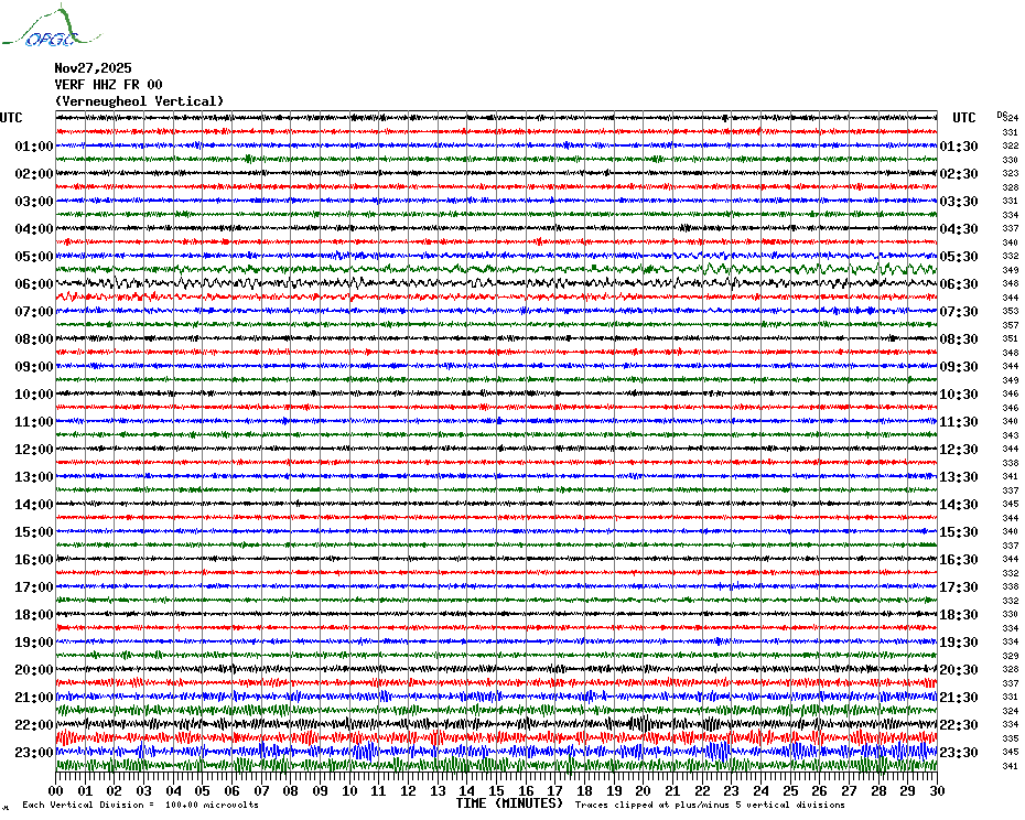 Sismogrammes du Réseau Sismologique Auvergne par fenêtre de 24h