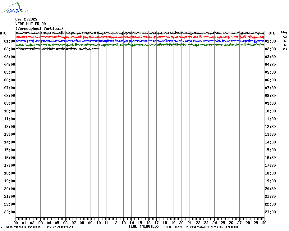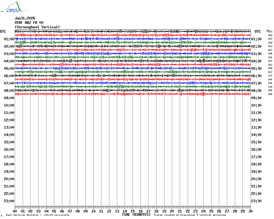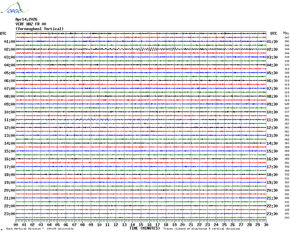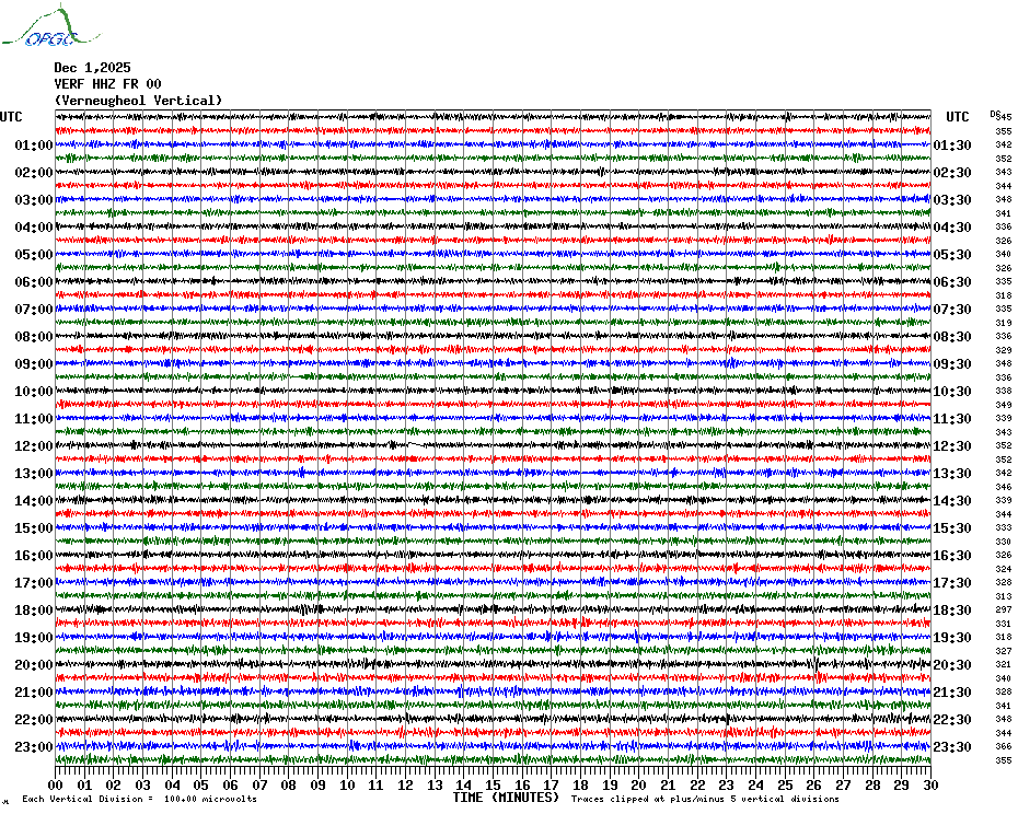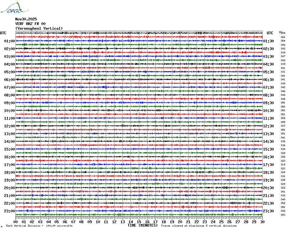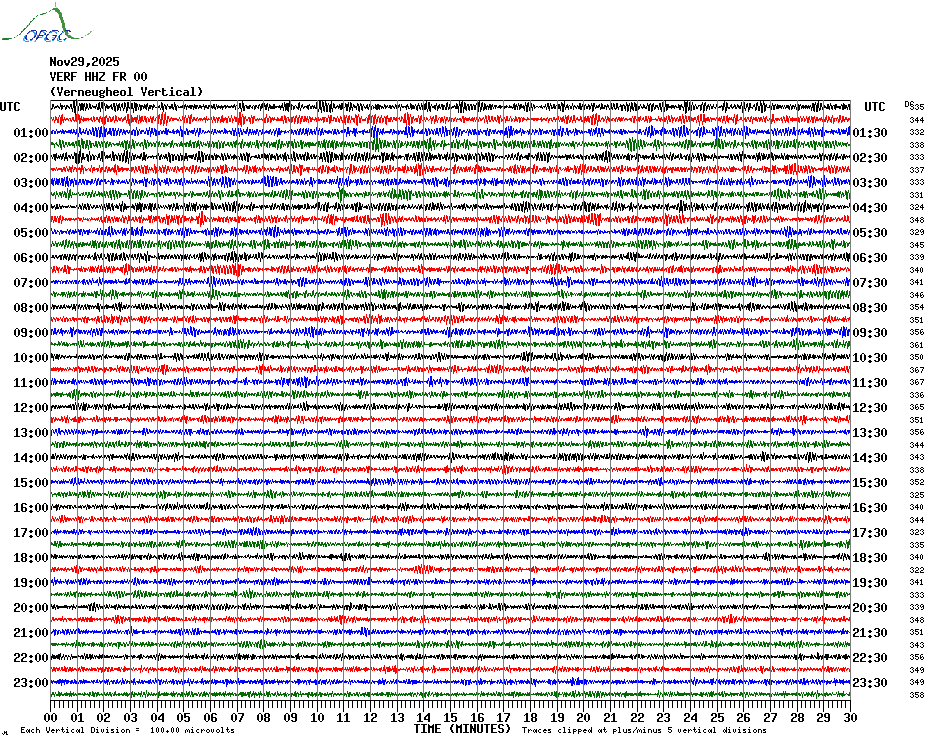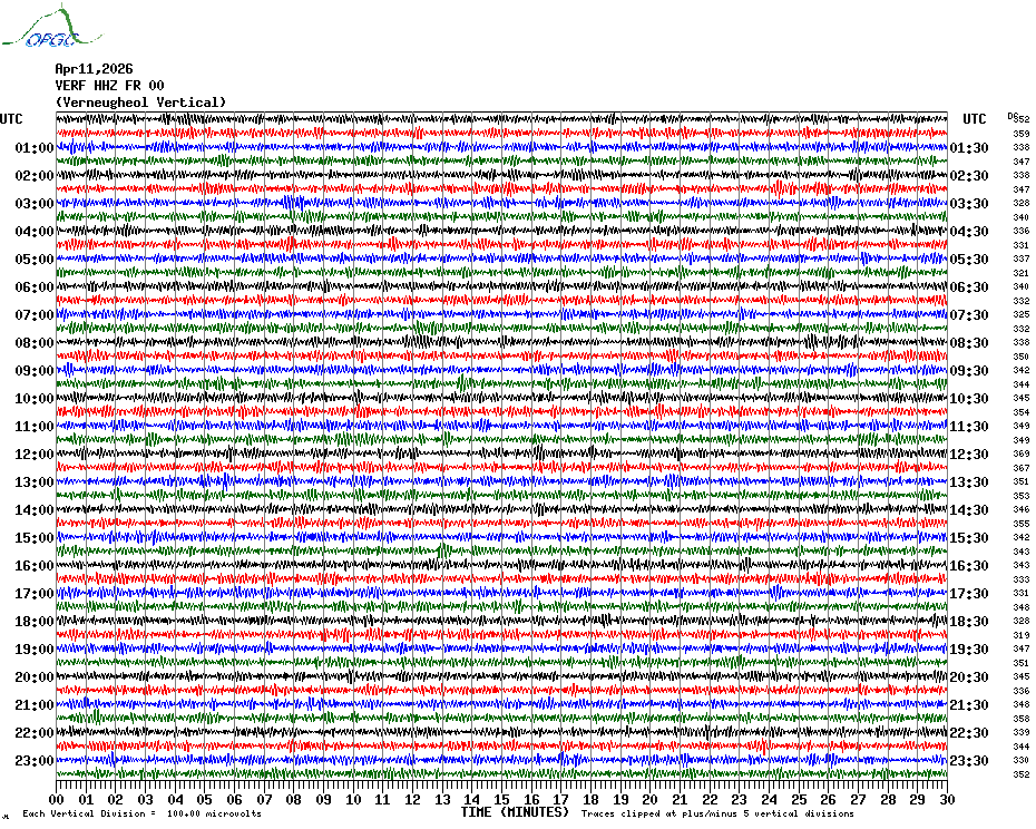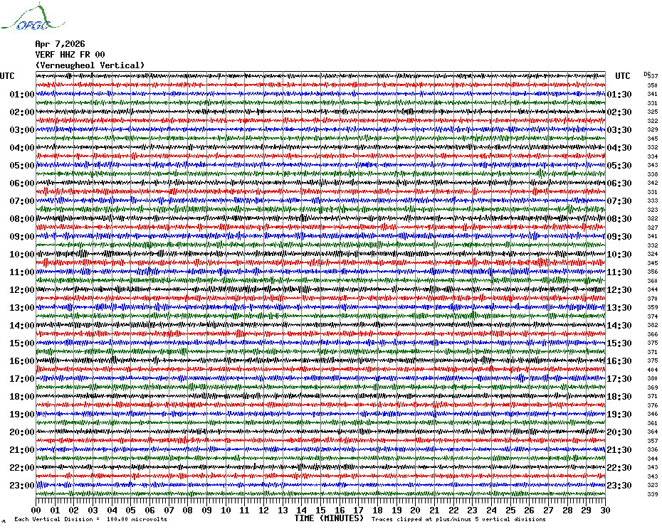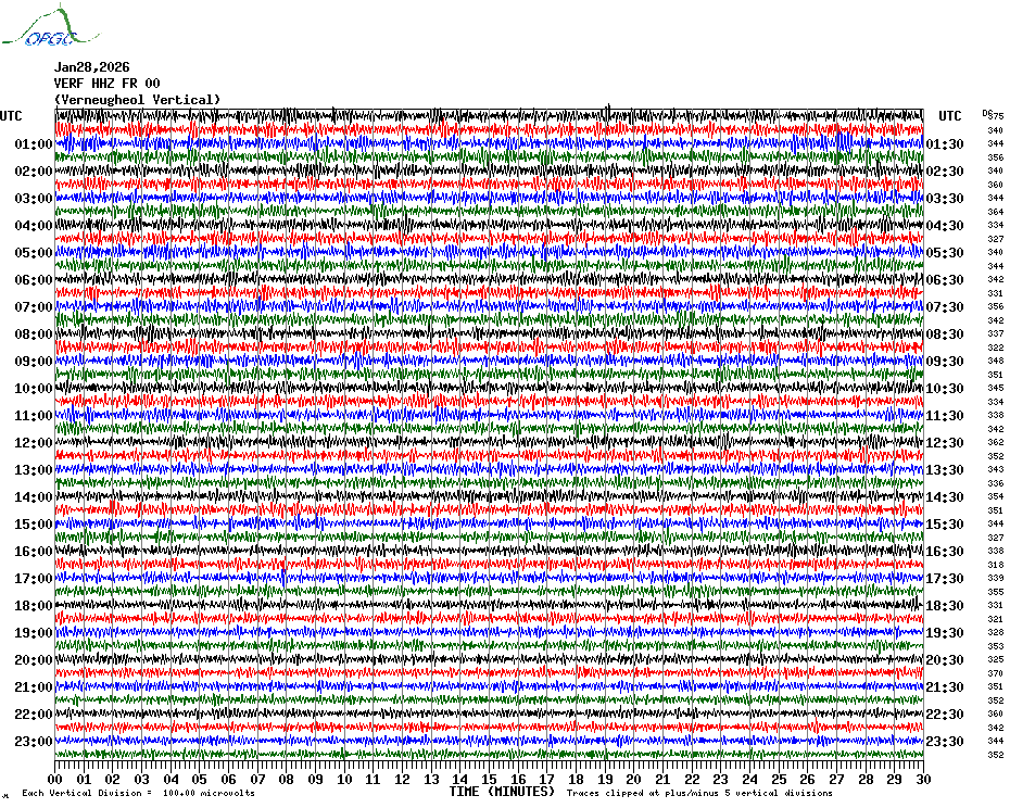 Sismogrammes du Réseau Sismologique Auvergne par fenêtre de 24h