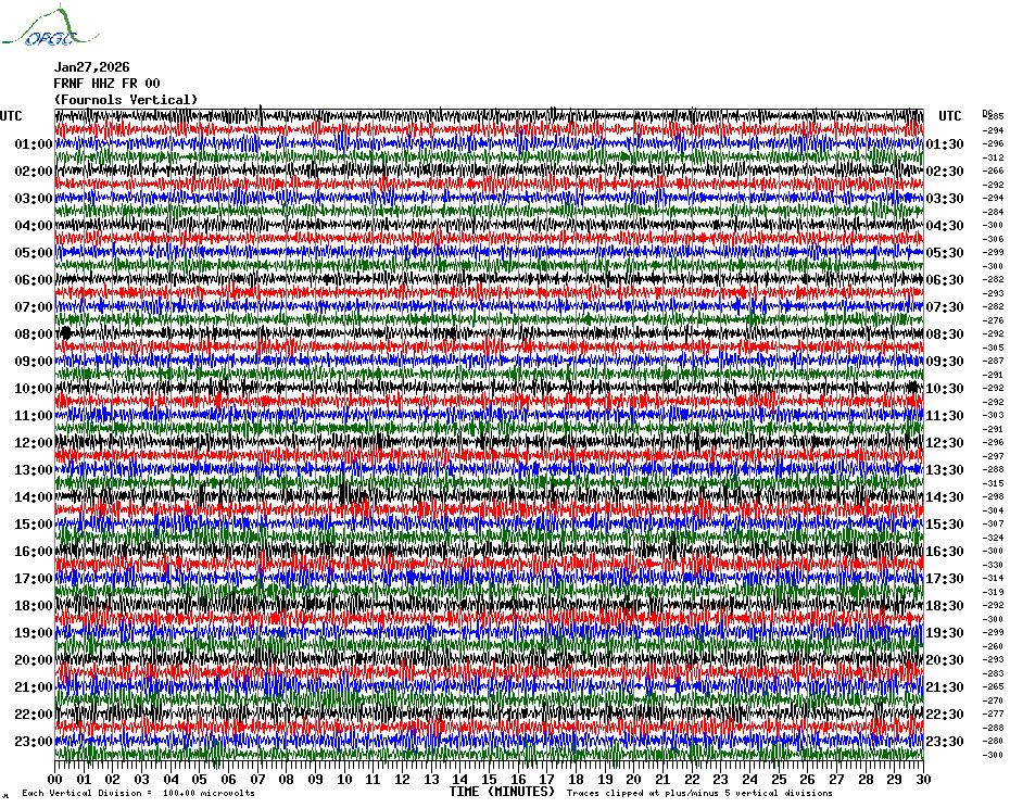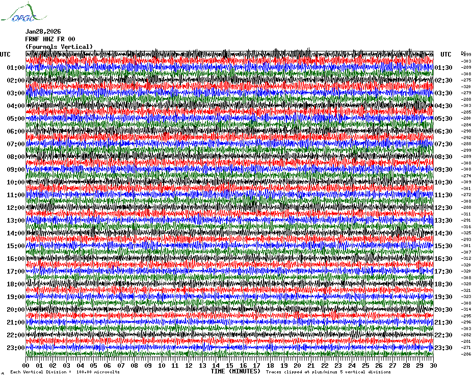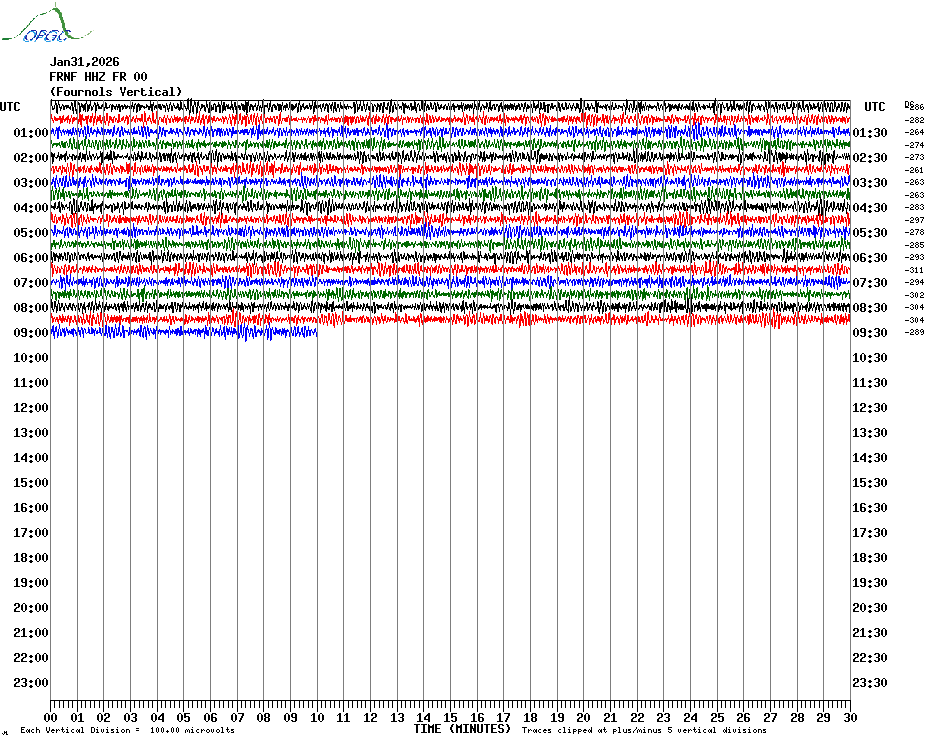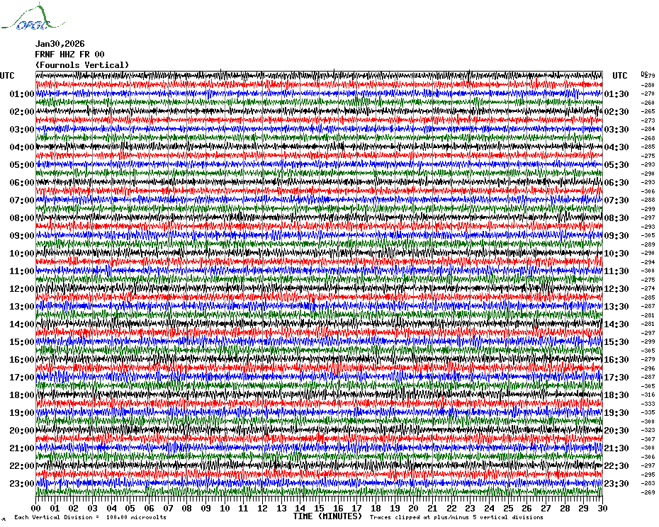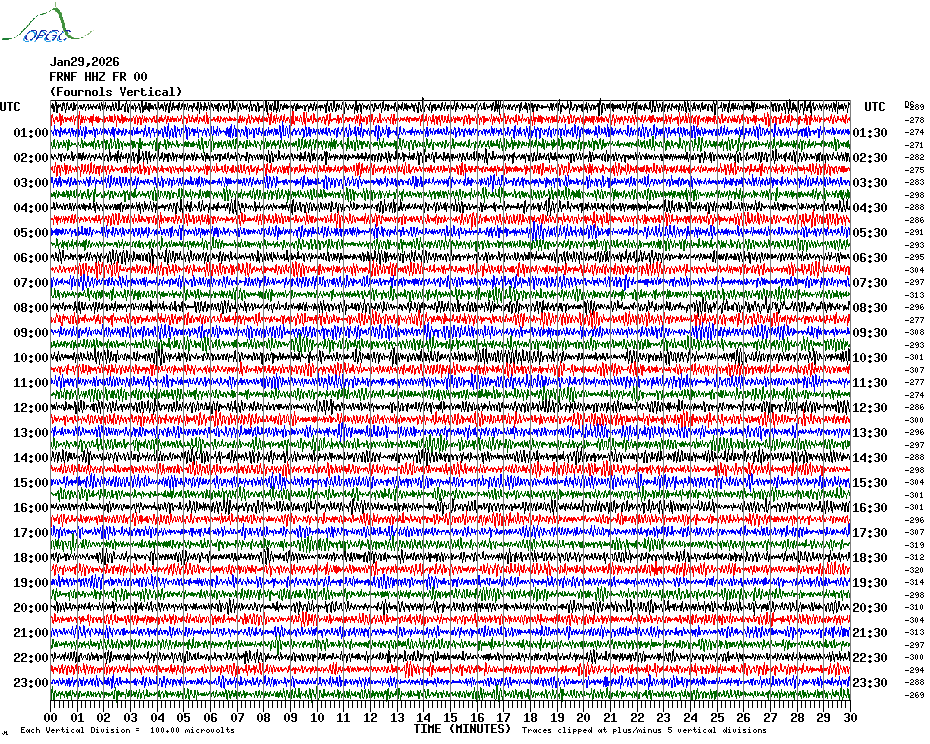 Sismogrammes du Réseau Sismologique Auvergne par fenêtre de 24h