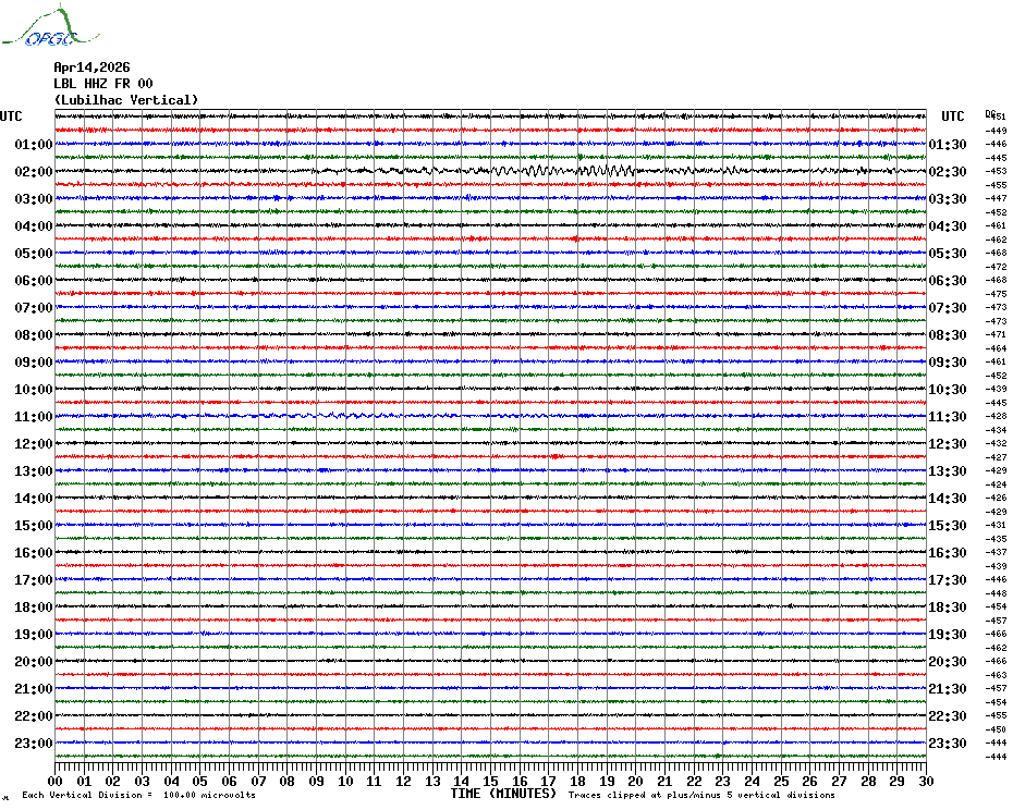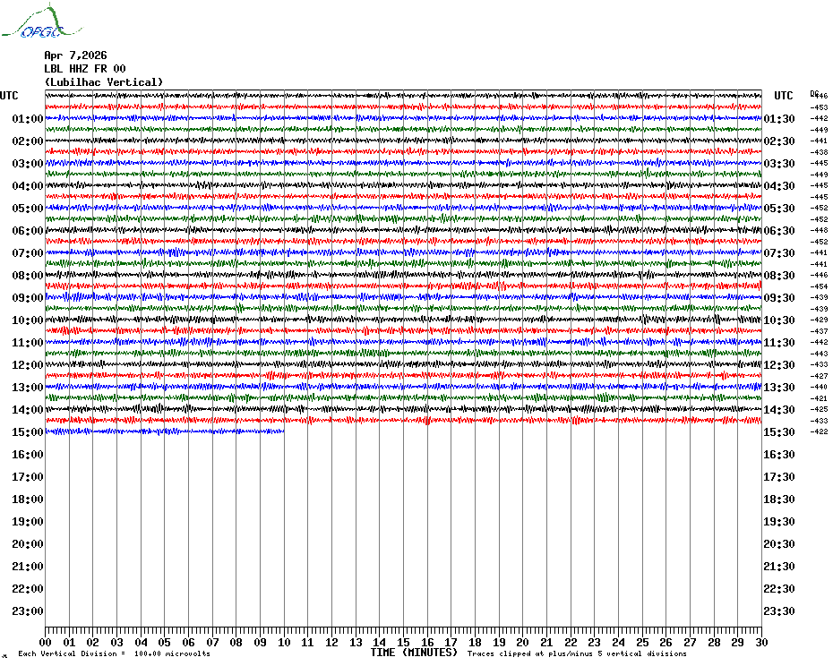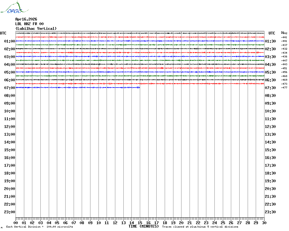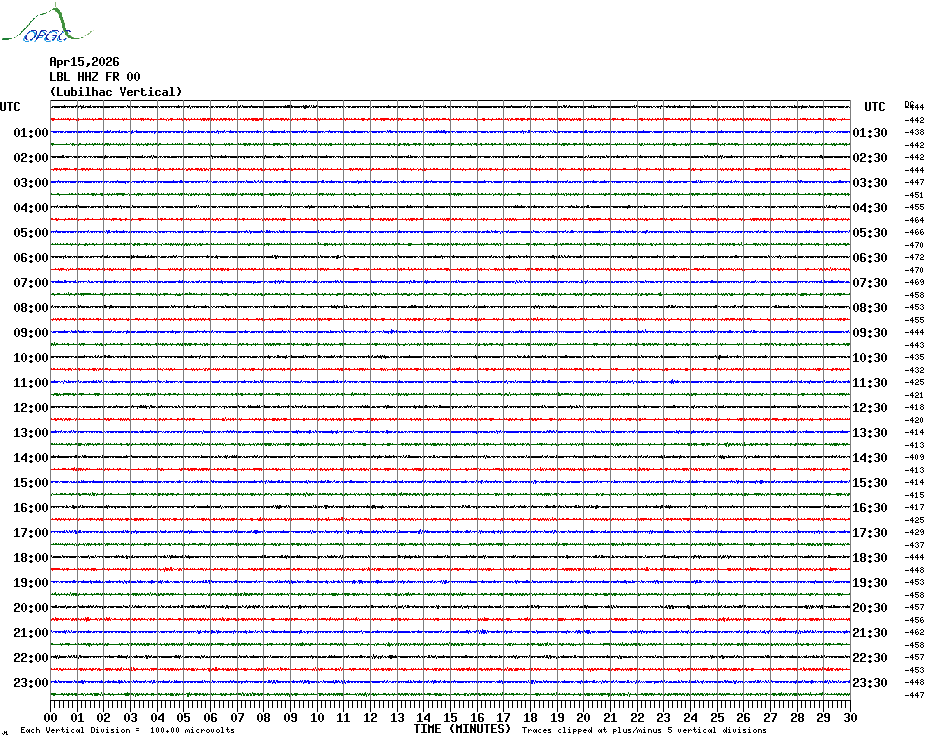 Sismogrammes du Réseau Sismologique Auvergne par fenêtre de 24h