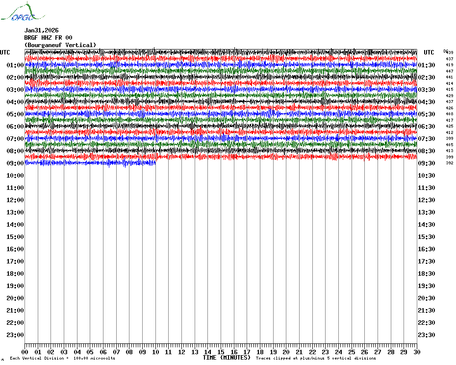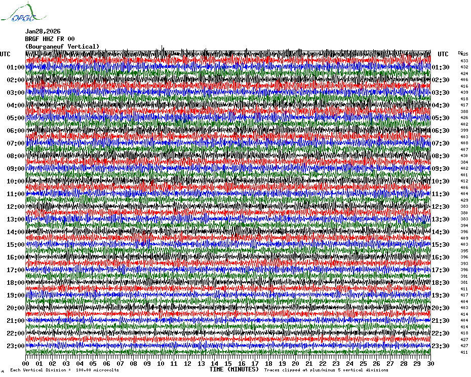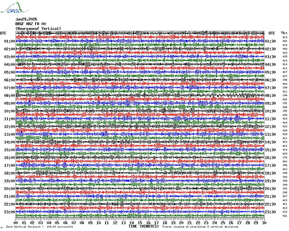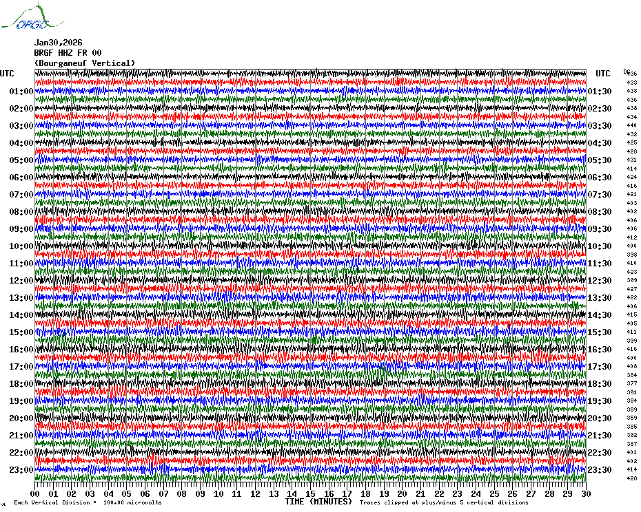 Sismogrammes du Réseau Sismologique Auvergne par fenêtre de 24h