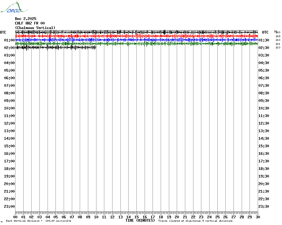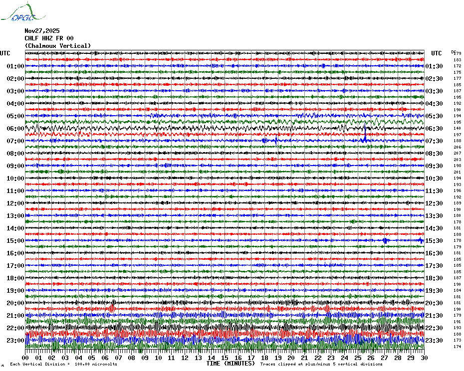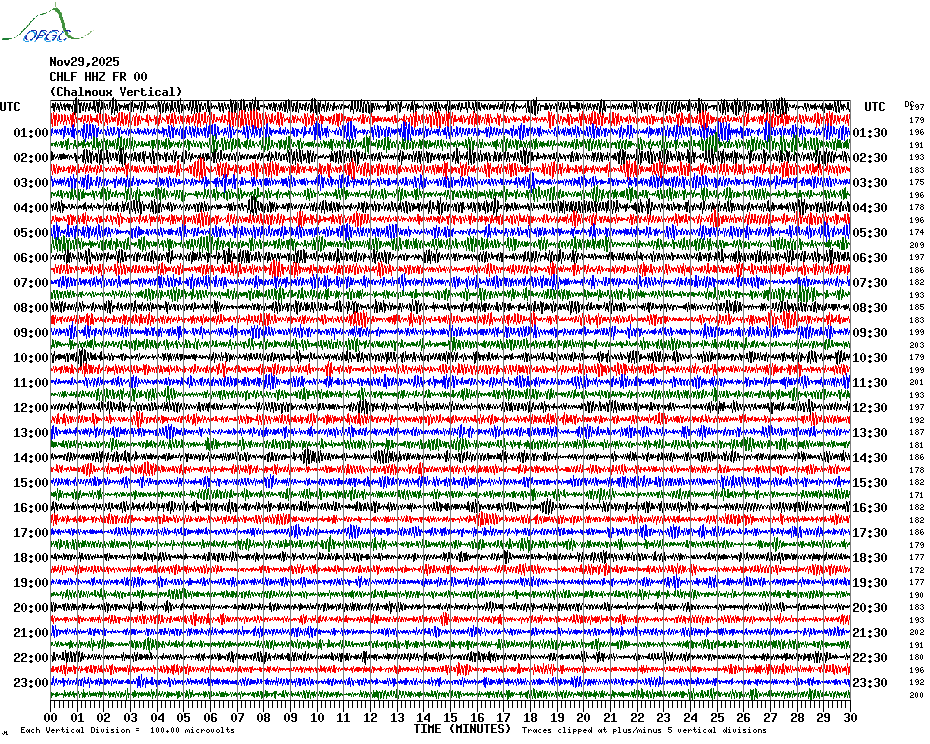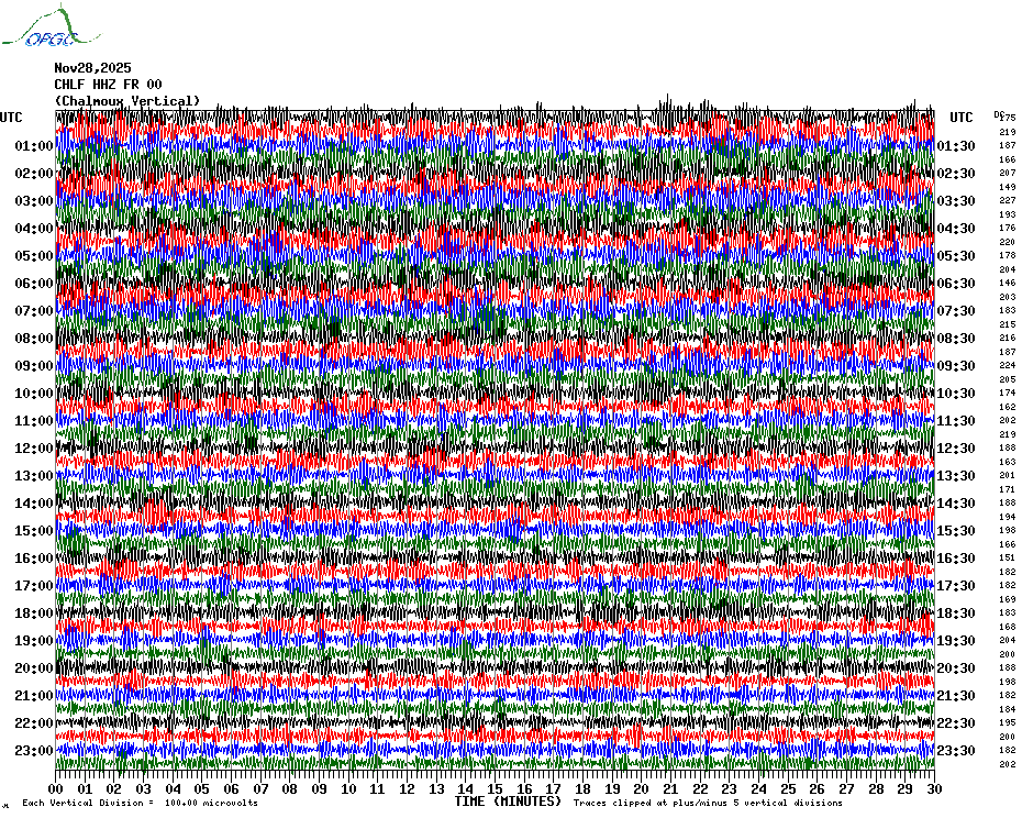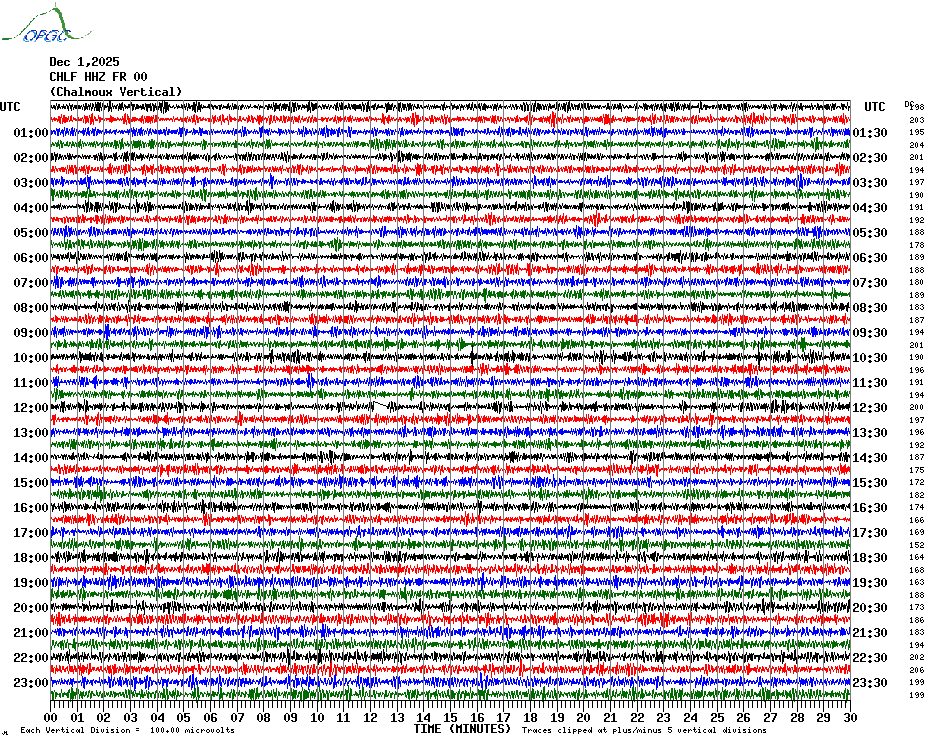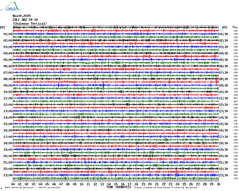 Sismogrammes du Réseau Sismologique Auvergne par fenêtre de 24h