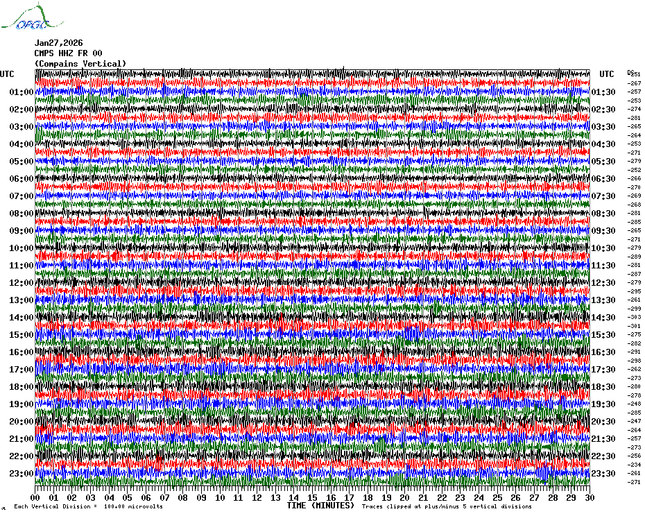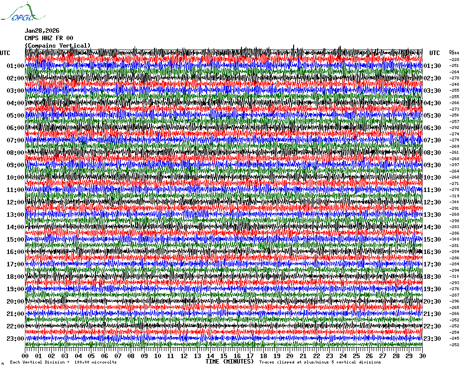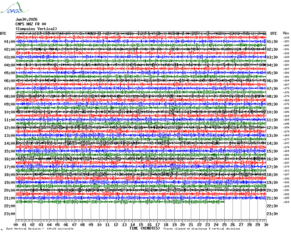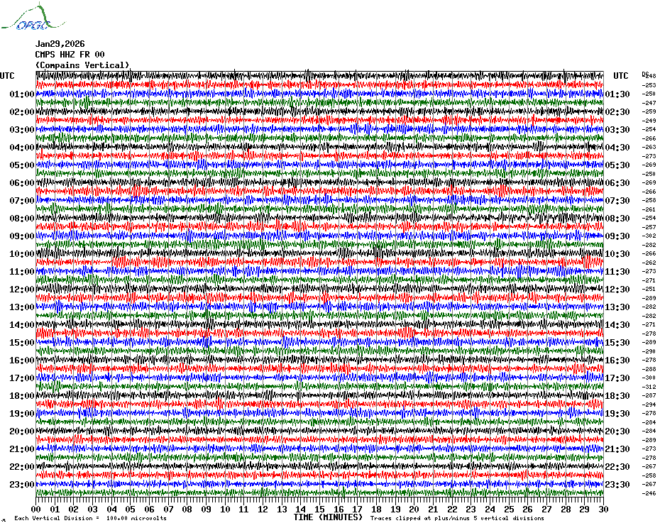 Sismogrammes du Réseau Sismologique Auvergne par fenêtre de 24h