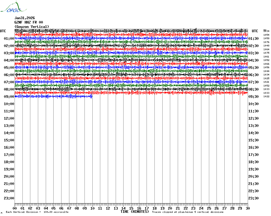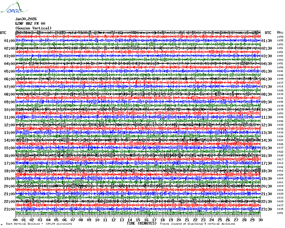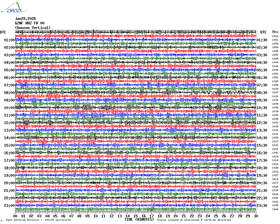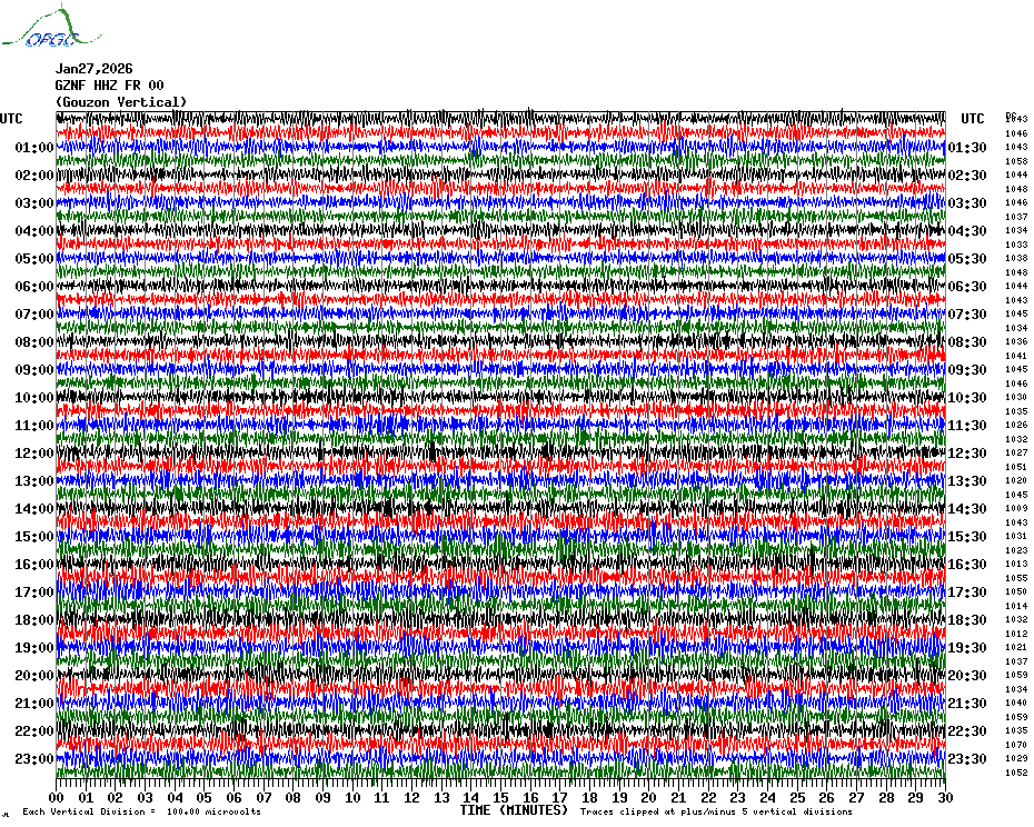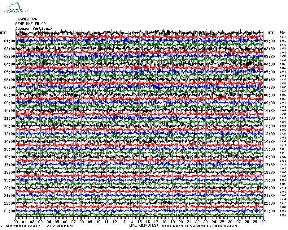 Sismogrammes du Réseau Sismologique Auvergne par fenêtre de 24h