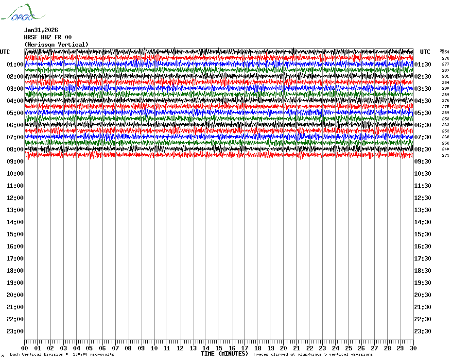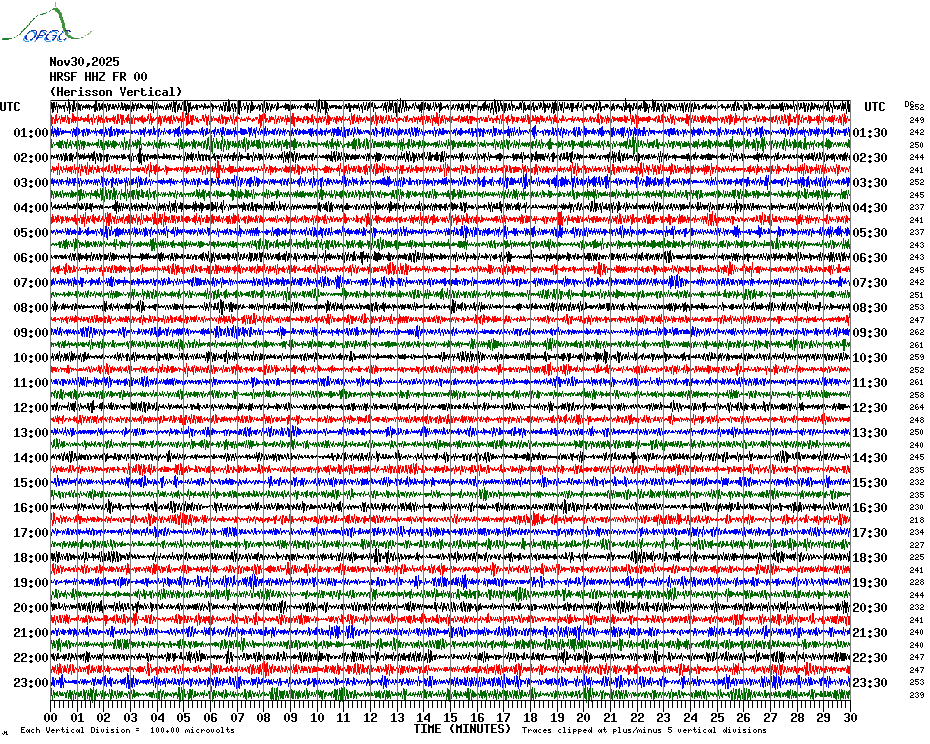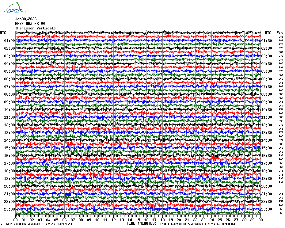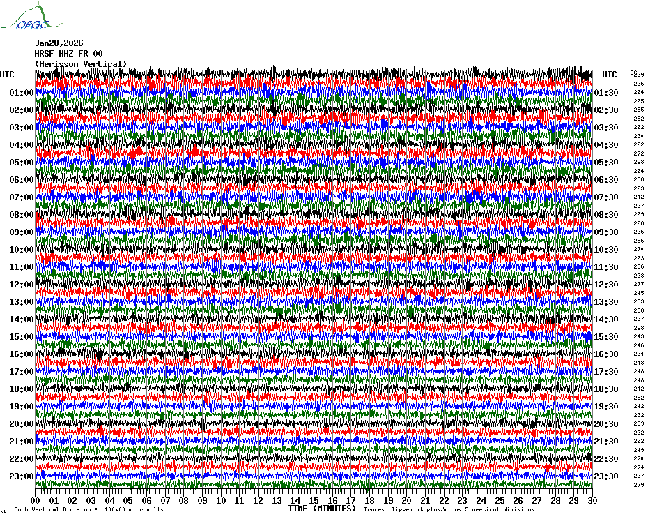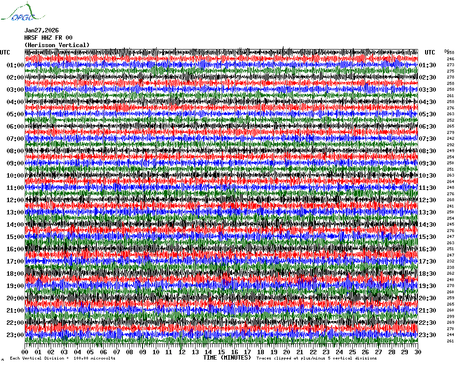Sismogrammes du Réseau Sismologique Auvergne par fenêtre de 24h