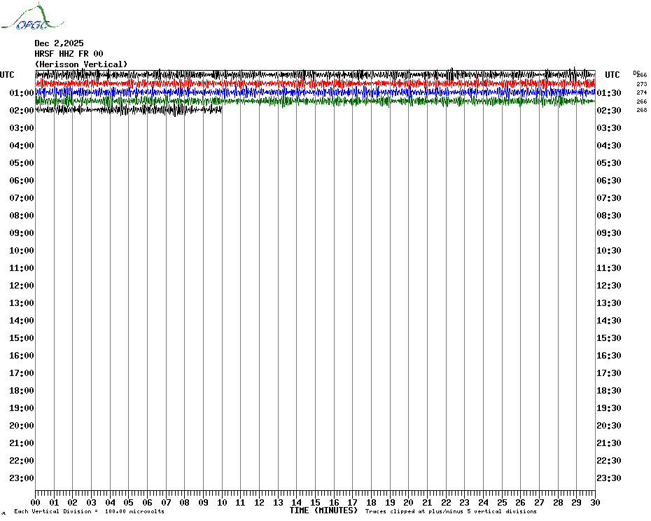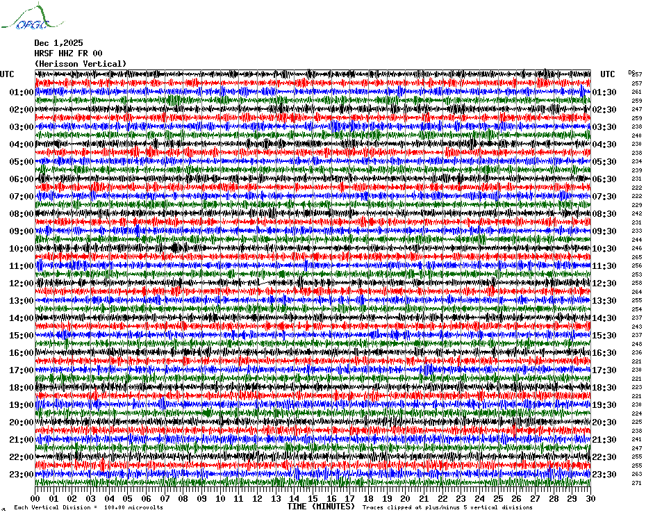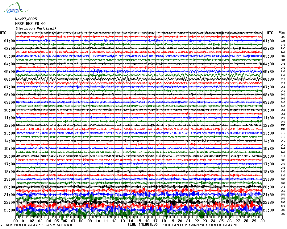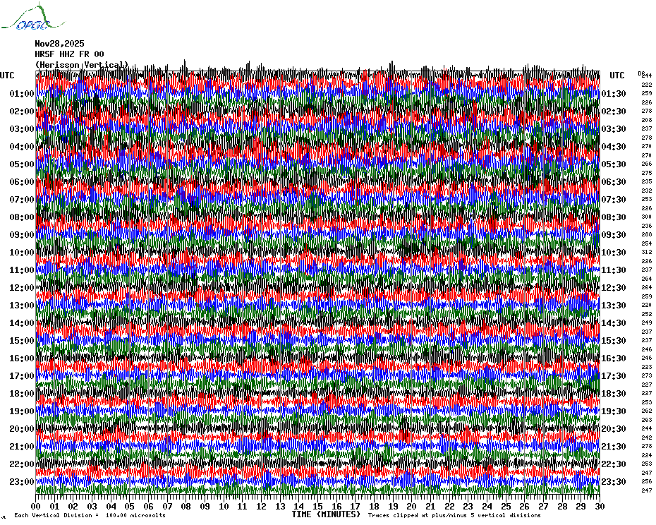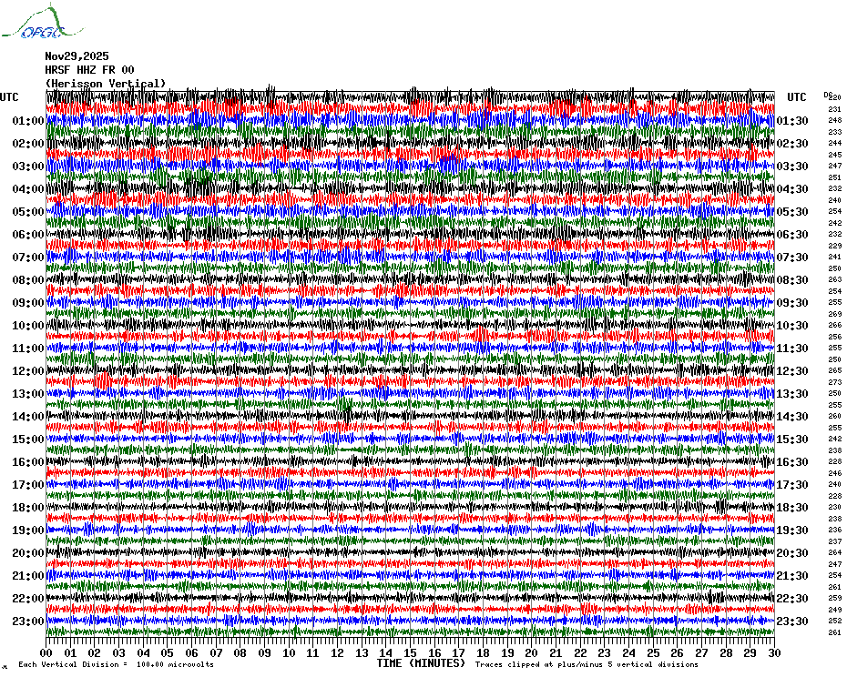 Sismogrammes du Réseau Sismologique Auvergne par fenêtre de 24h