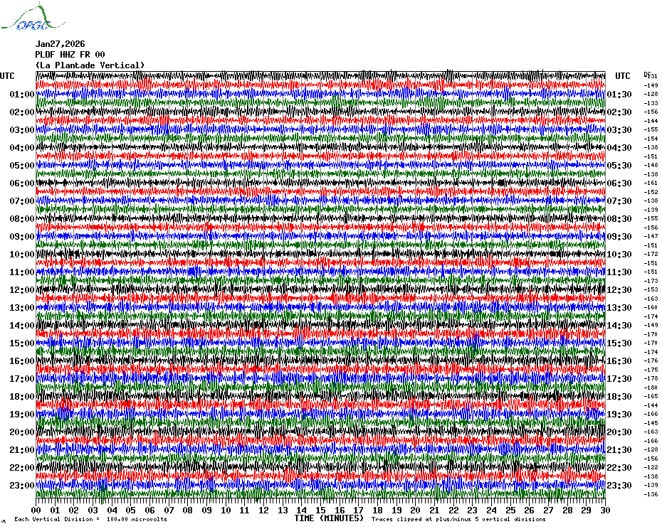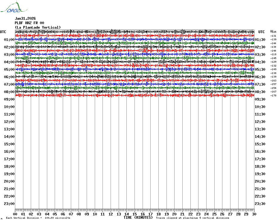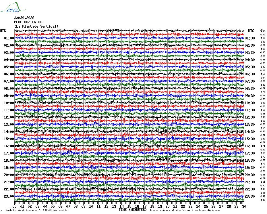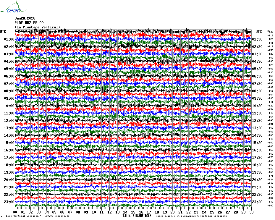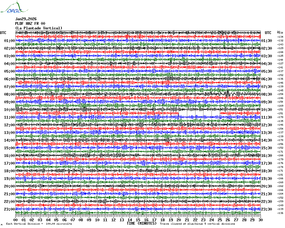 Sismogrammes du Réseau Sismologique Auvergne par fenêtre de 24h