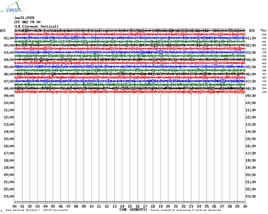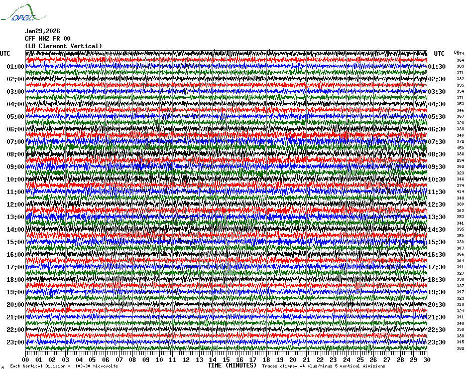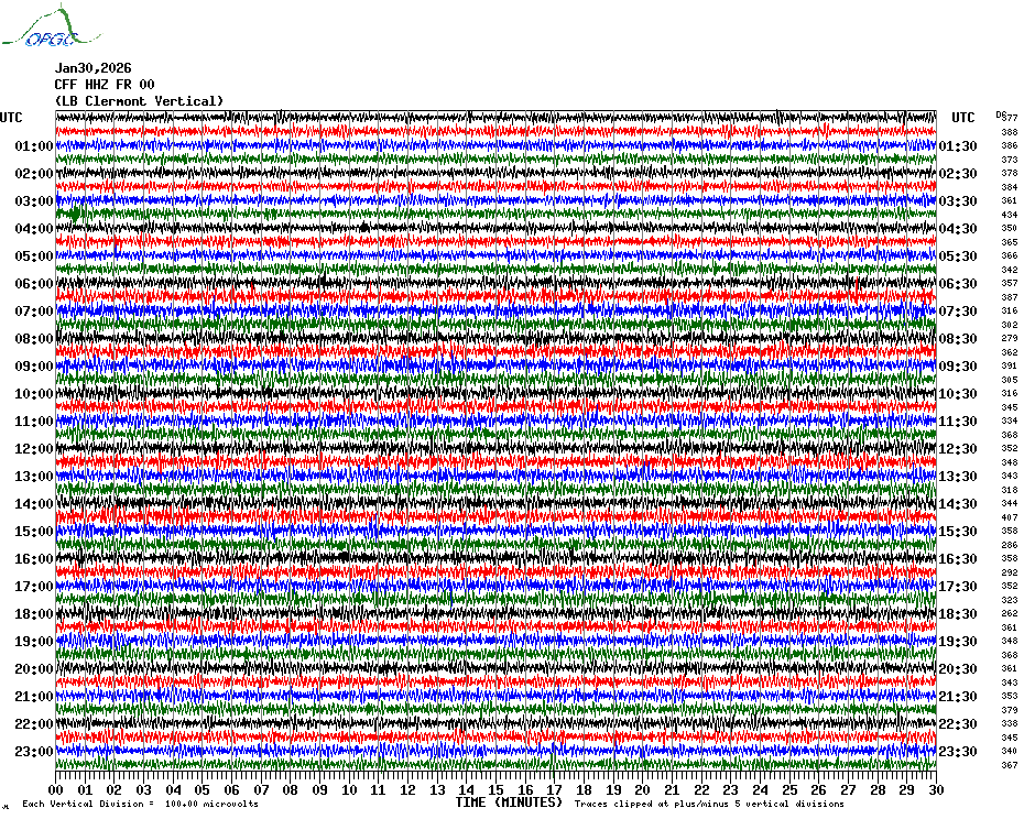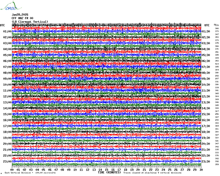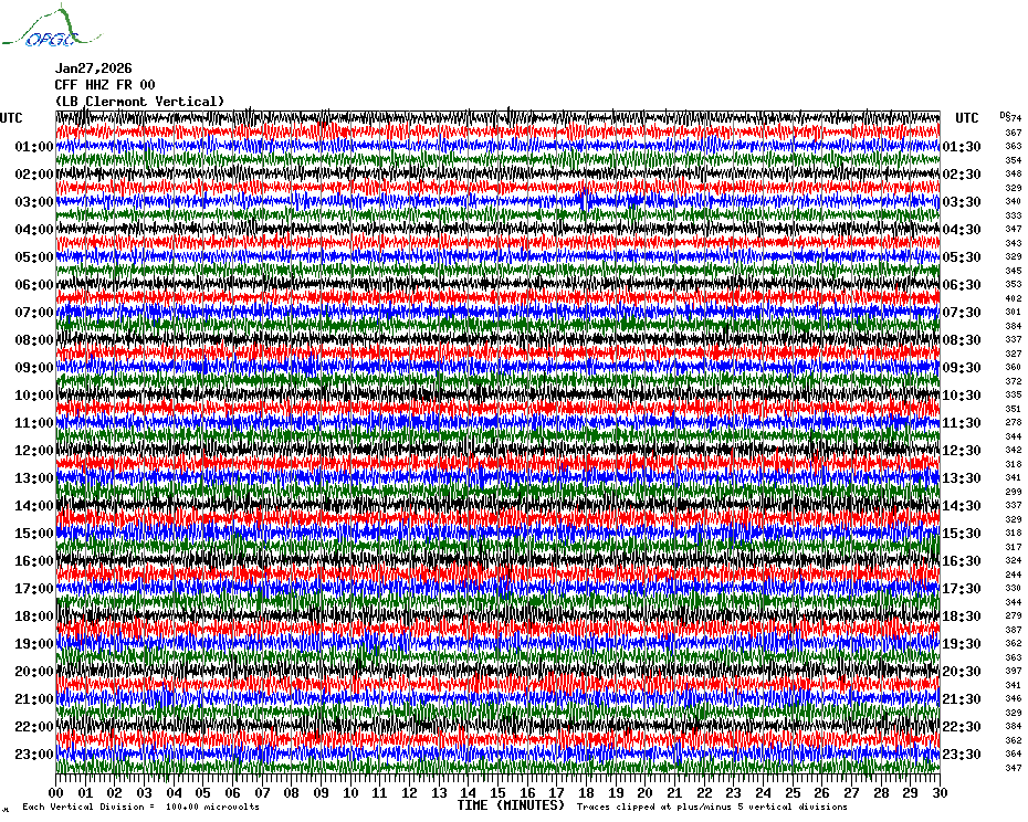 Sismogrammes du Réseau Sismologique Auvergne par fenêtre de 24h