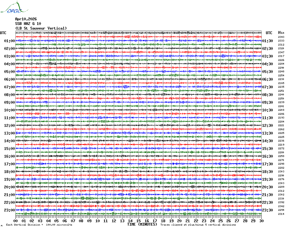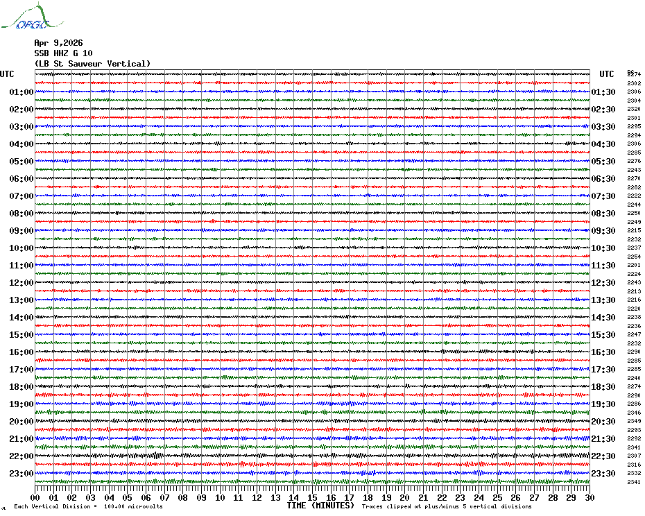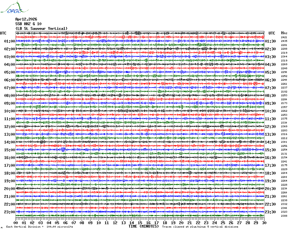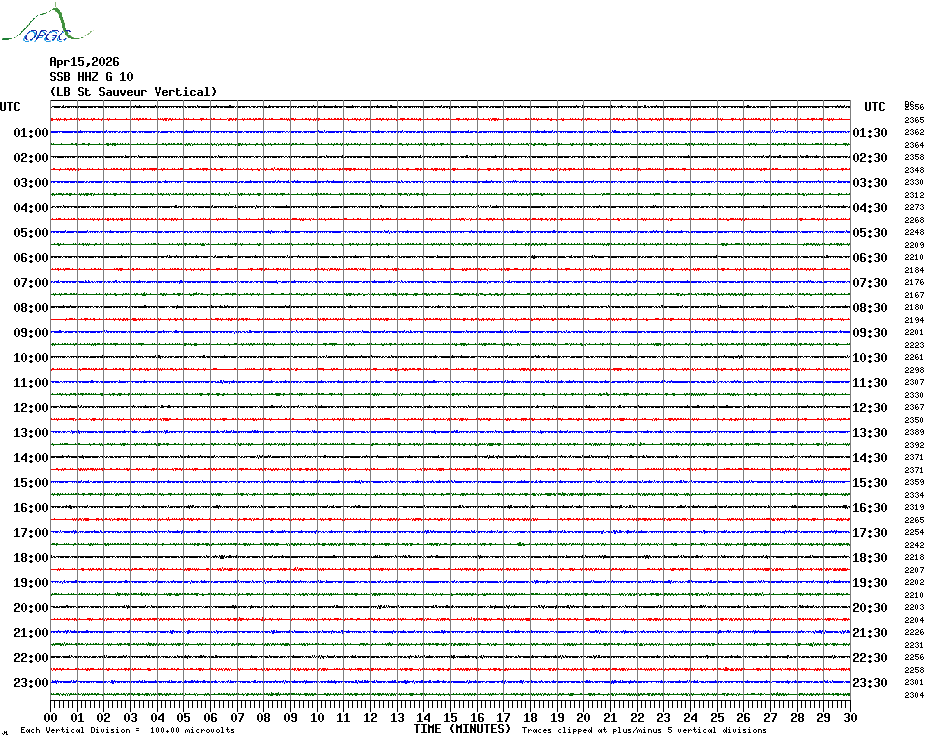 Sismogrammes du Réseau Sismologique Auvergne par fenêtre de 24h