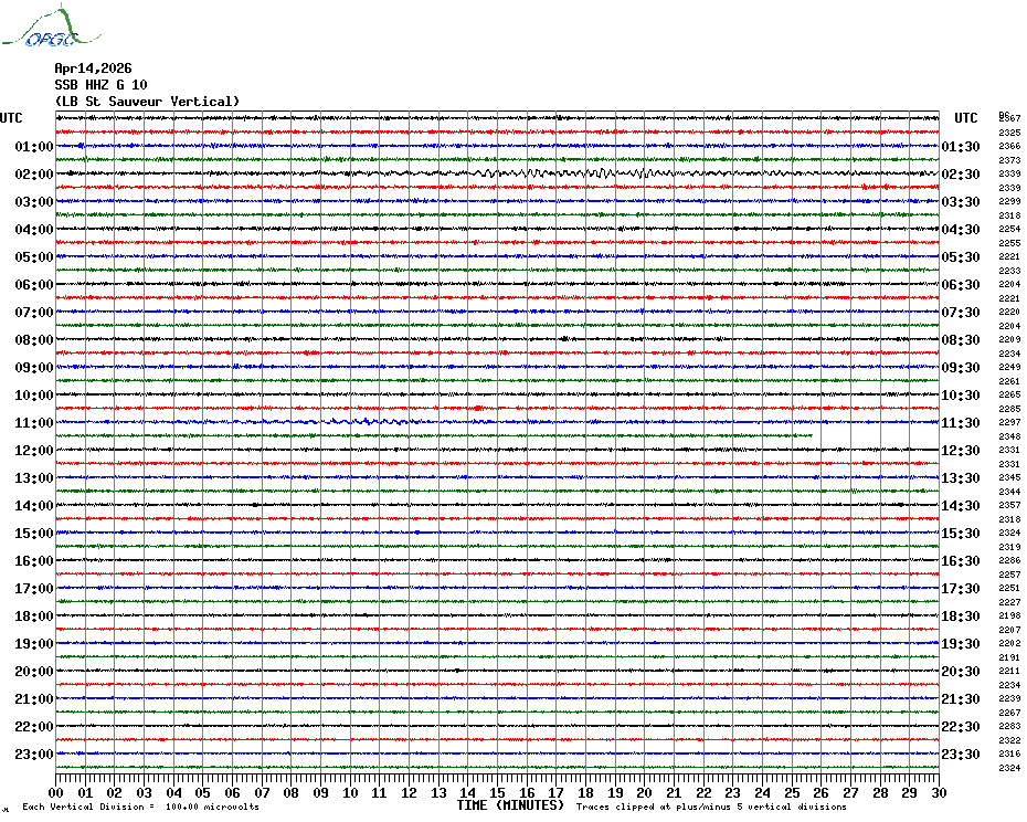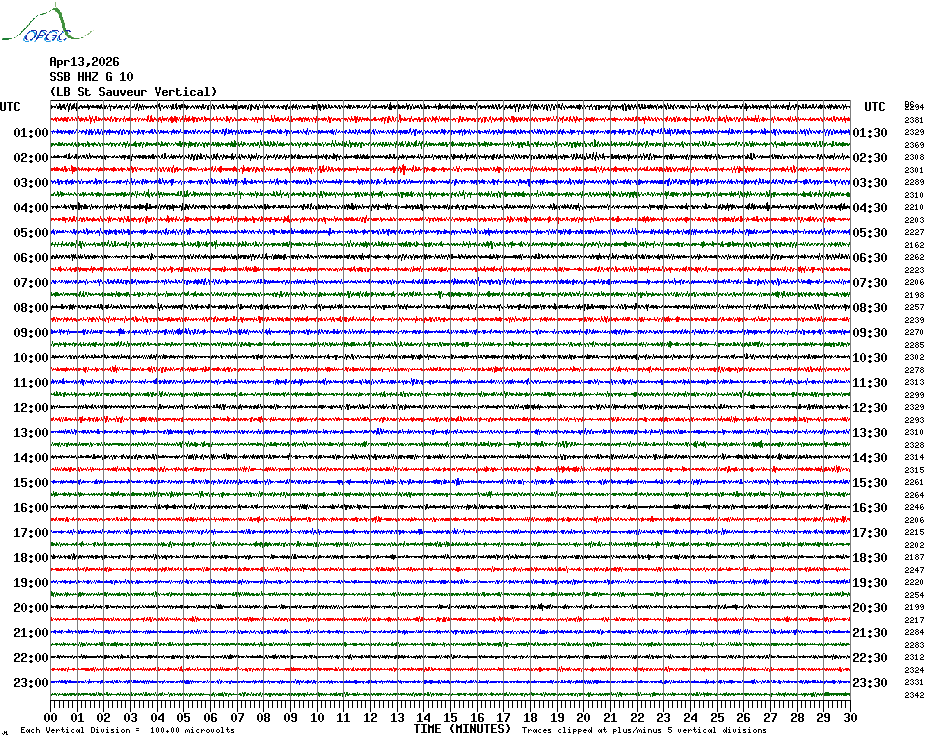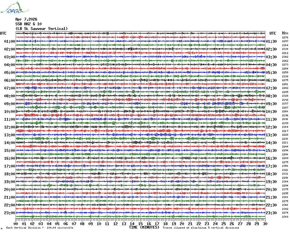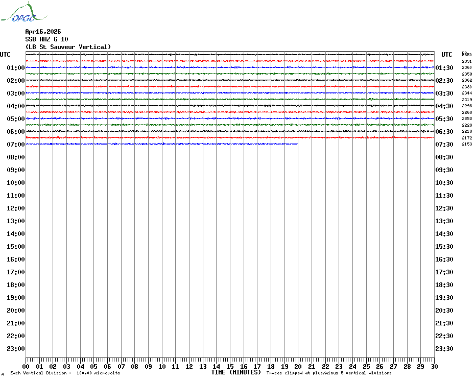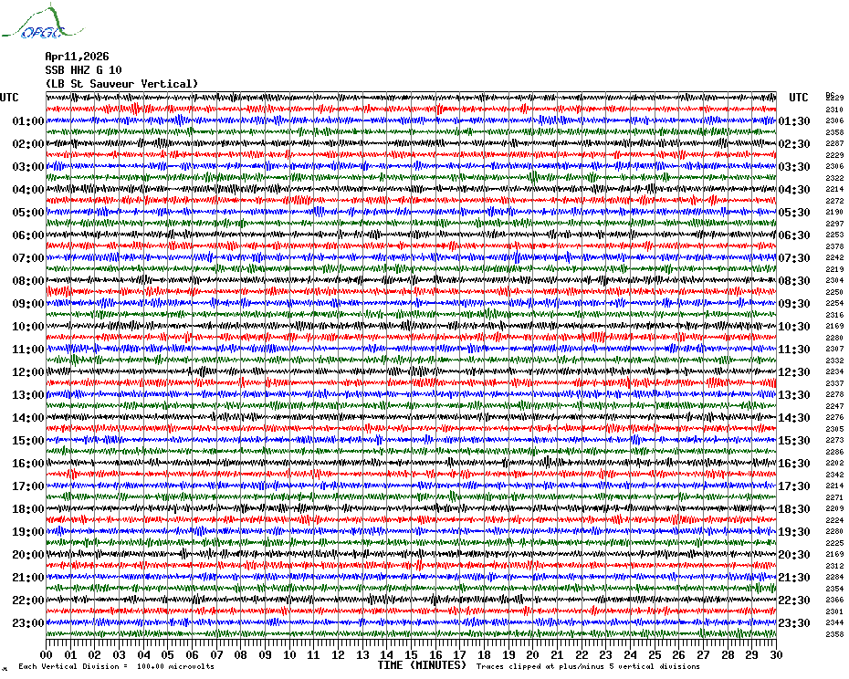 Sismogrammes du Réseau Sismologique Auvergne par fenêtre de 24h