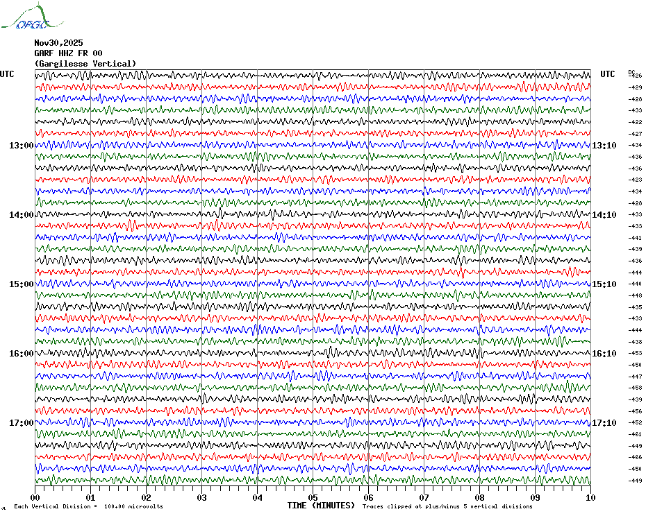 Sismogrammes du Réseau Sismologique Auvergne