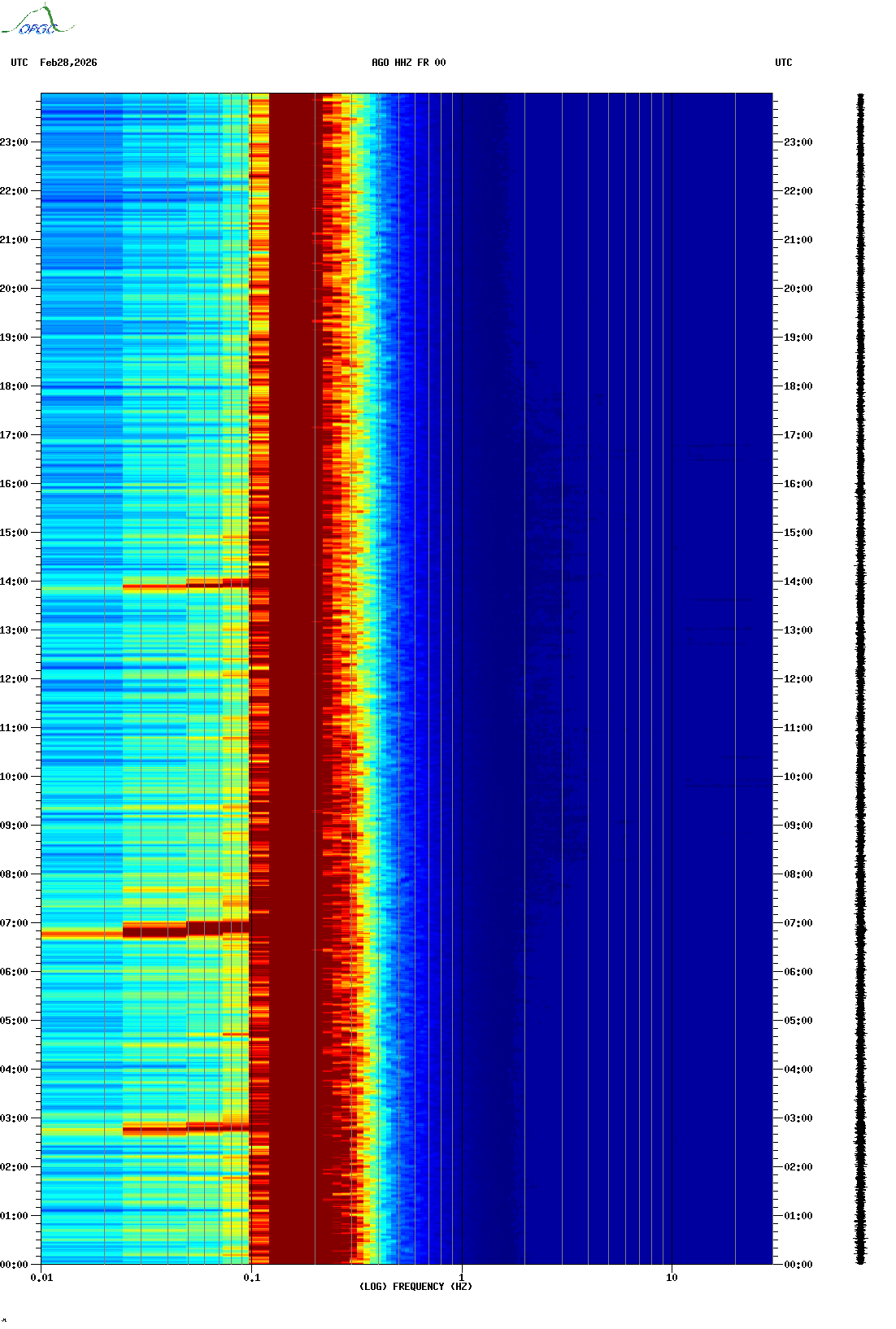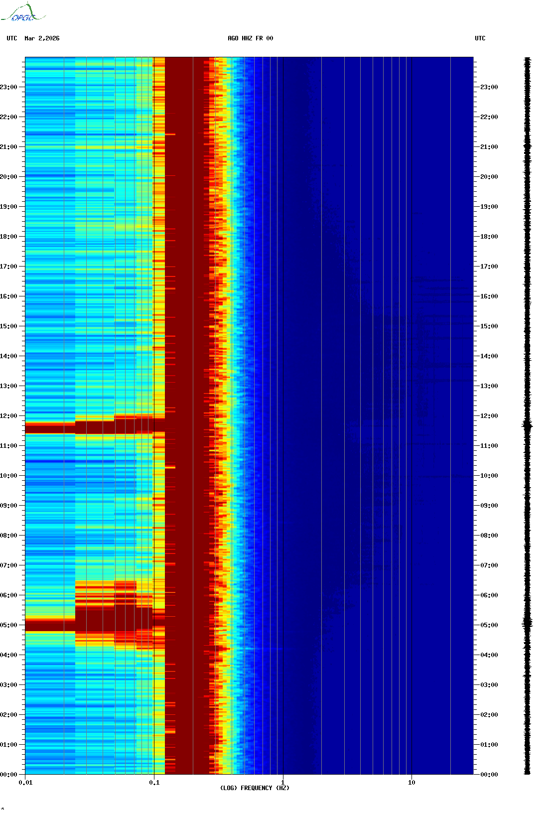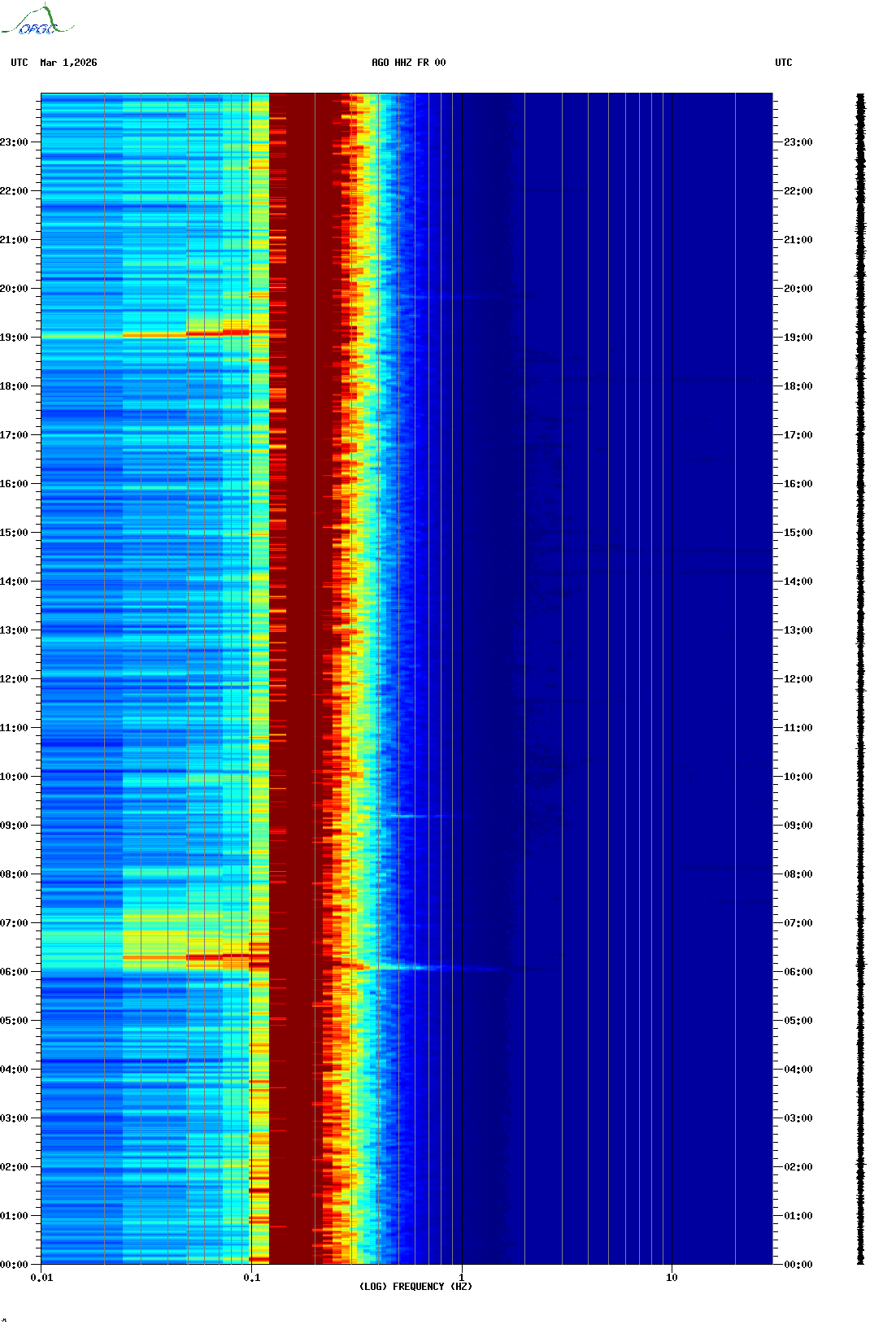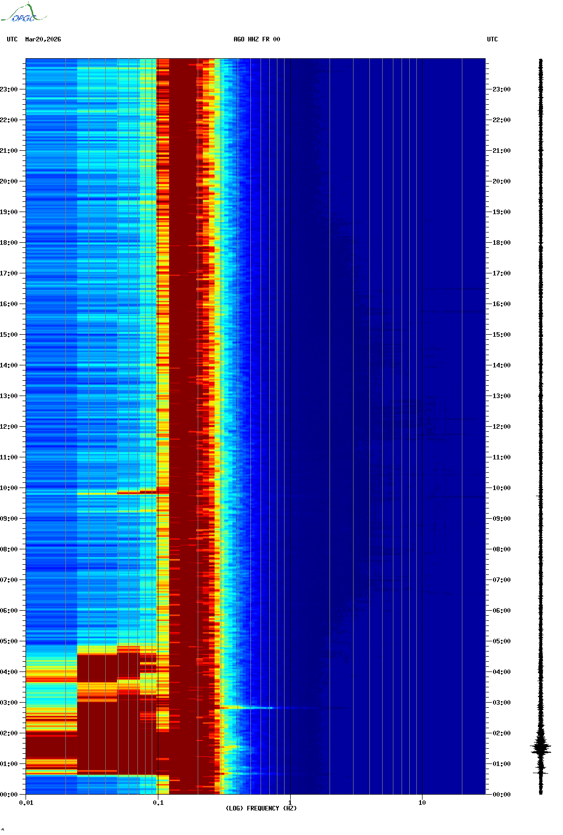 Spectrogrammes du Réseau Sismologique Auvergne-Charentes