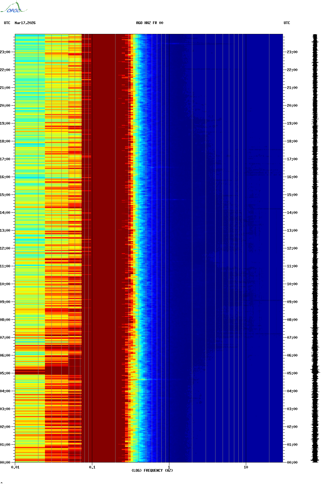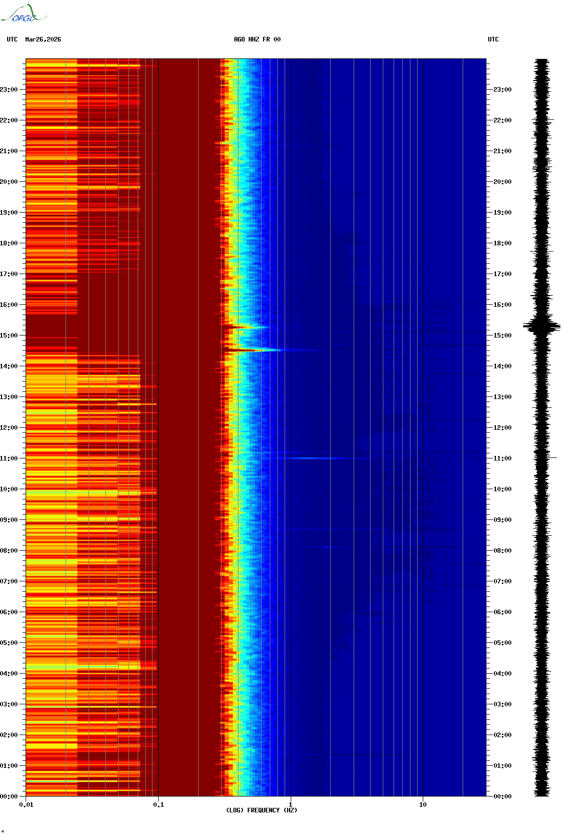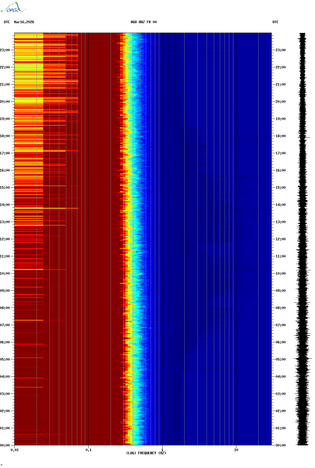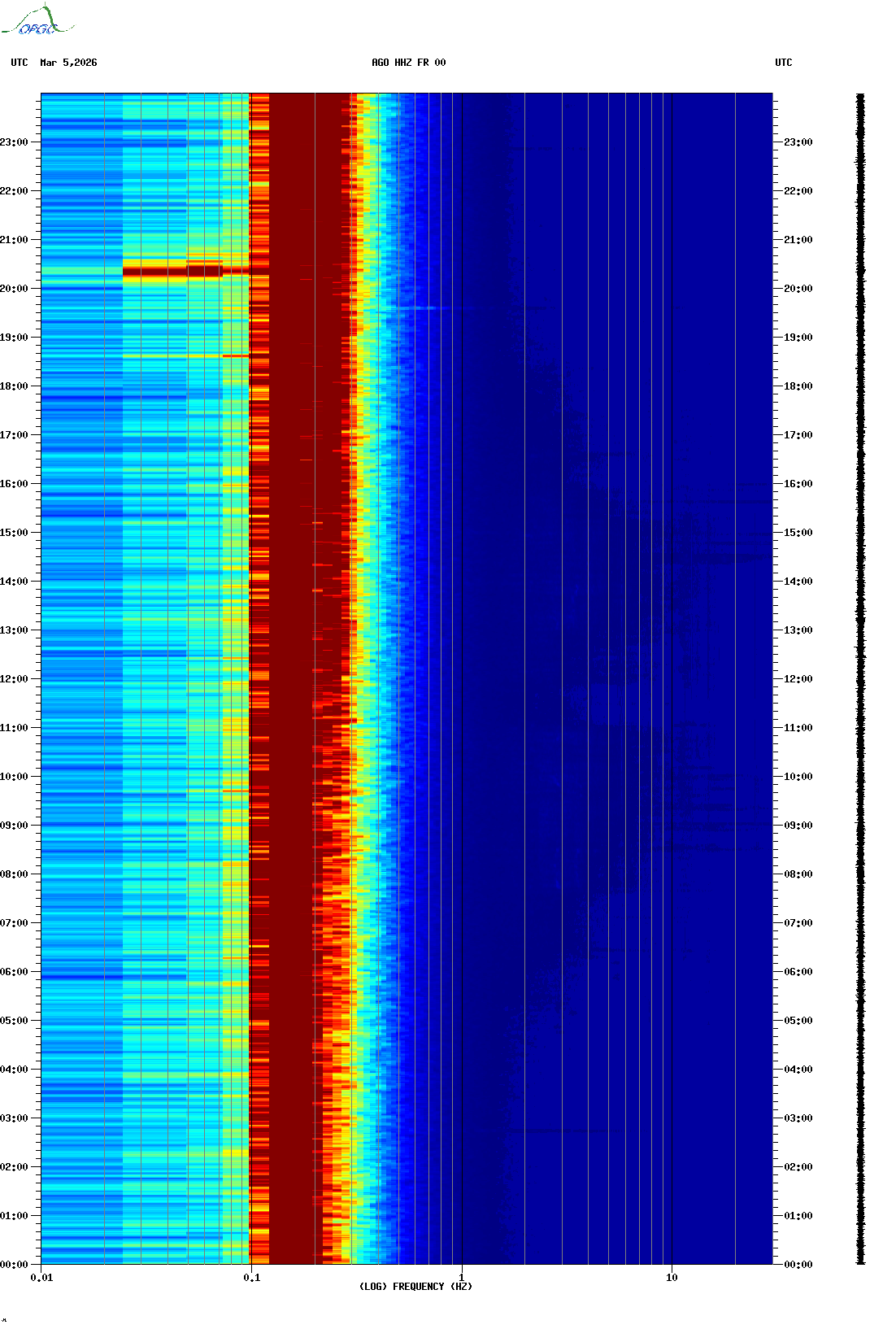 Spectrogrammes du Réseau Sismologique Auvergne-Charentes
