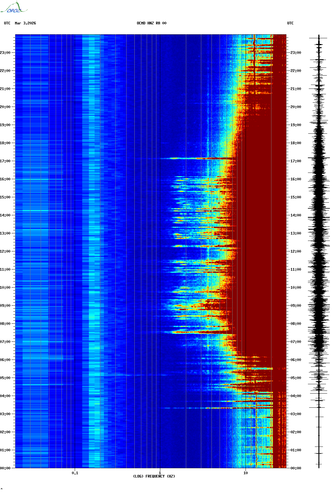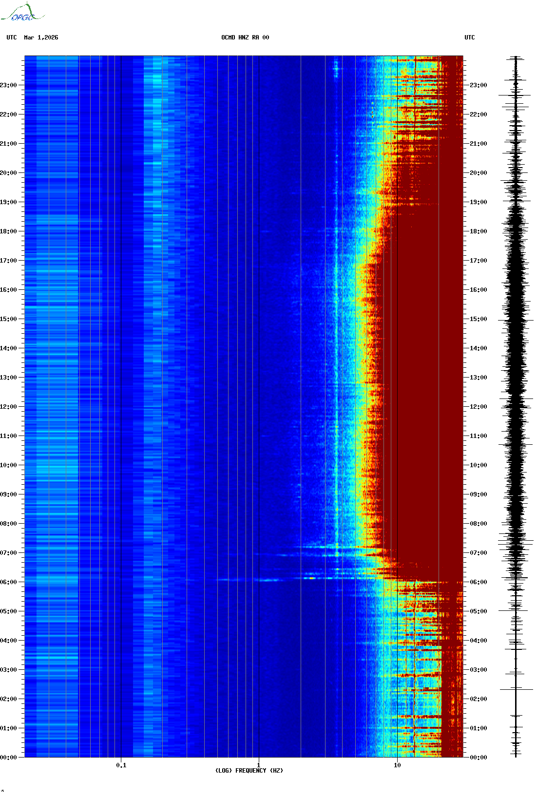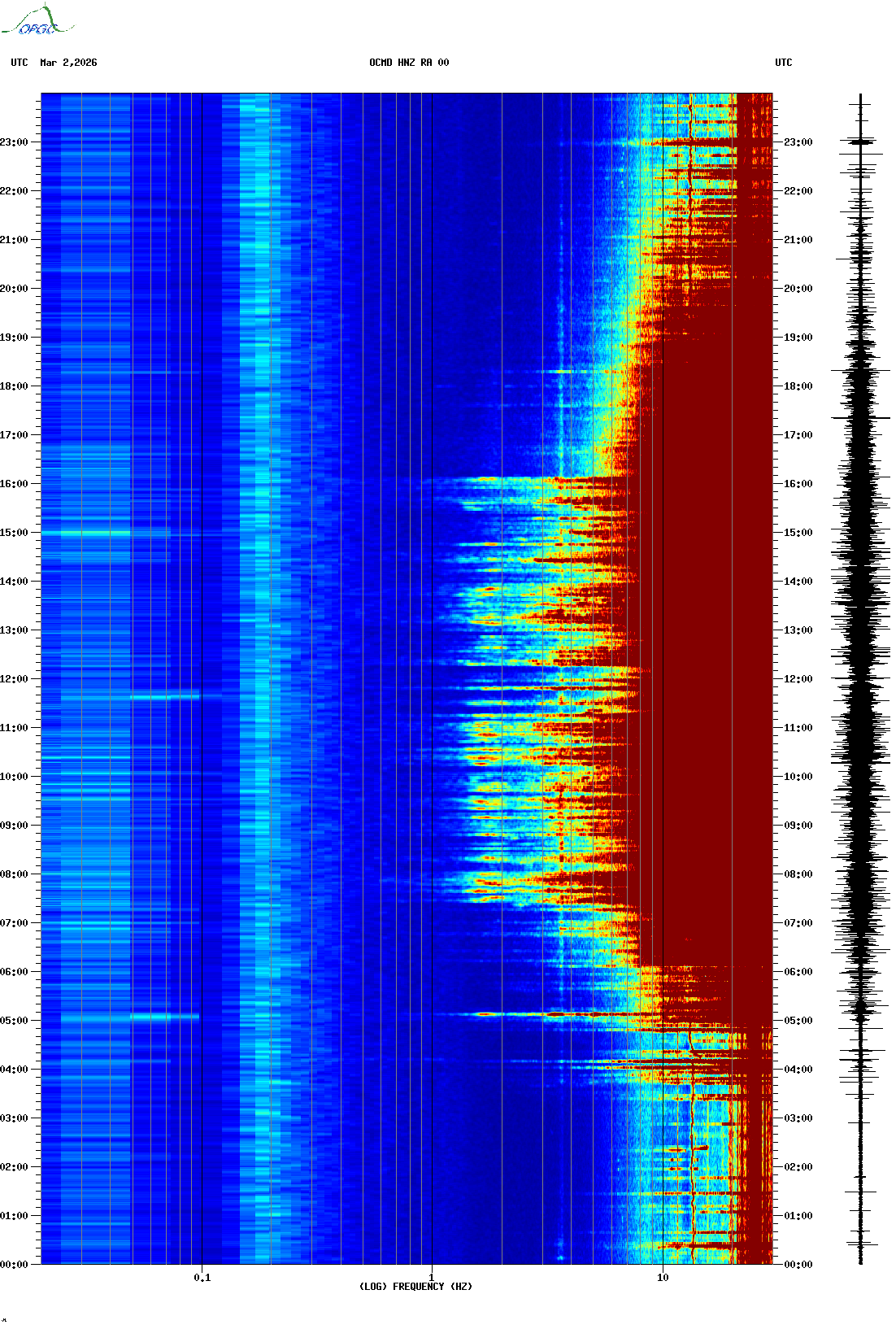 Spectrogrammes du Réseau Sismologique Auvergne-Charentes