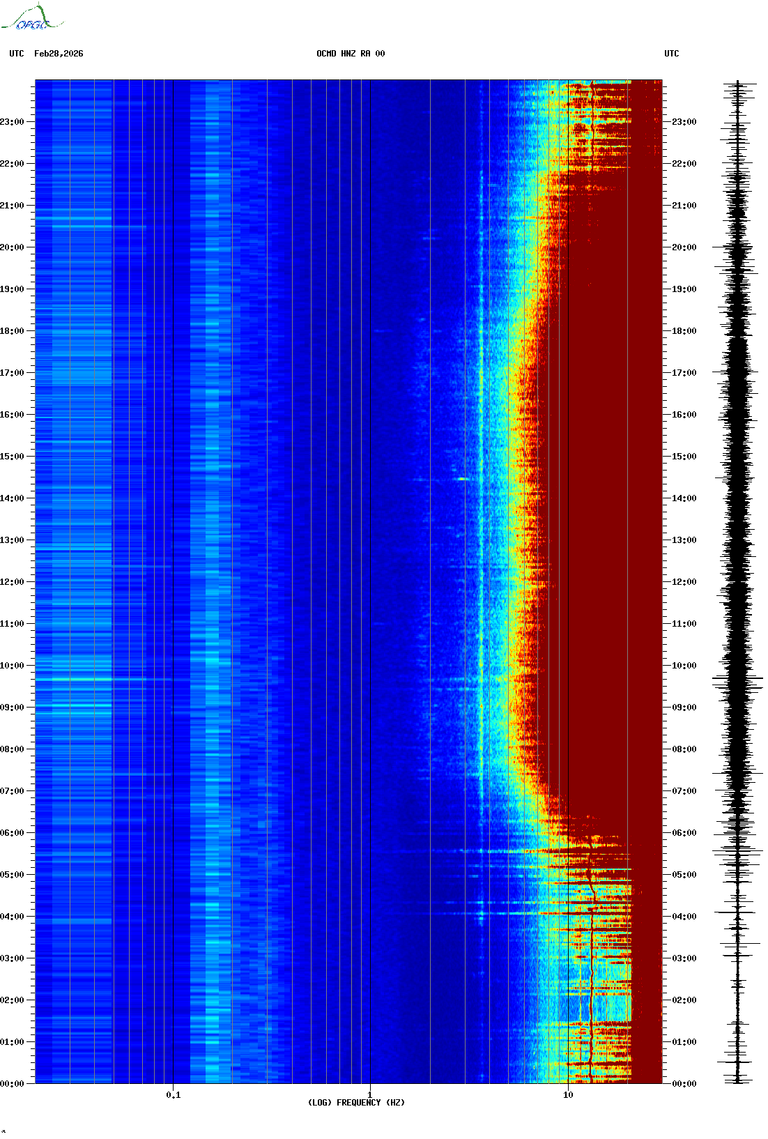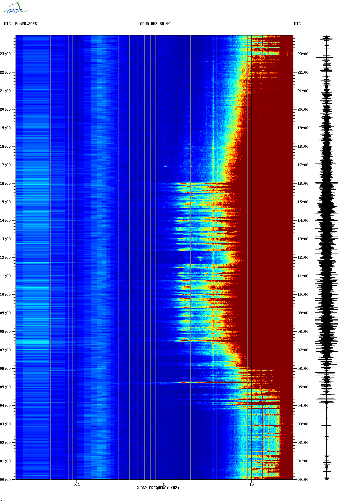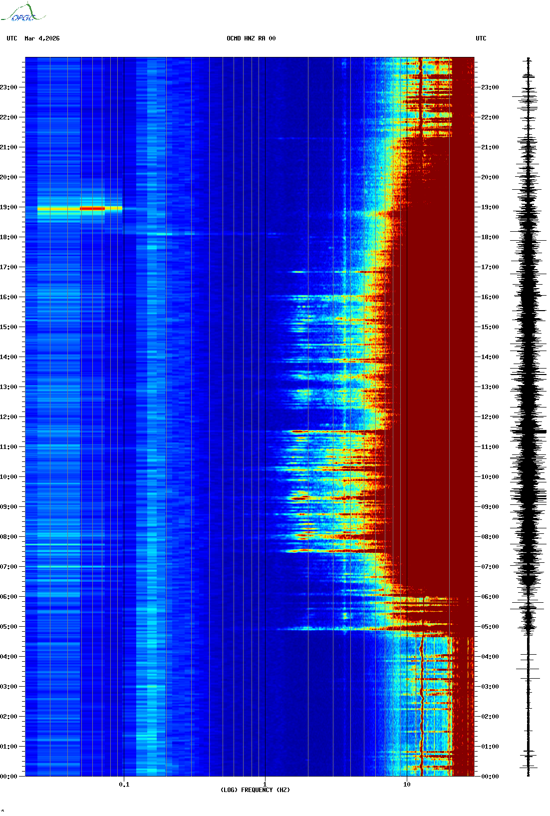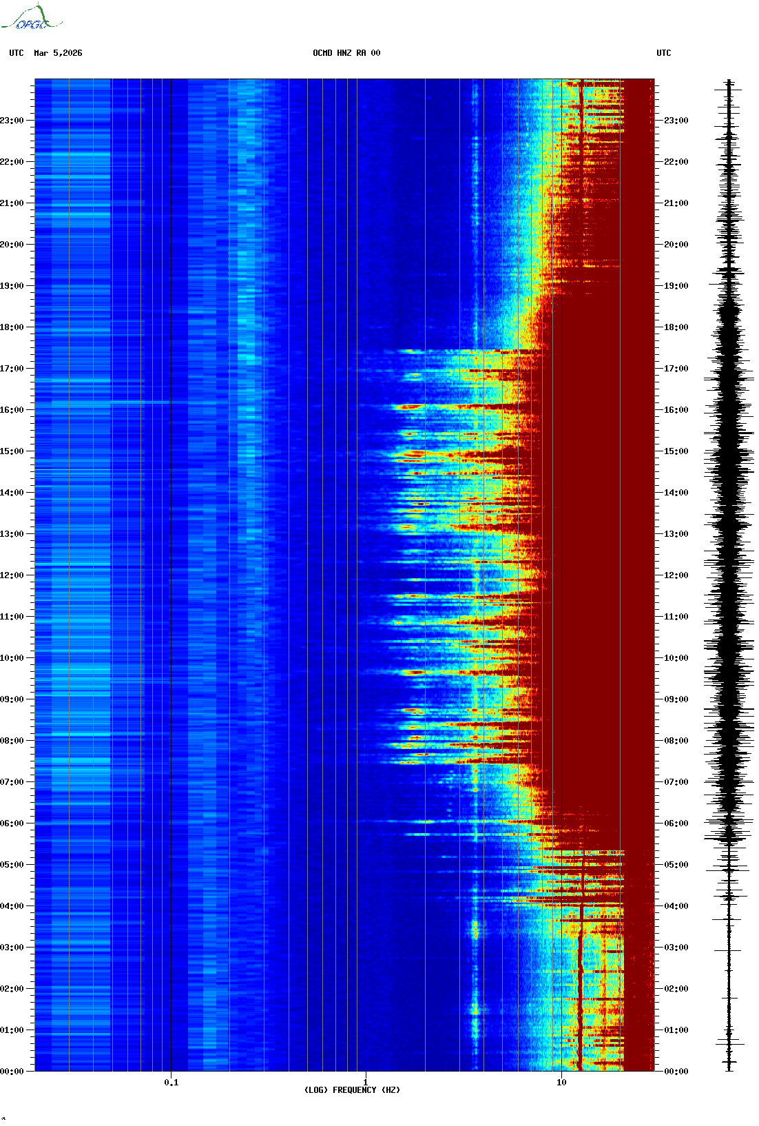 Spectrogrammes du Réseau Sismologique Auvergne-Charentes