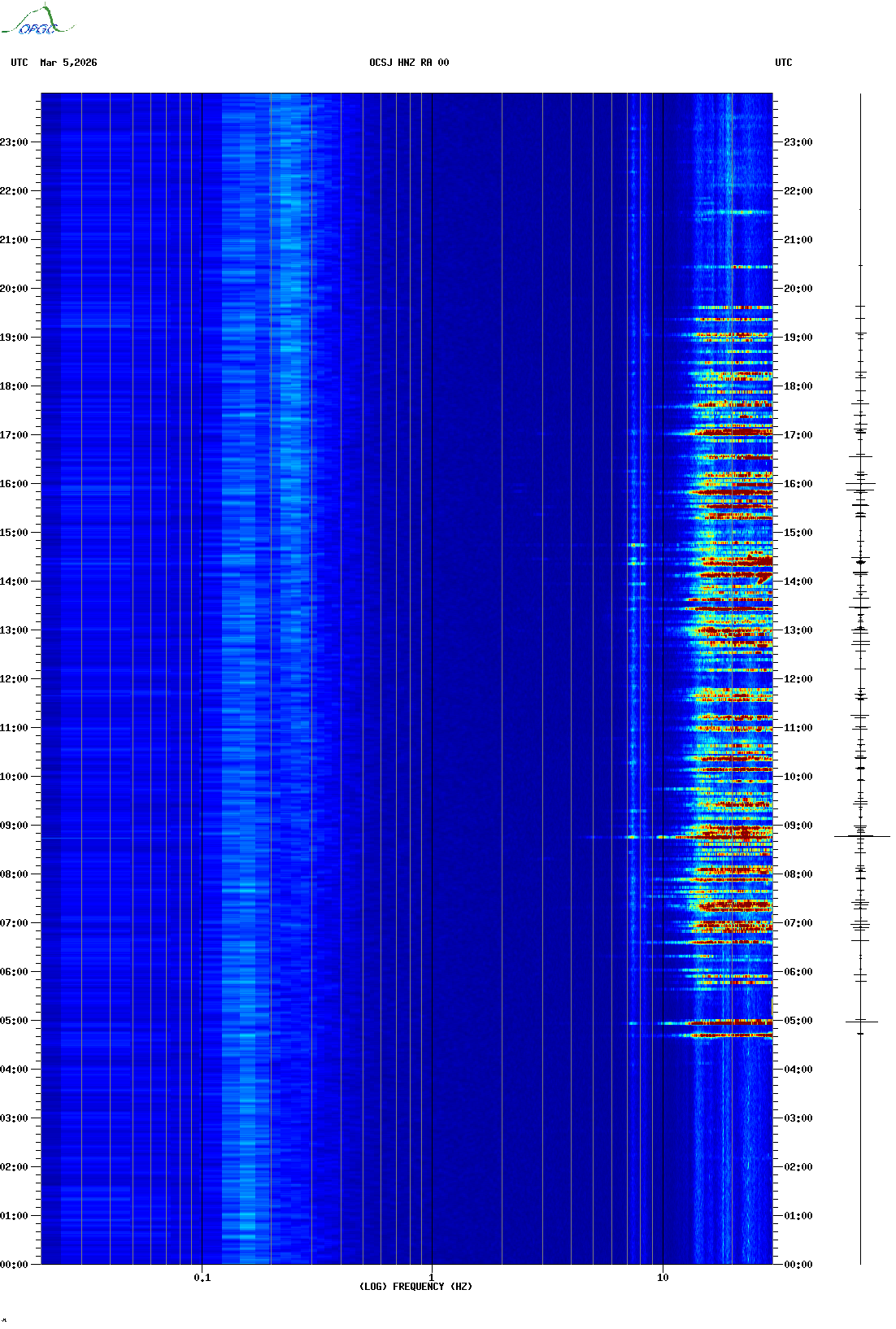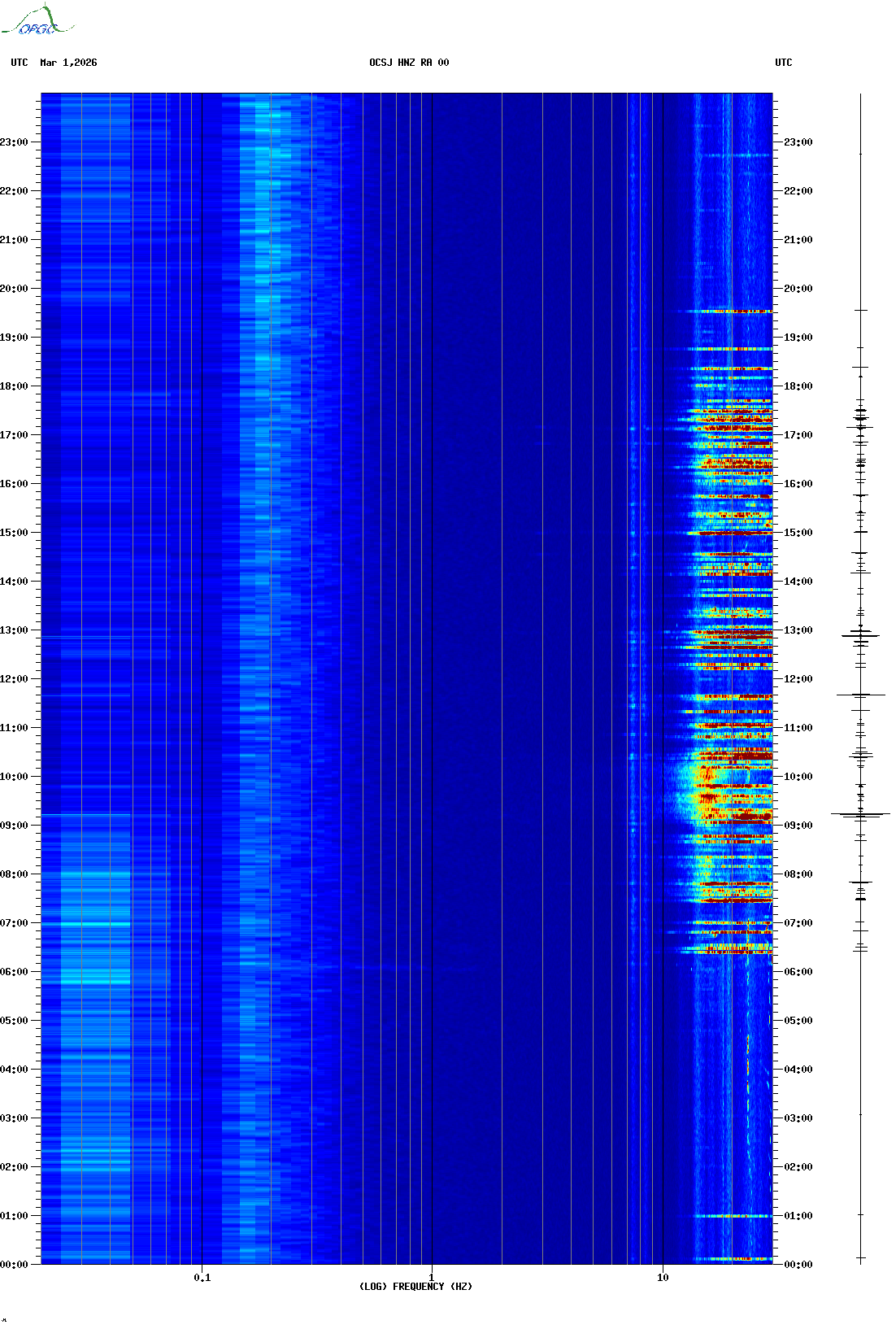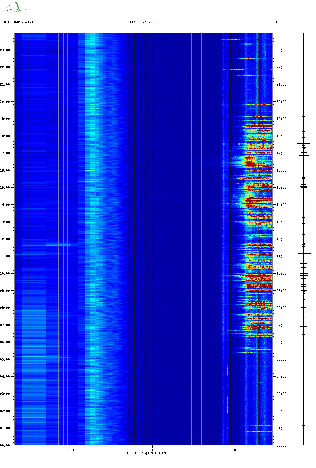 Spectrogrammes du Réseau Sismologique Auvergne-Charentes