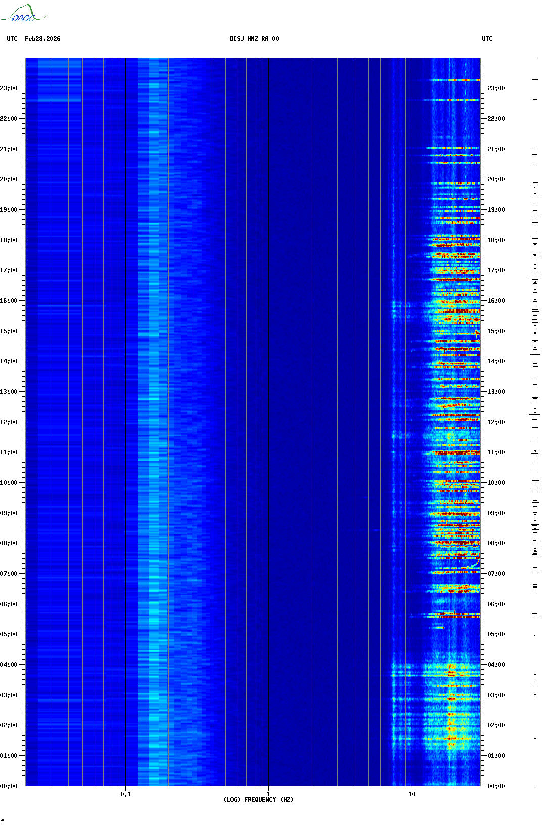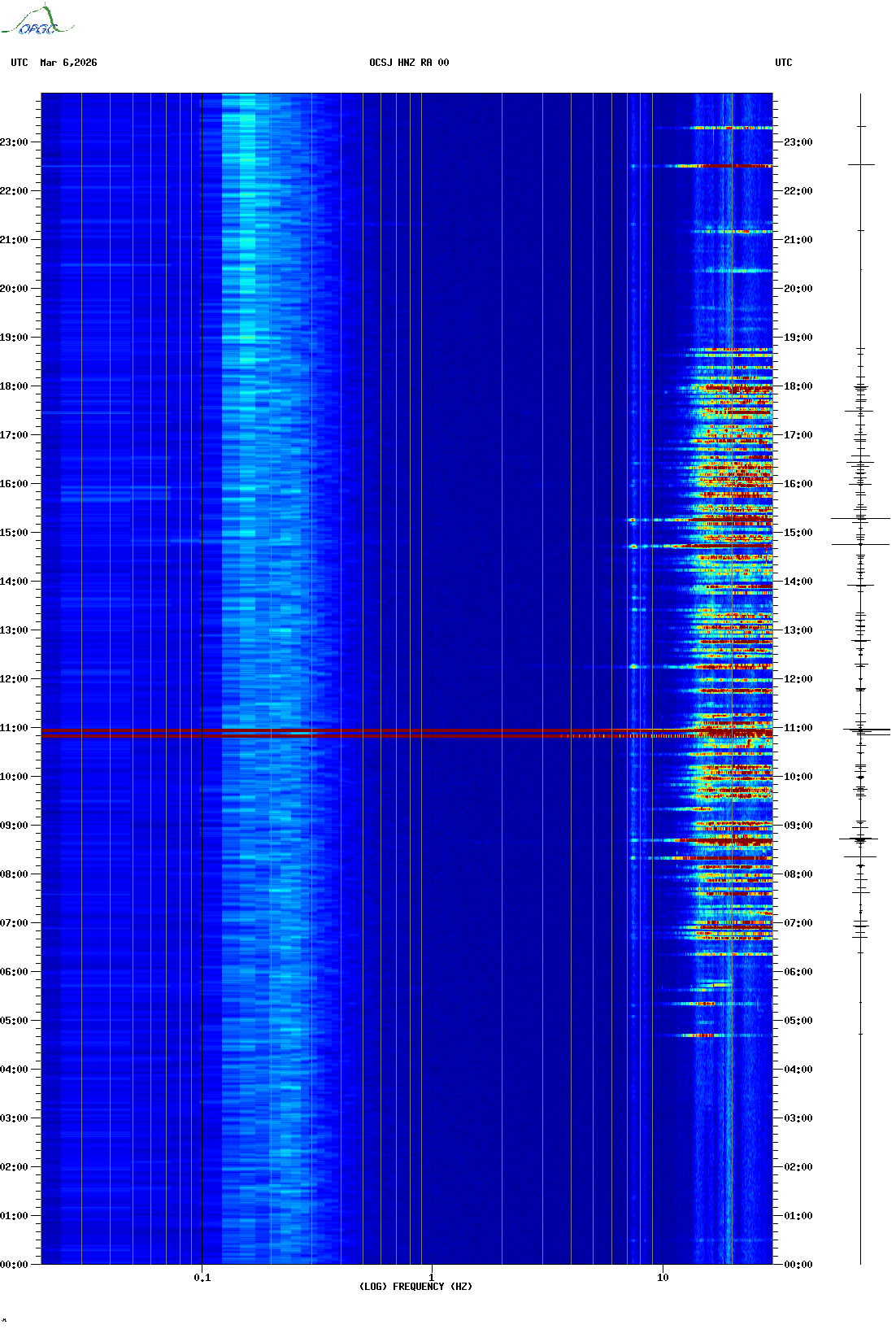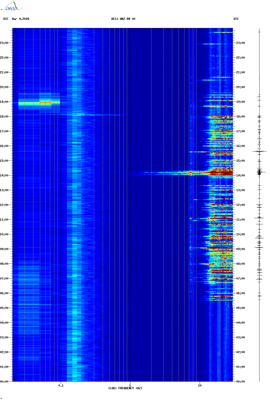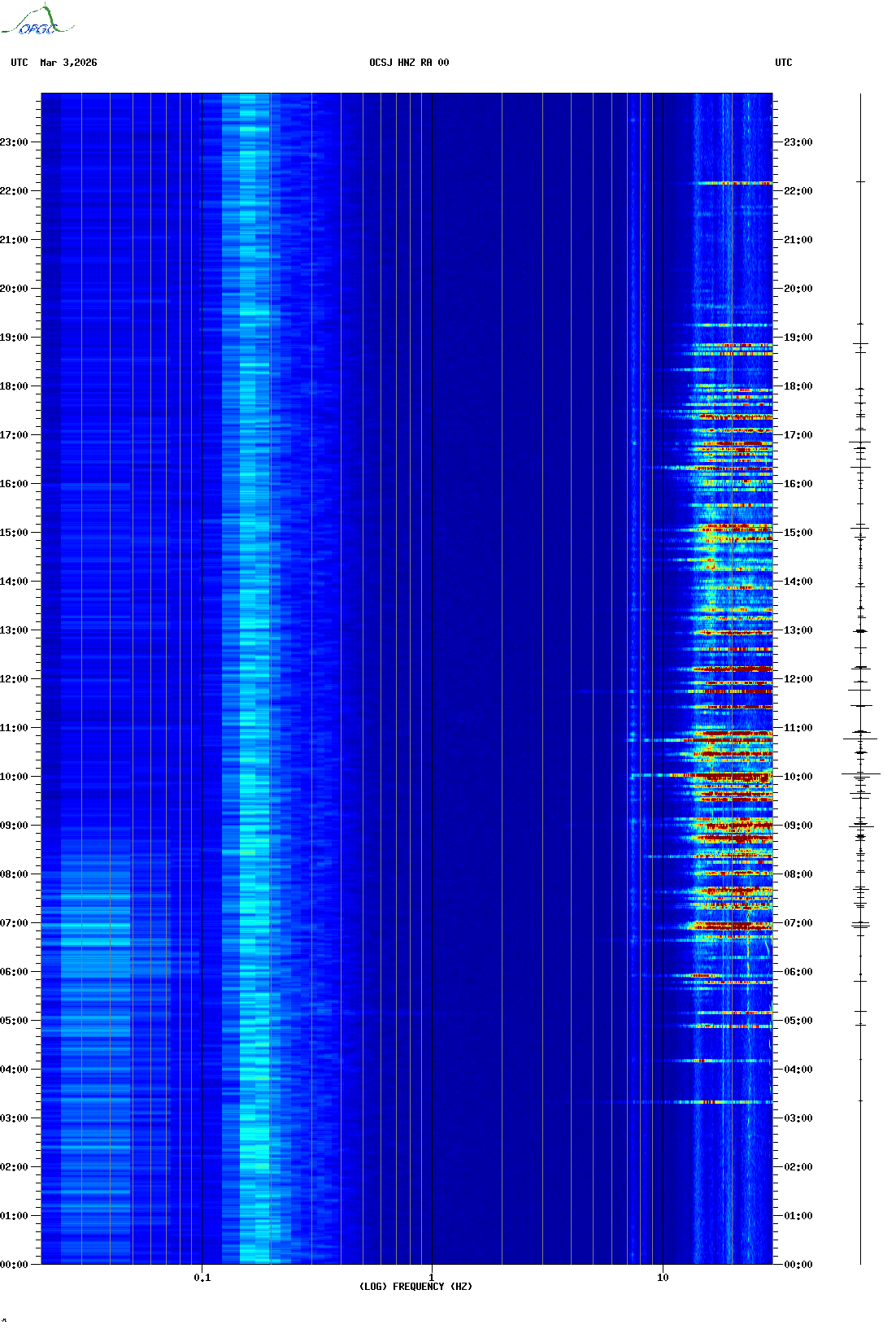 Spectrogrammes du Réseau Sismologique Auvergne-Charentes