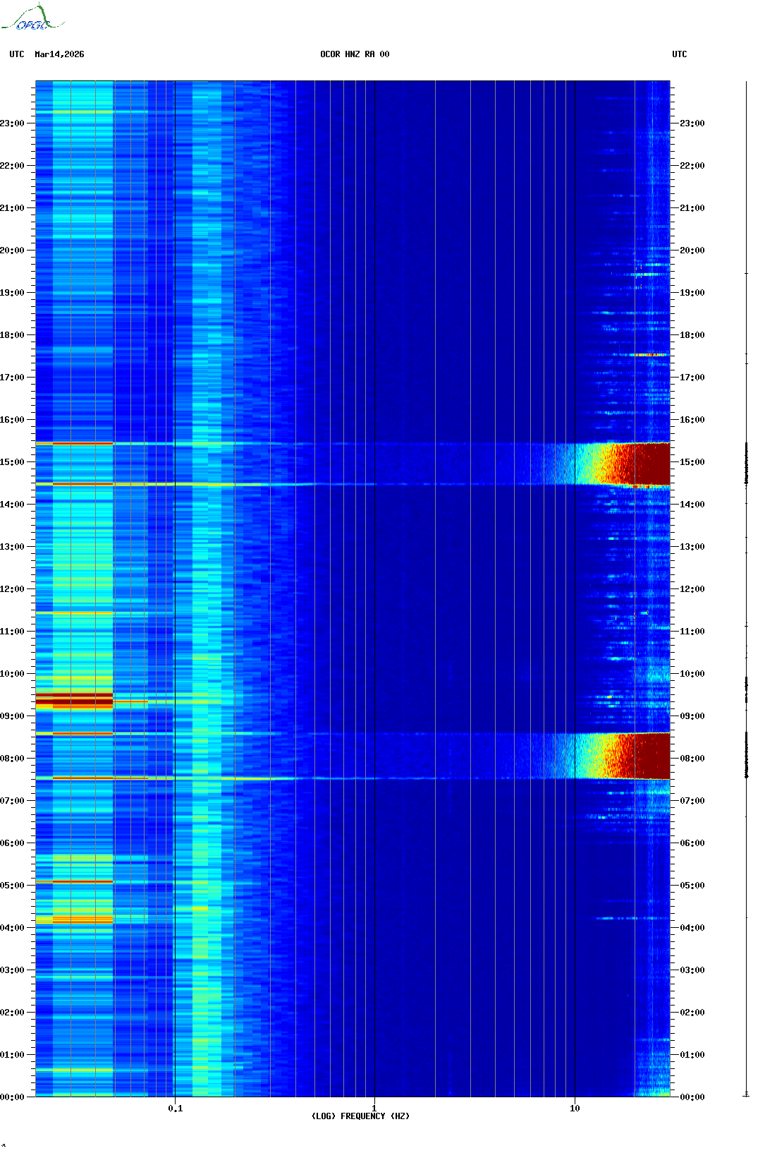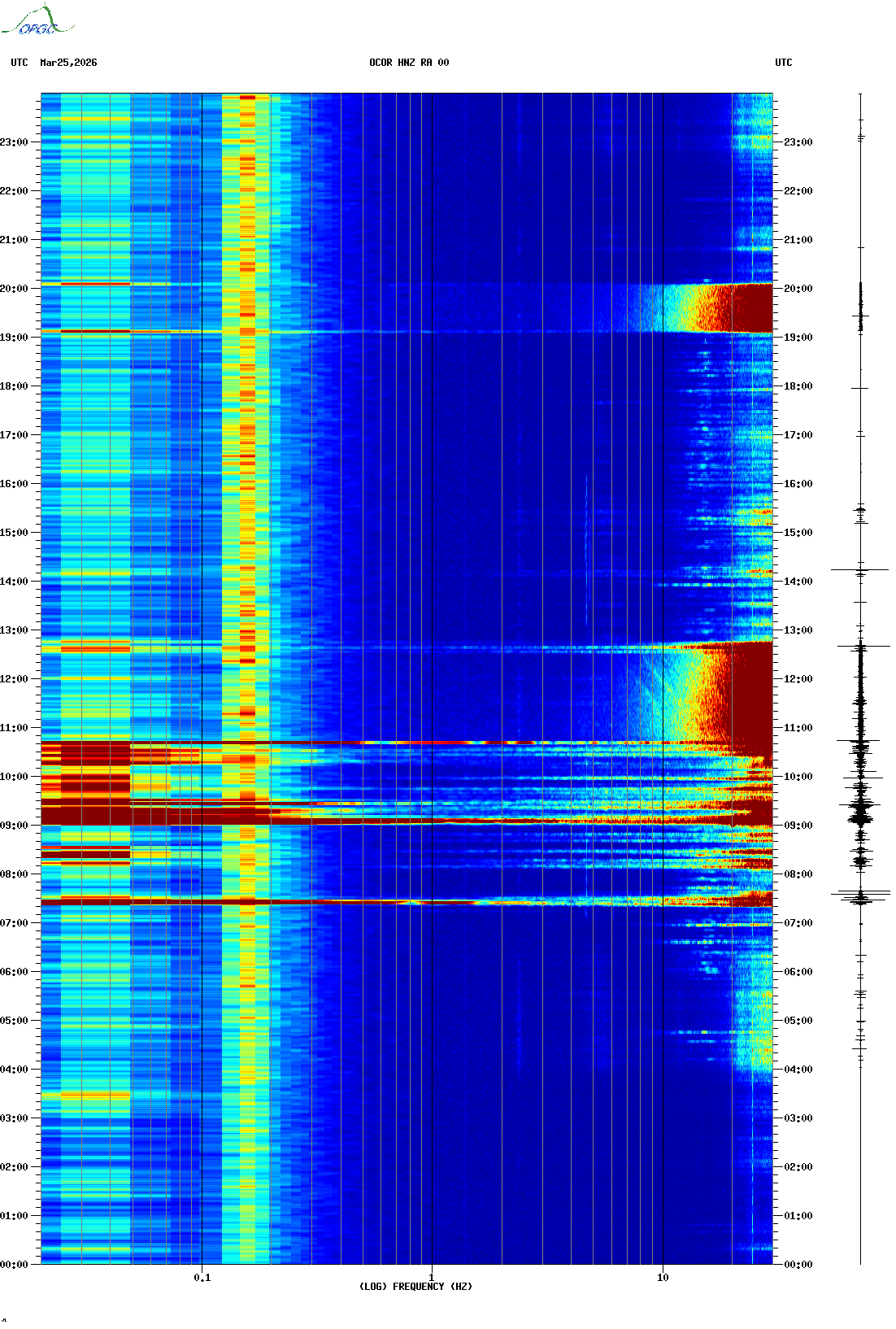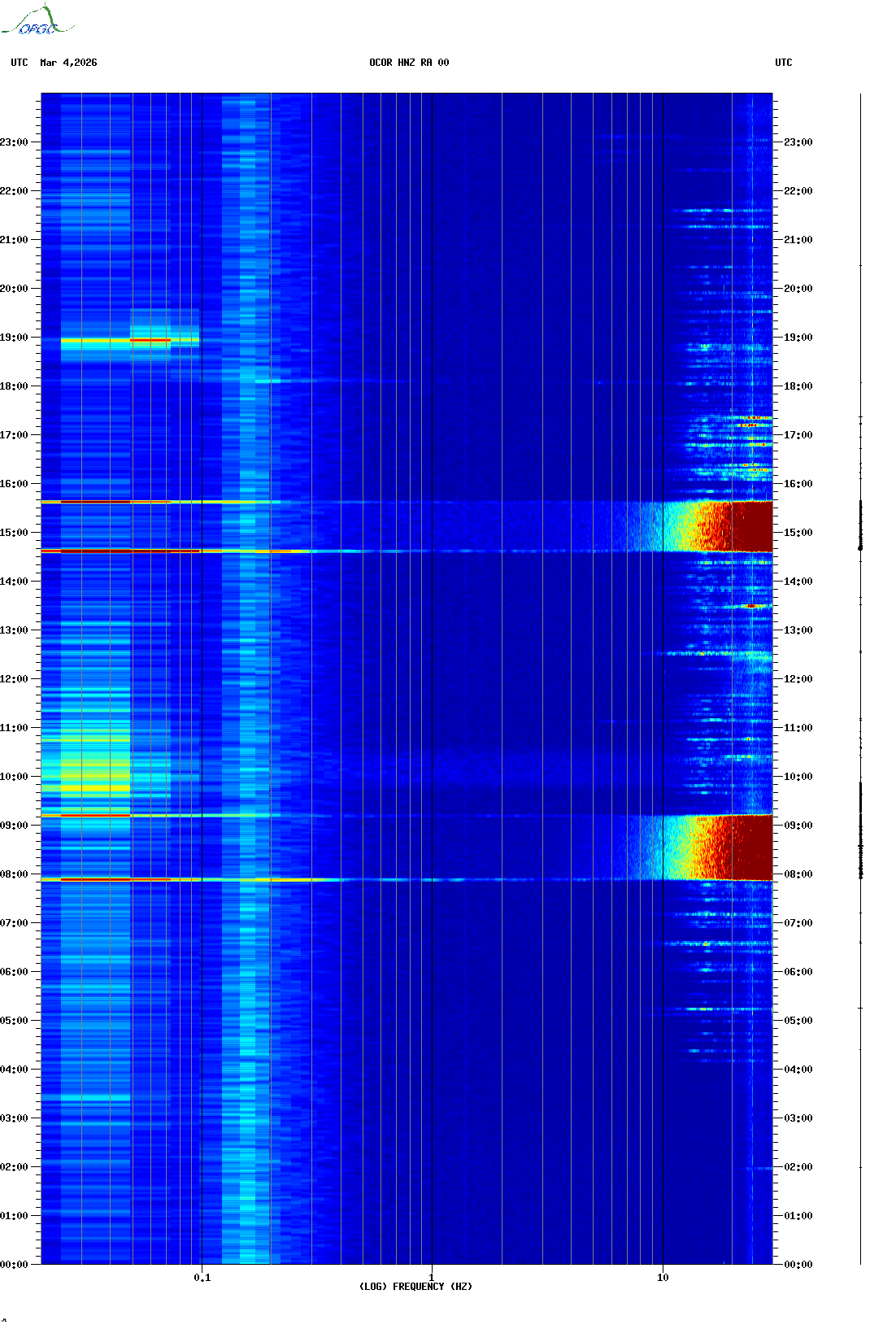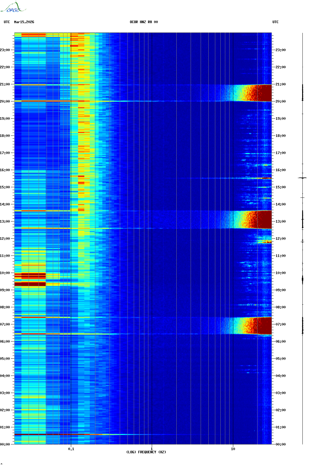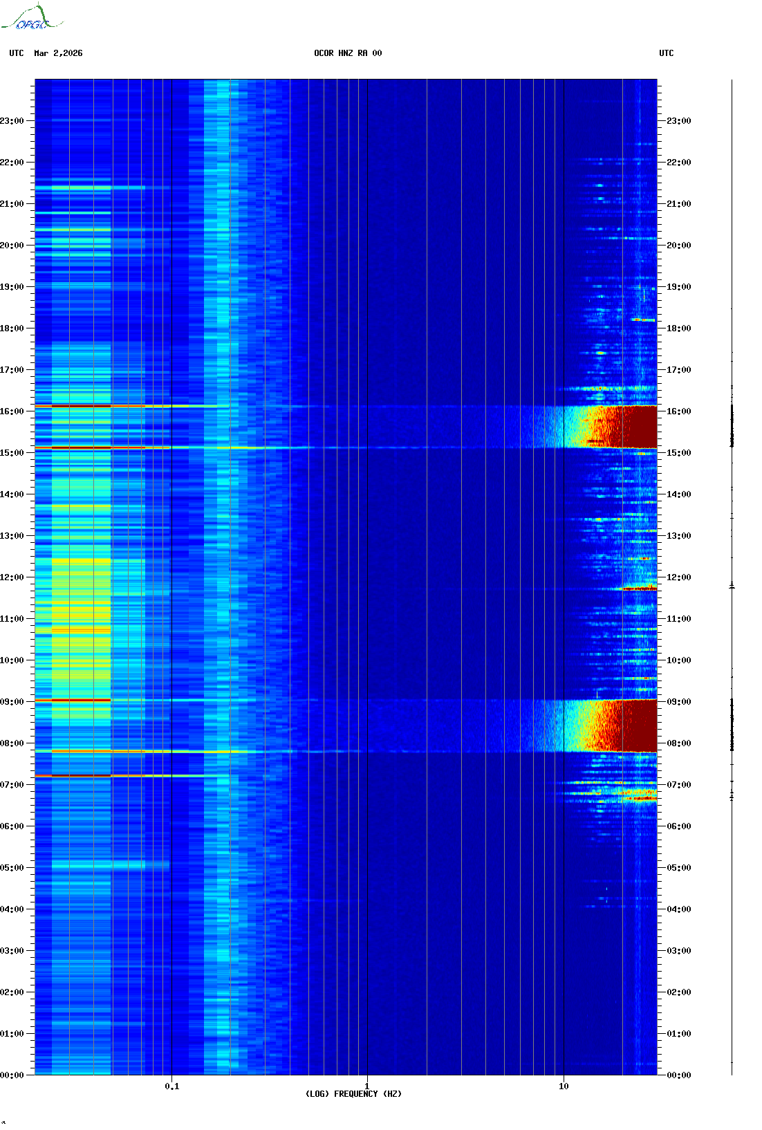 Spectrogrammes du Réseau Sismologique Auvergne-Charentes