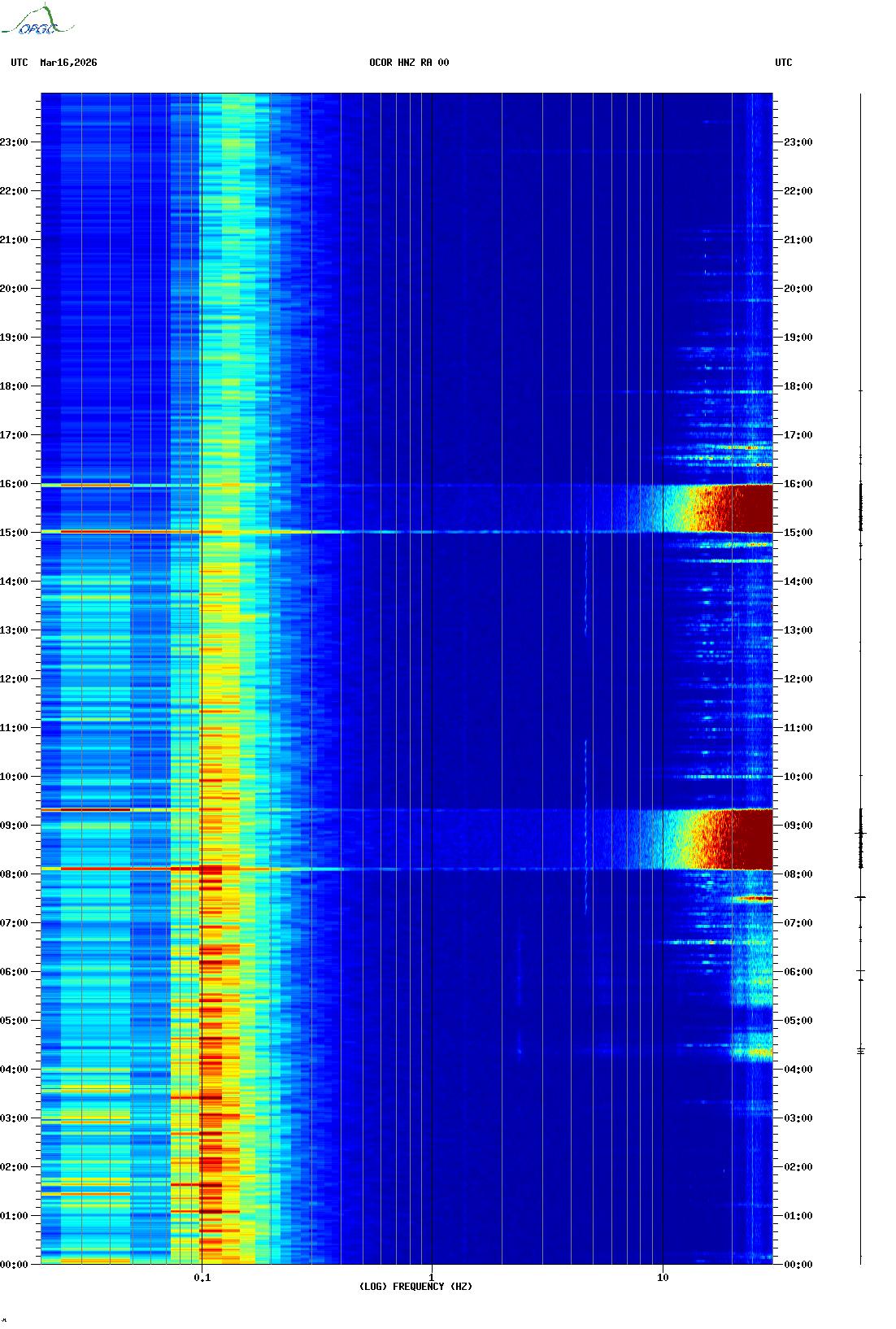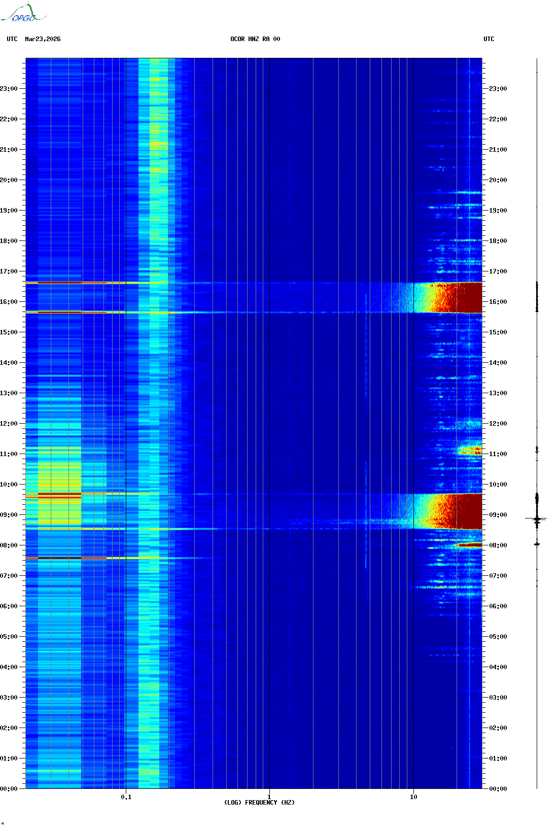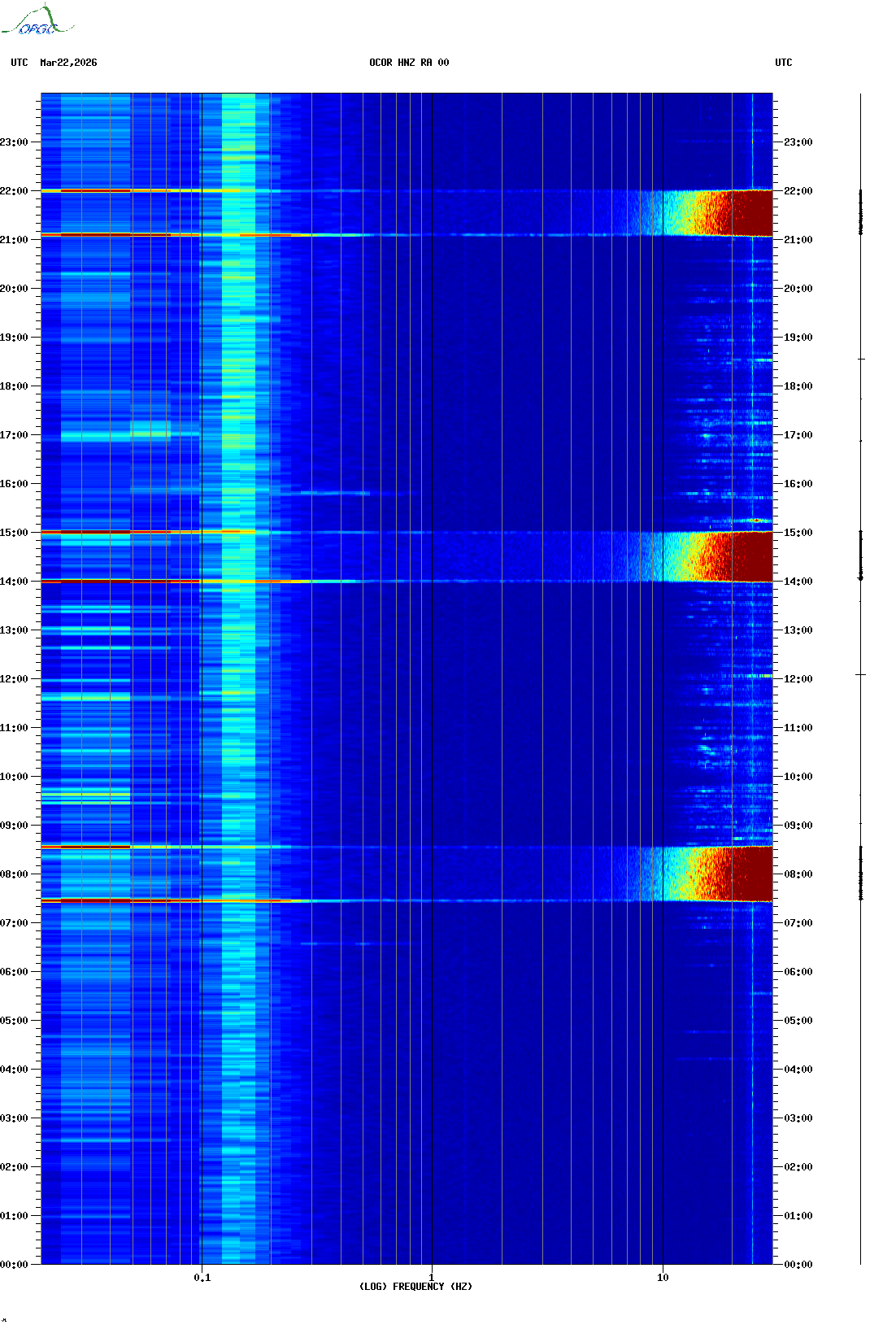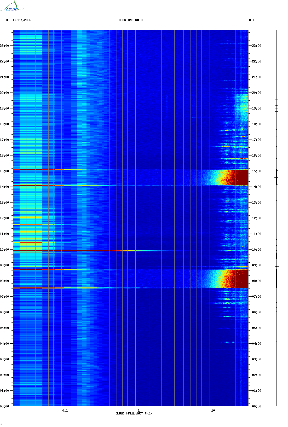 Spectrogrammes du Réseau Sismologique Auvergne-Charentes