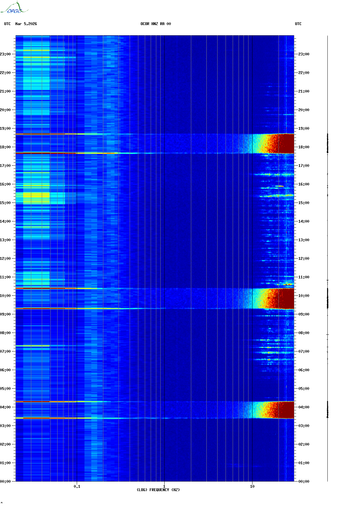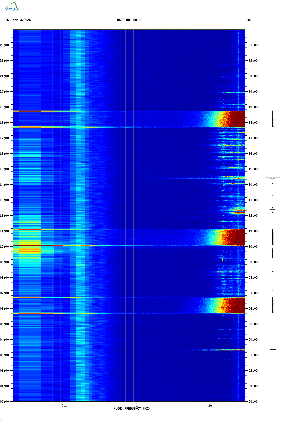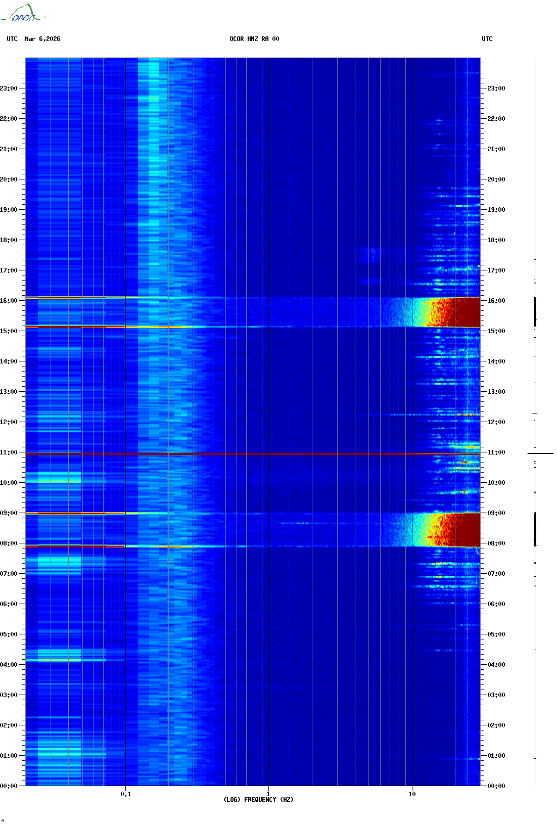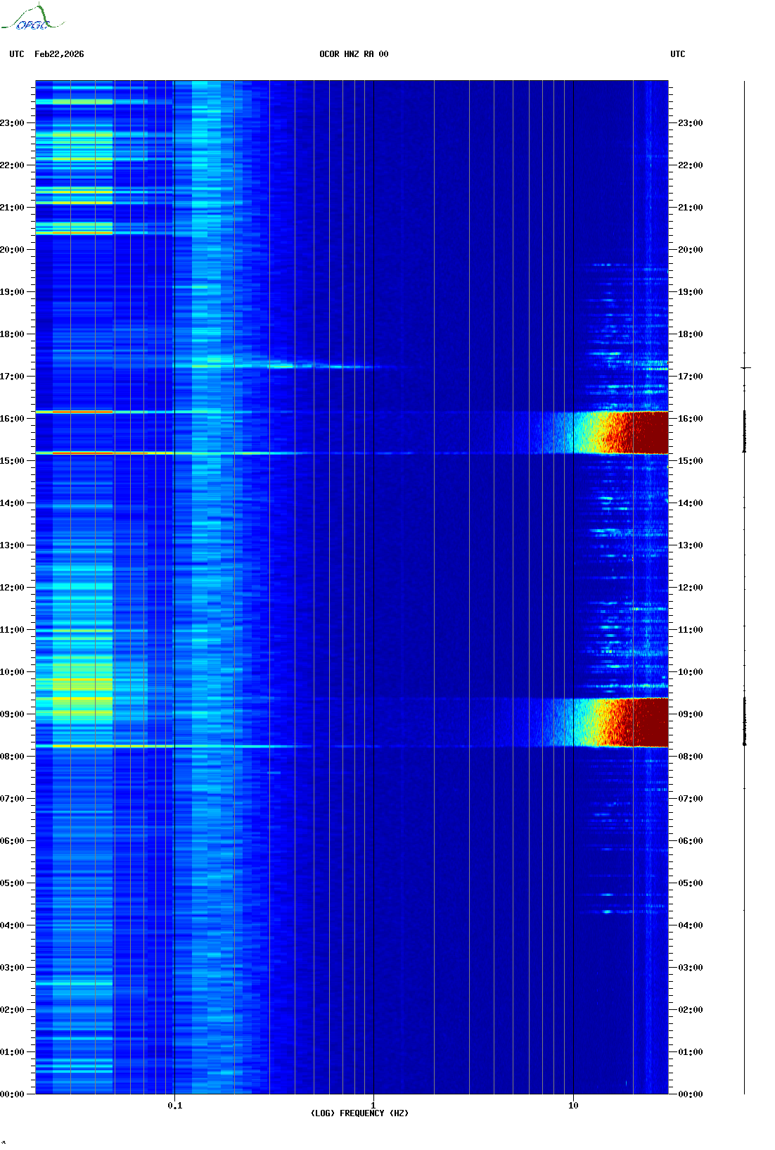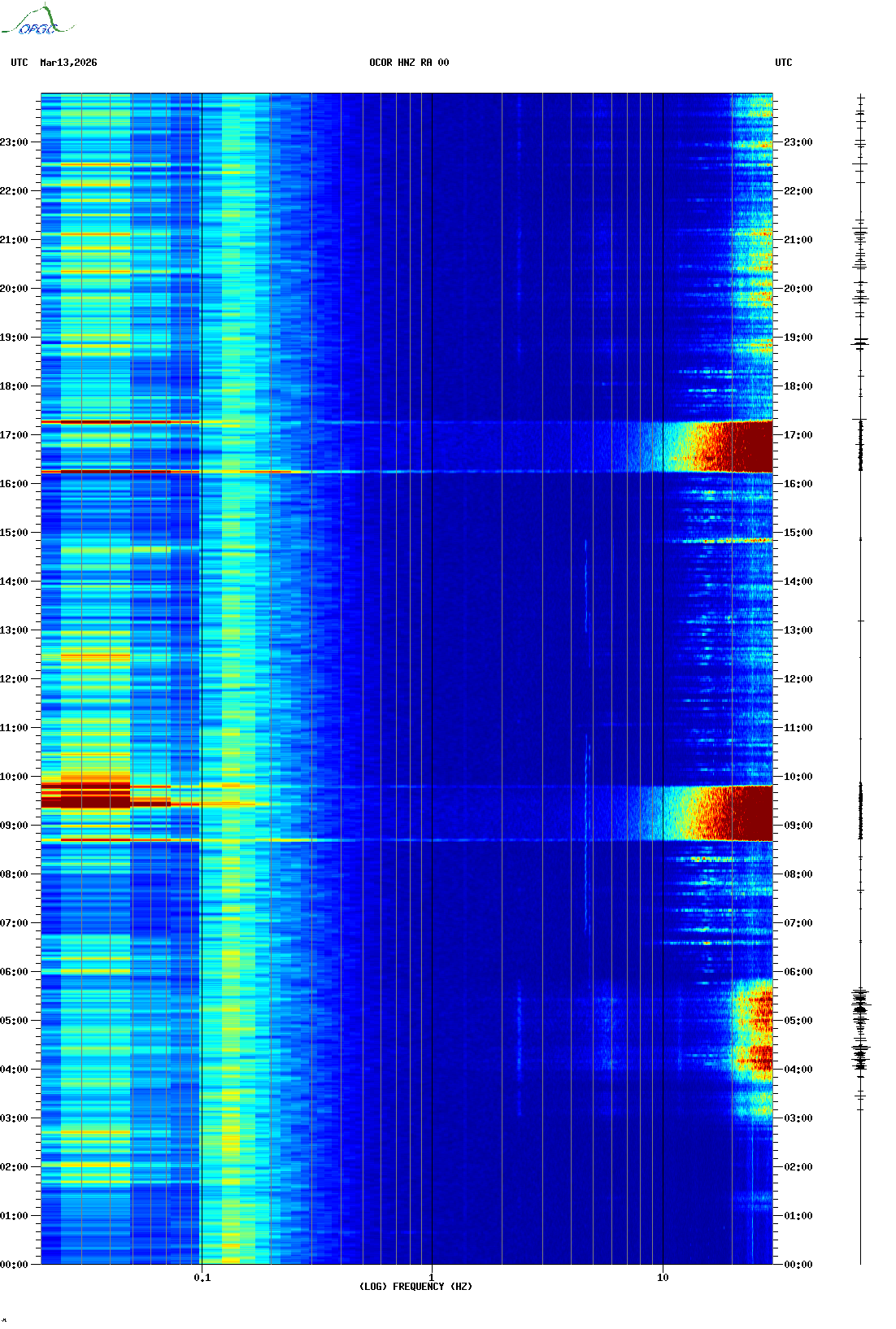 Spectrogrammes du Réseau Sismologique Auvergne-Charentes