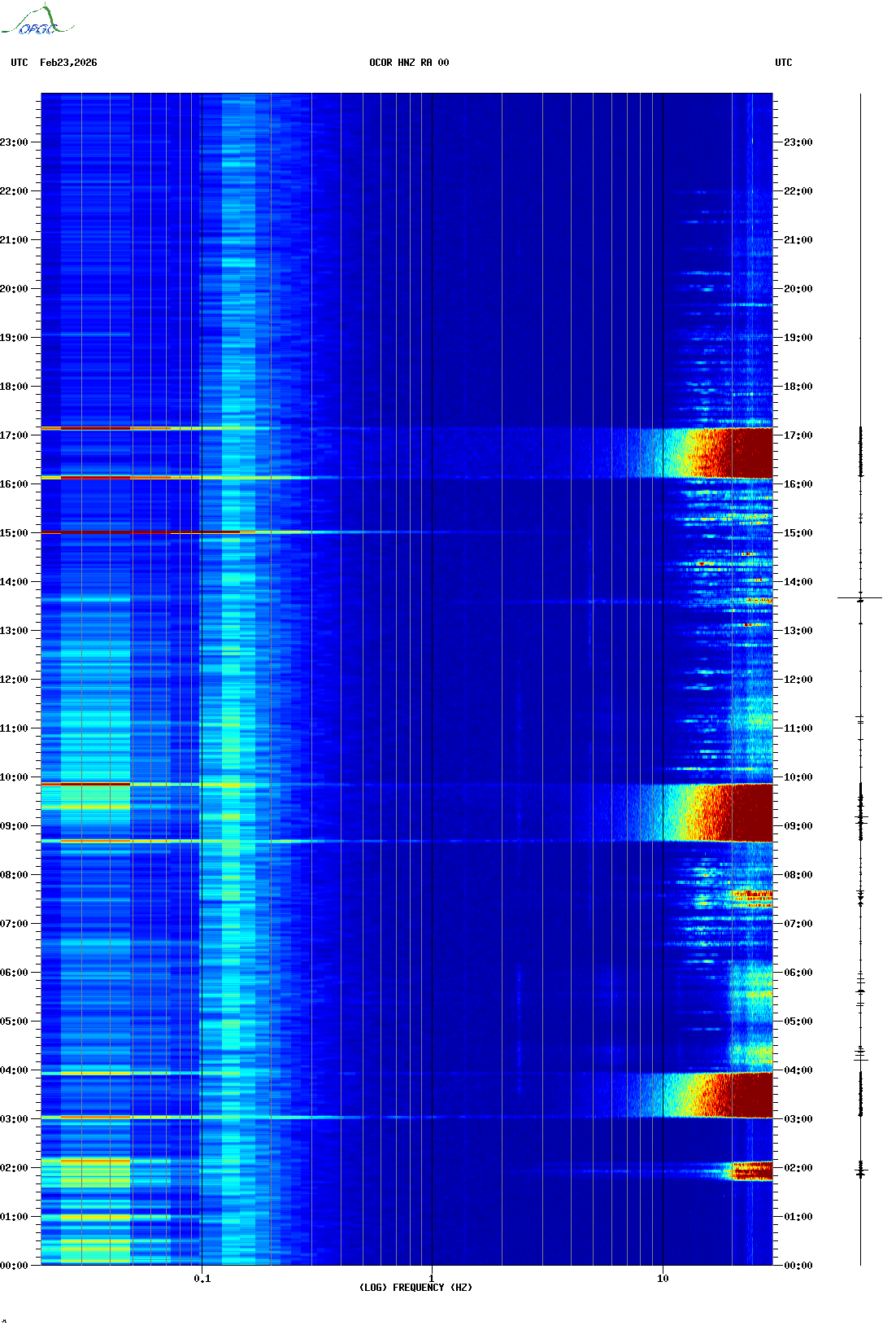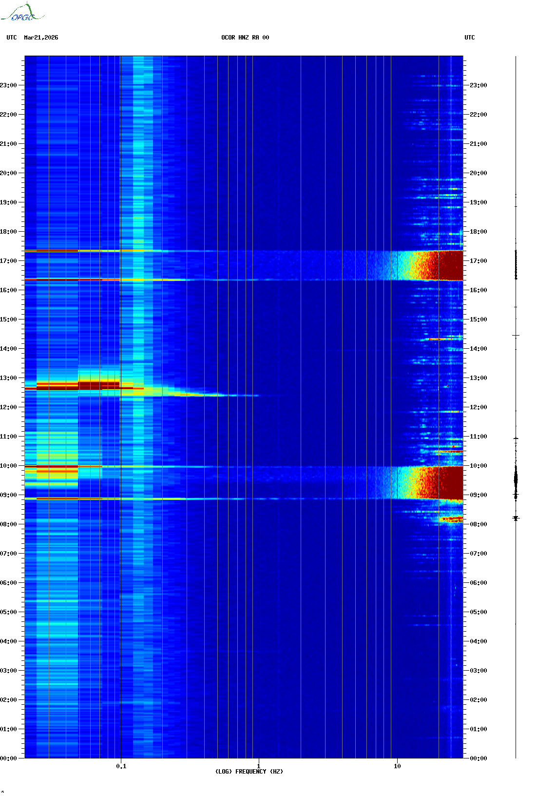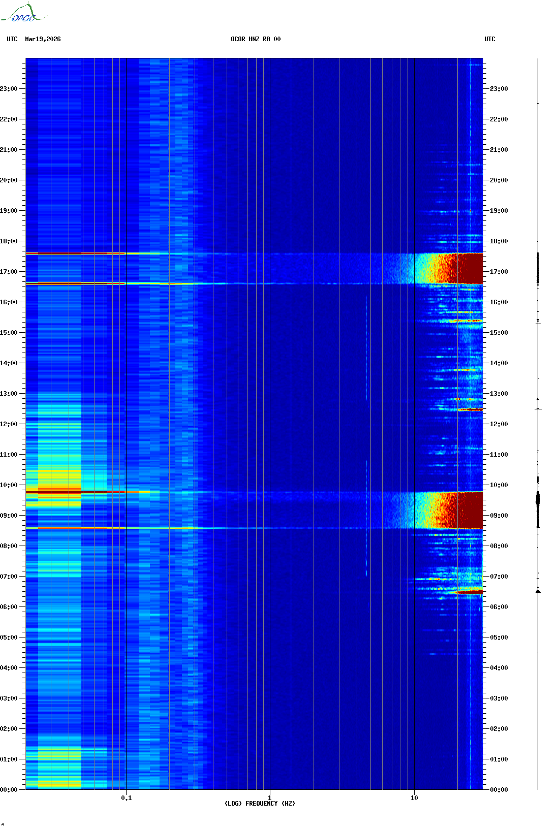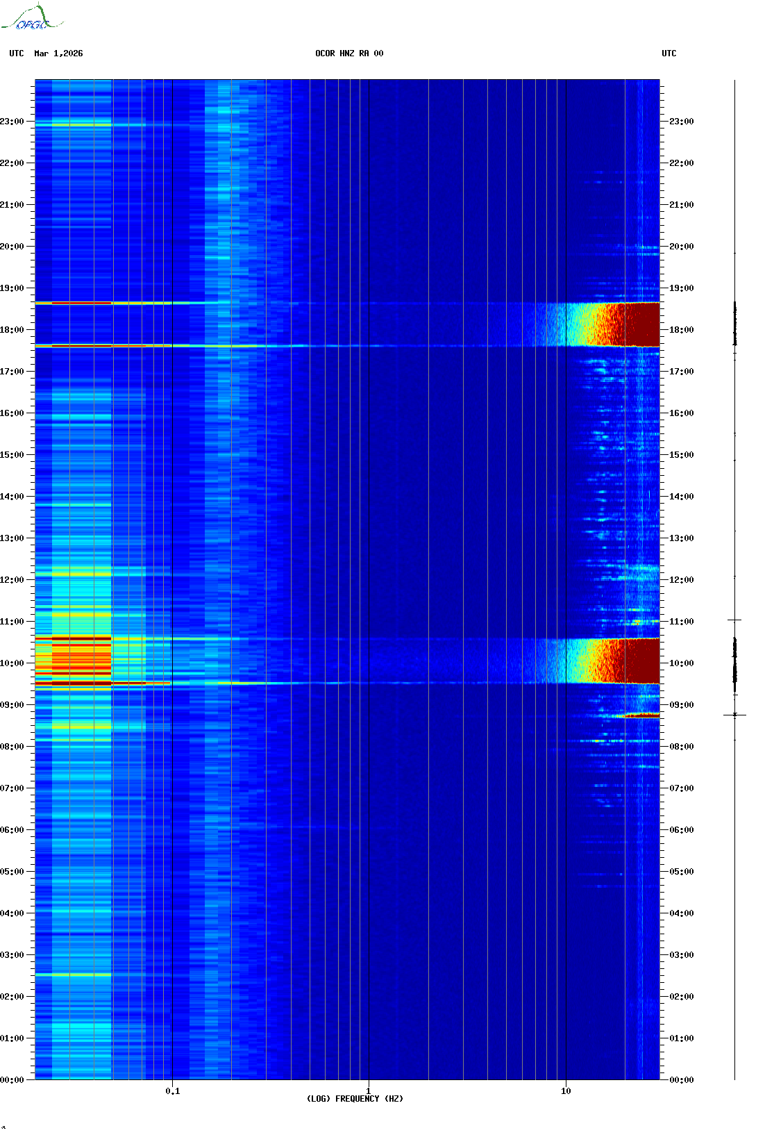 Spectrogrammes du Réseau Sismologique Auvergne-Charentes