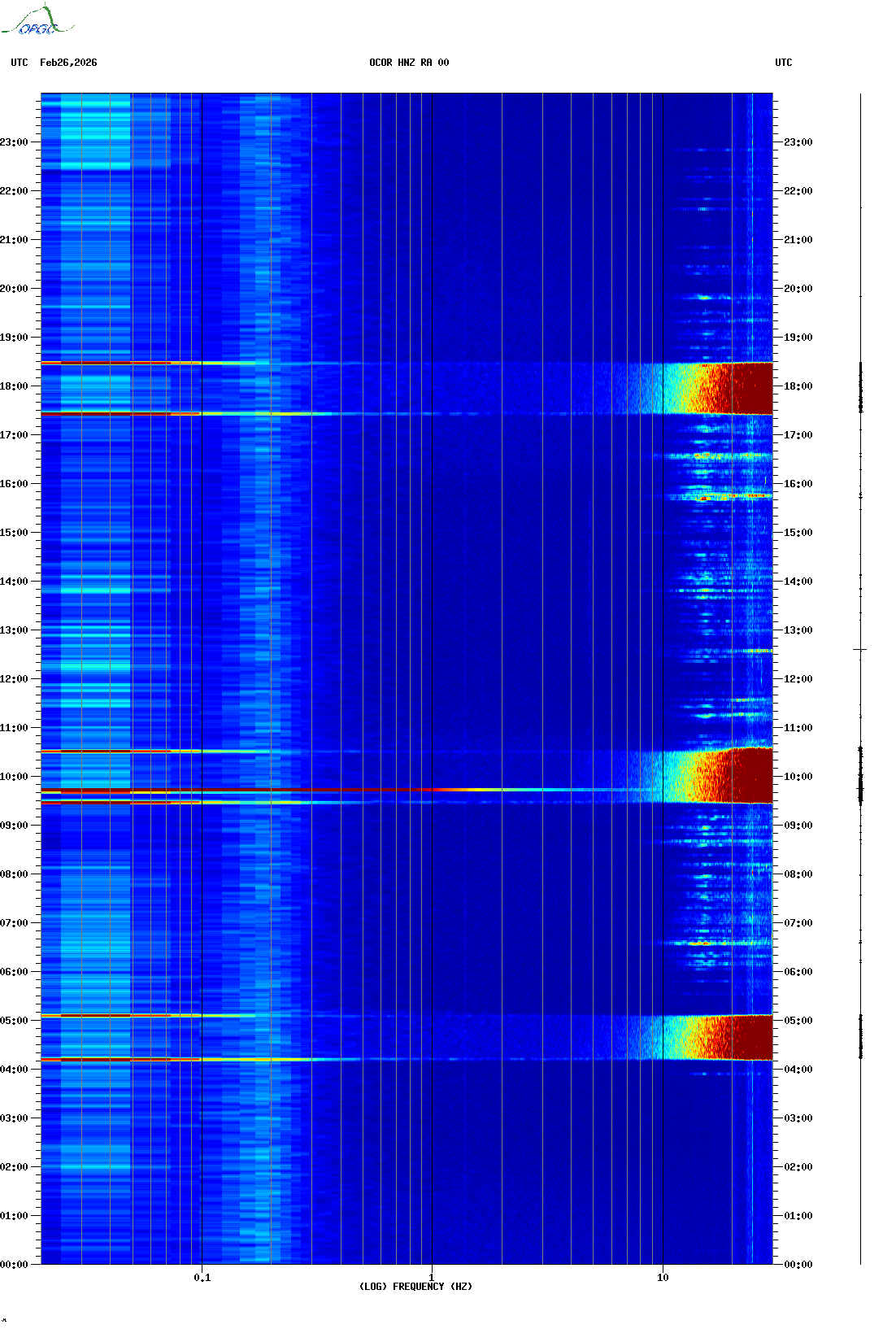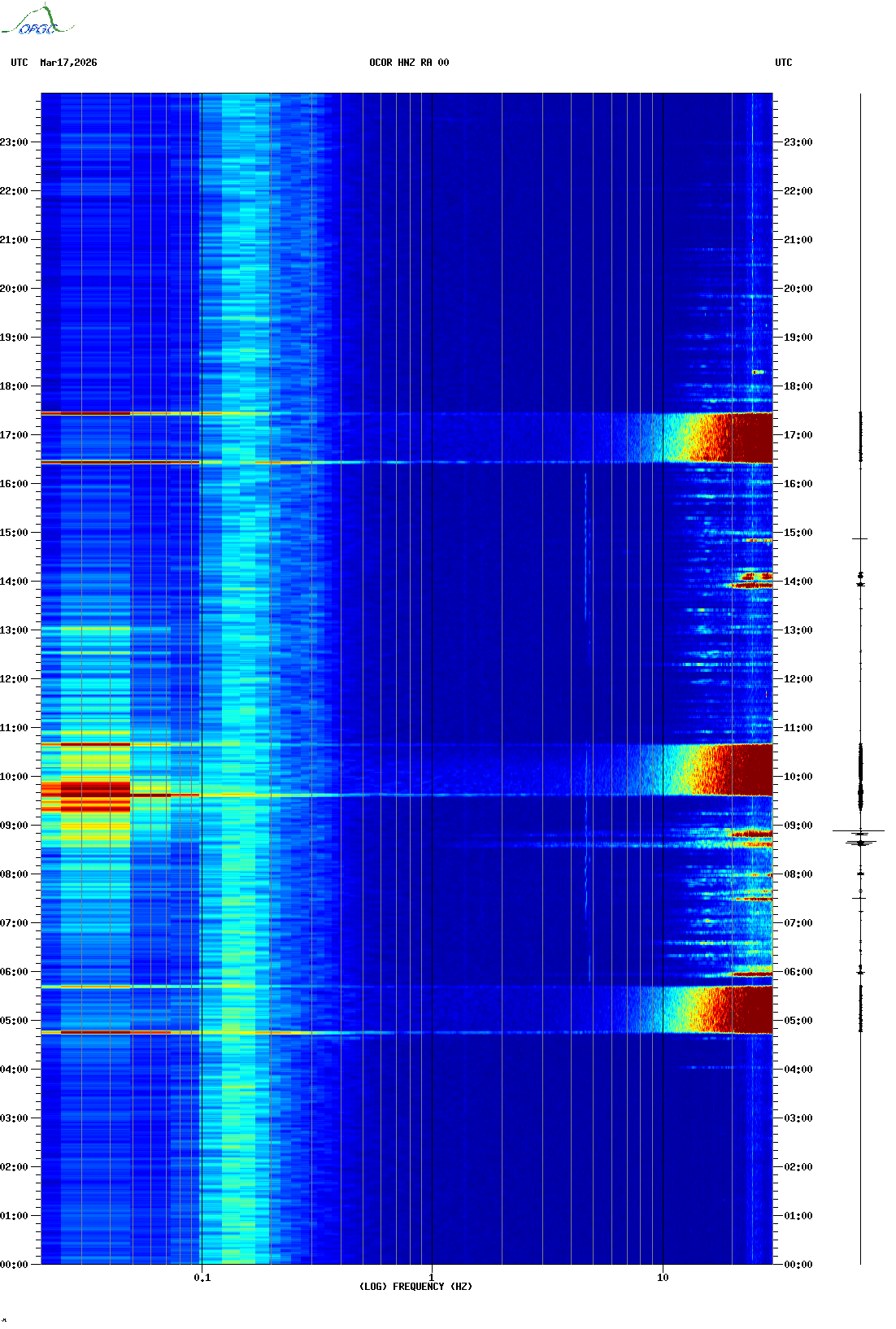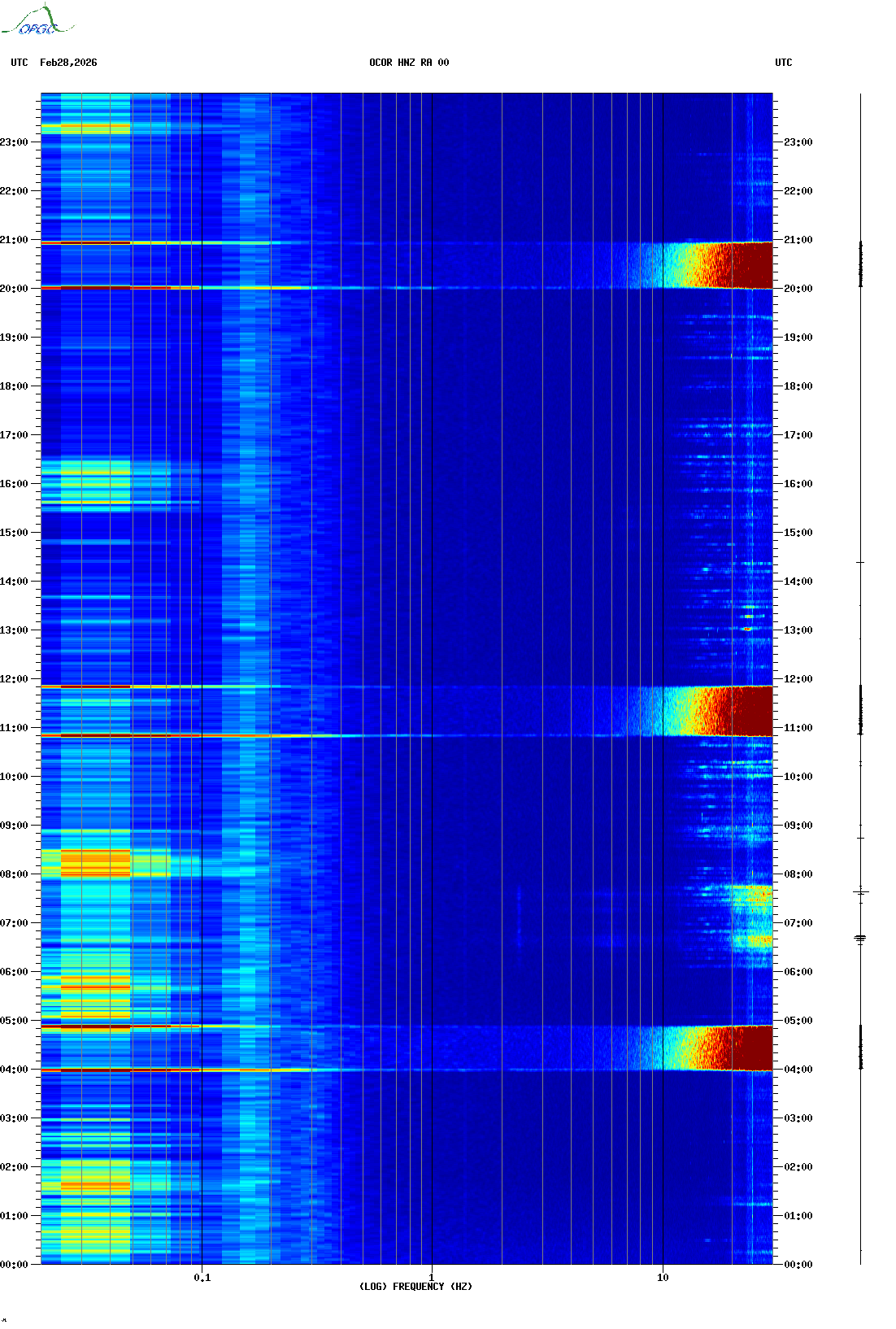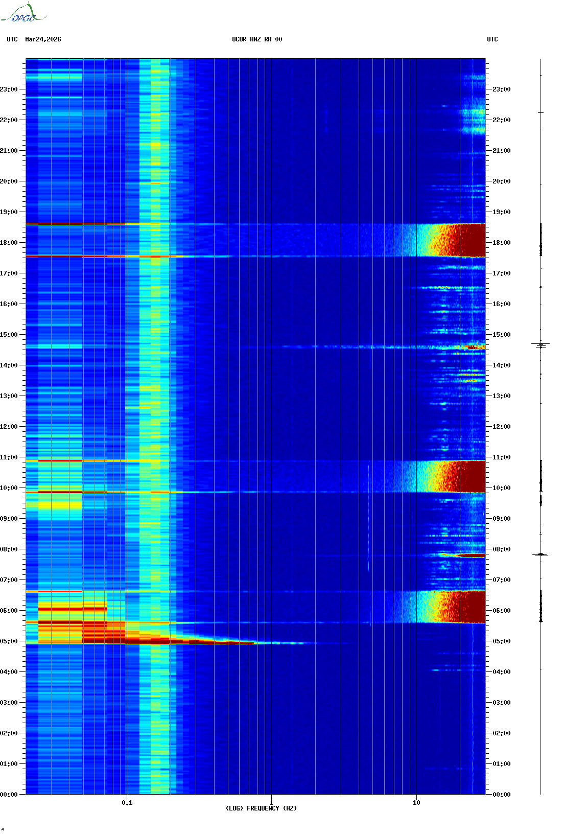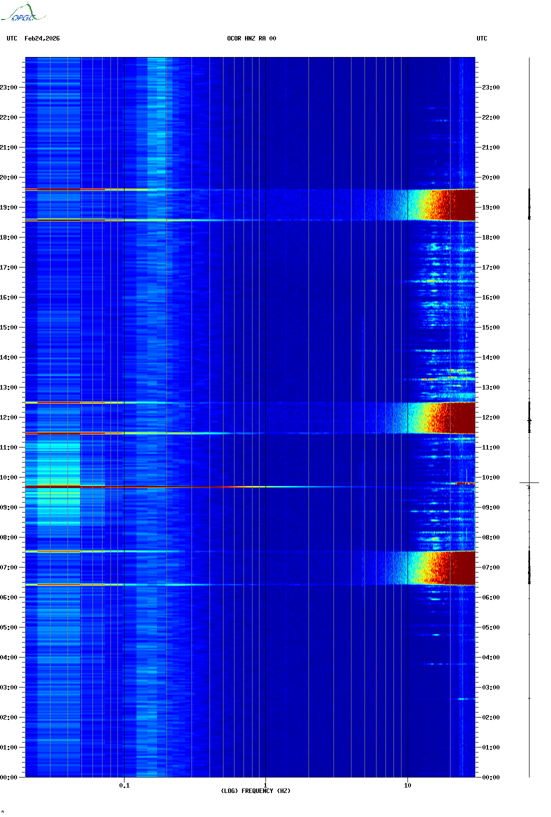 Spectrogrammes du Réseau Sismologique Auvergne-Charentes