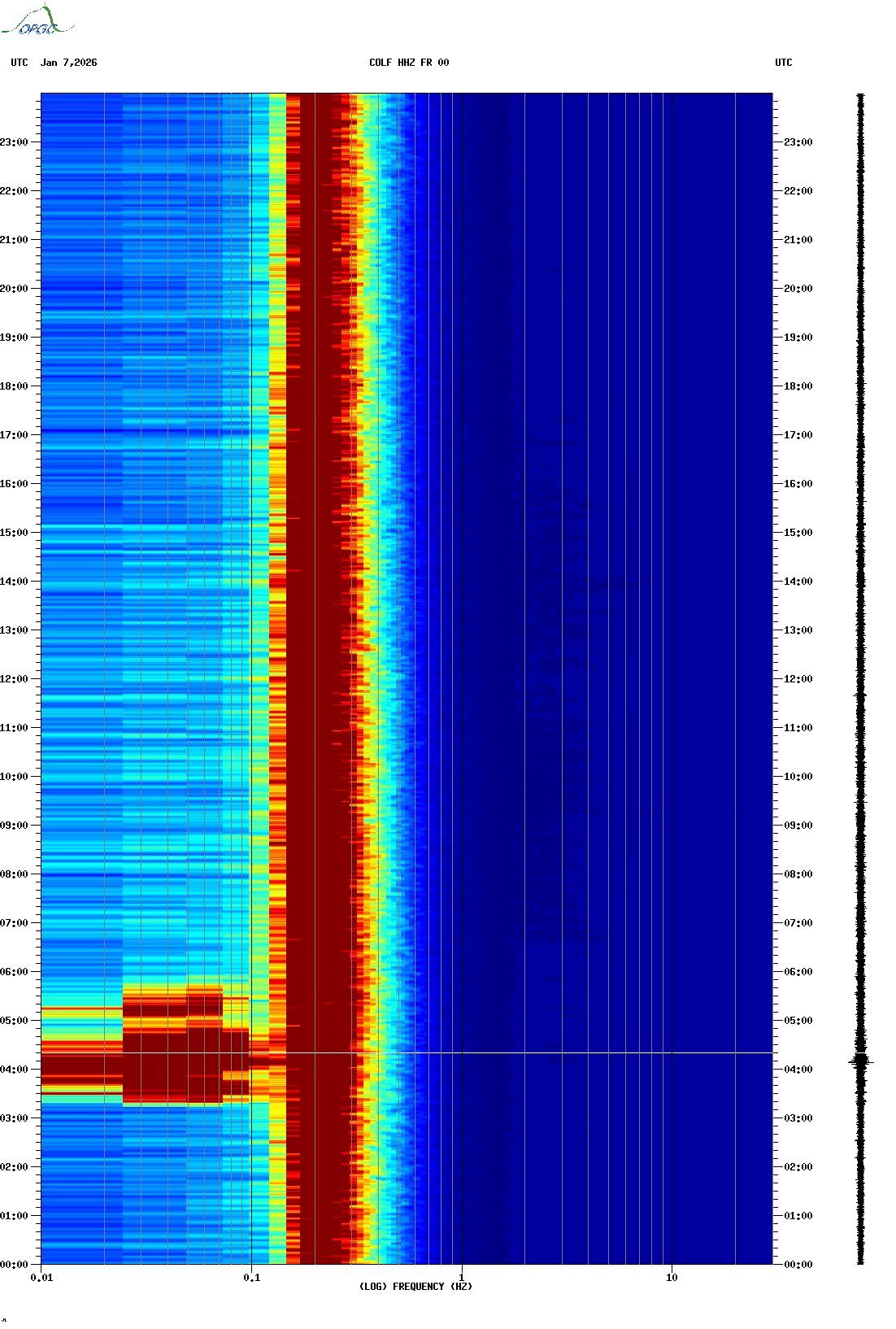 Spectrogrammes du Réseau Sismologique Auvergne-Charentes