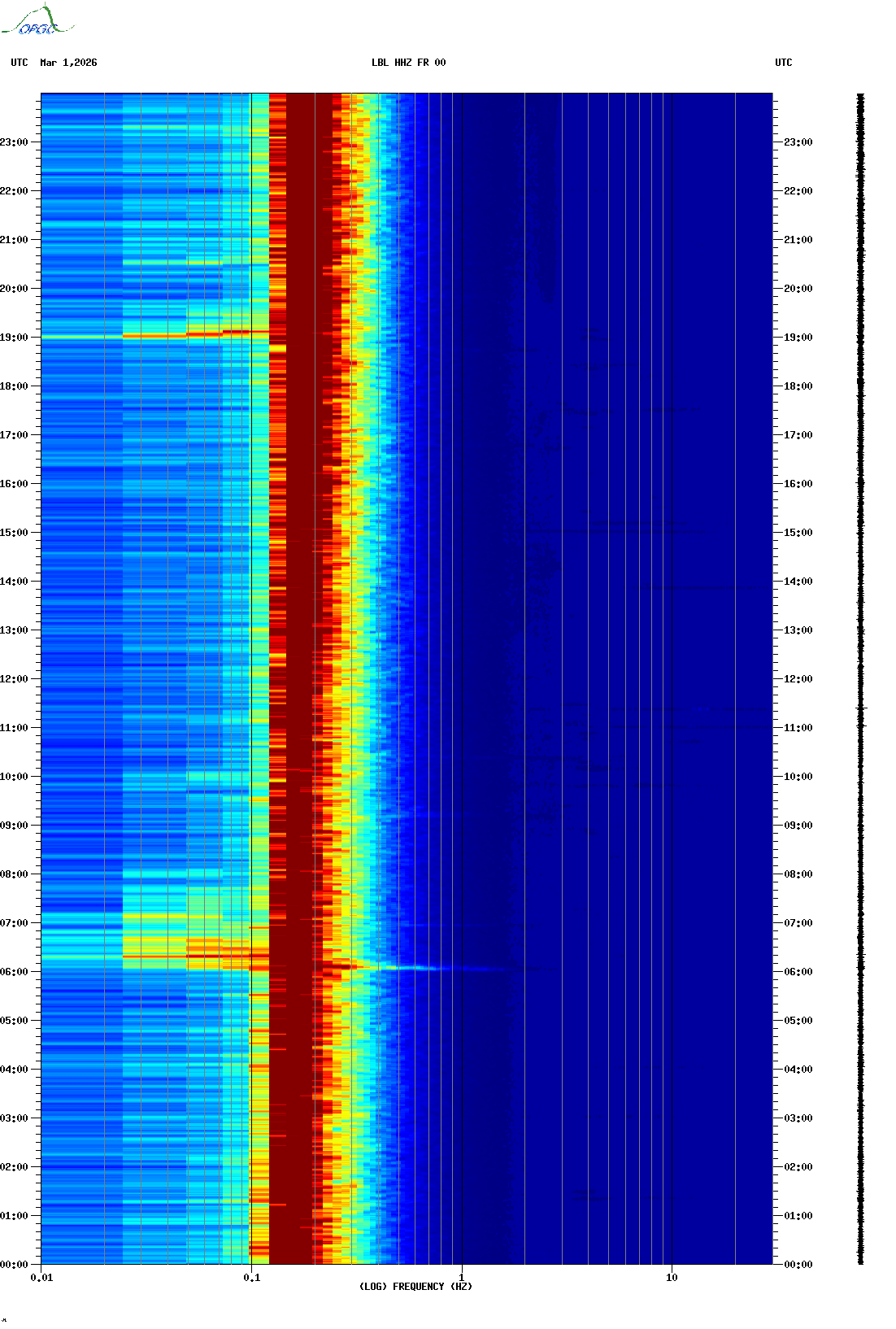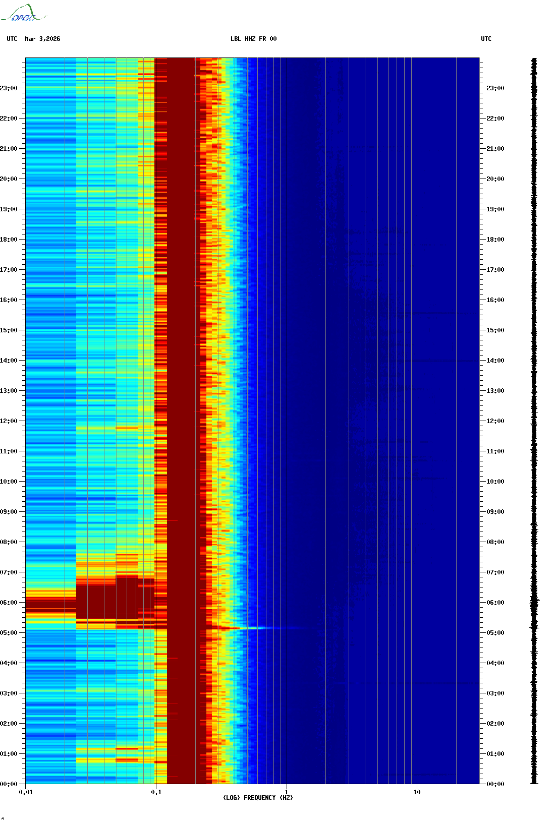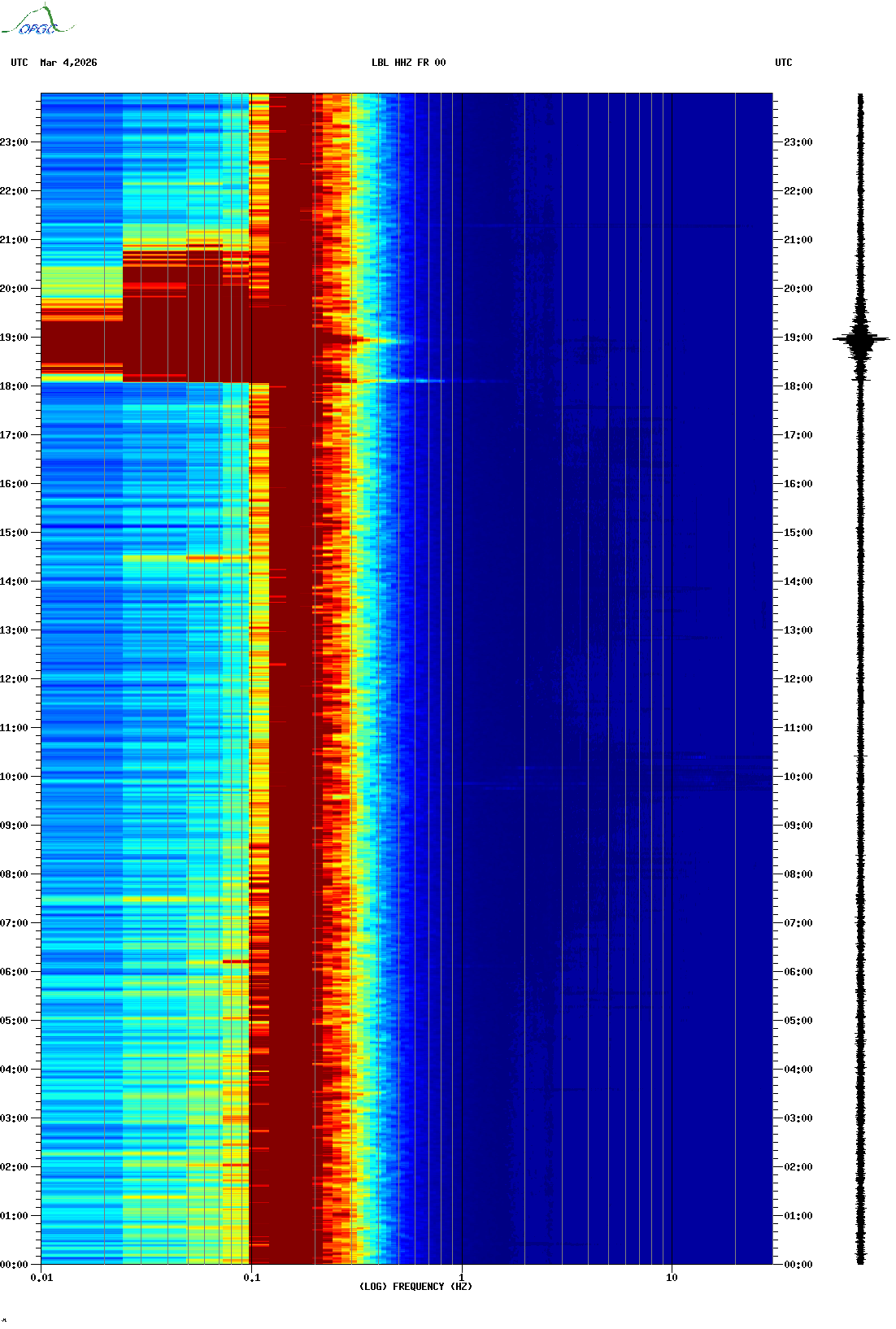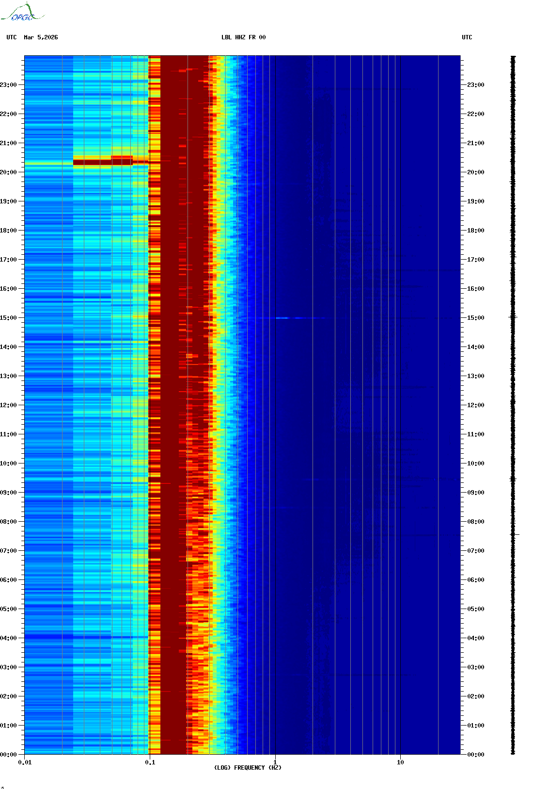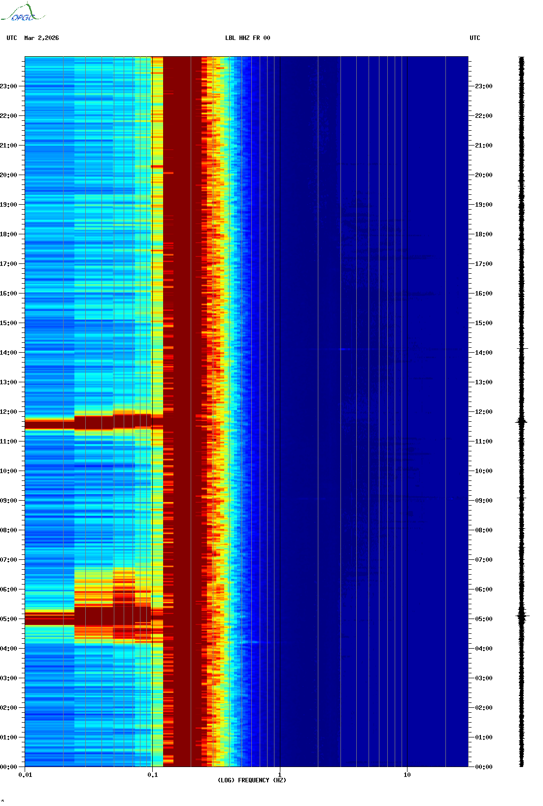 Spectrogrammes du Réseau Sismologique Auvergne-Charentes