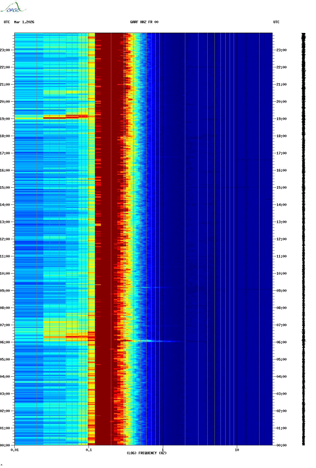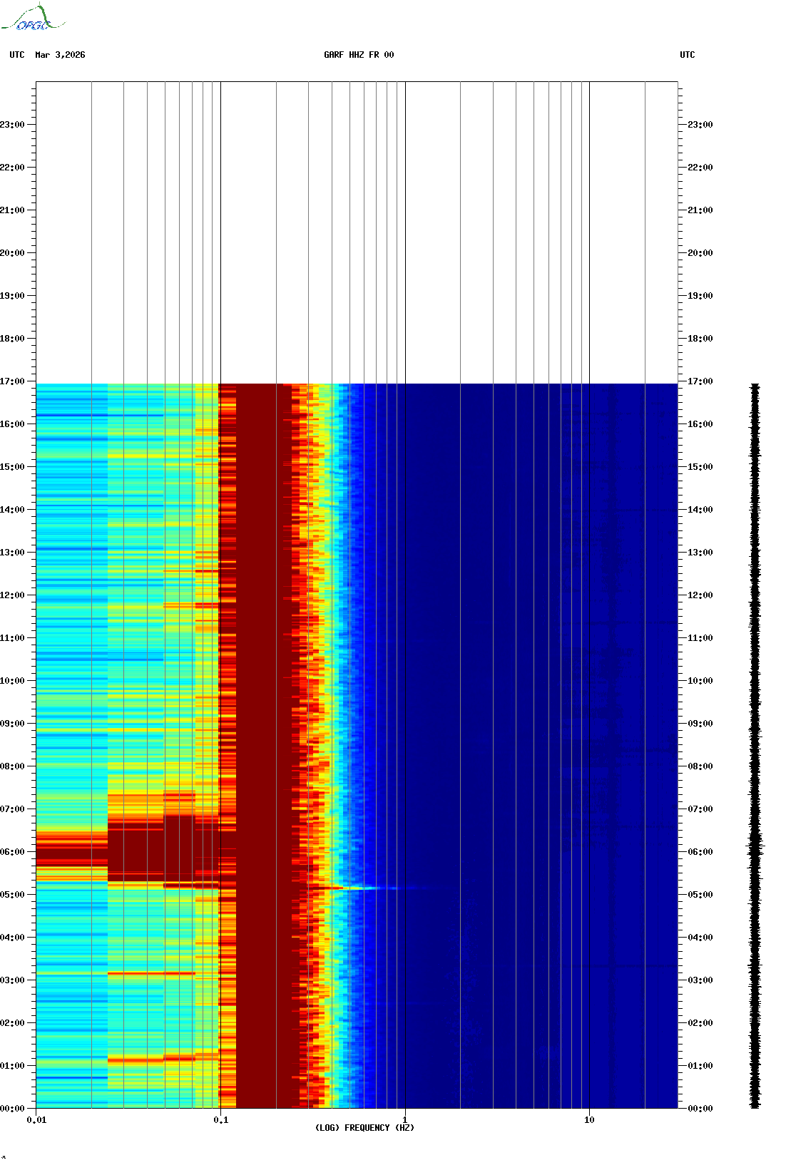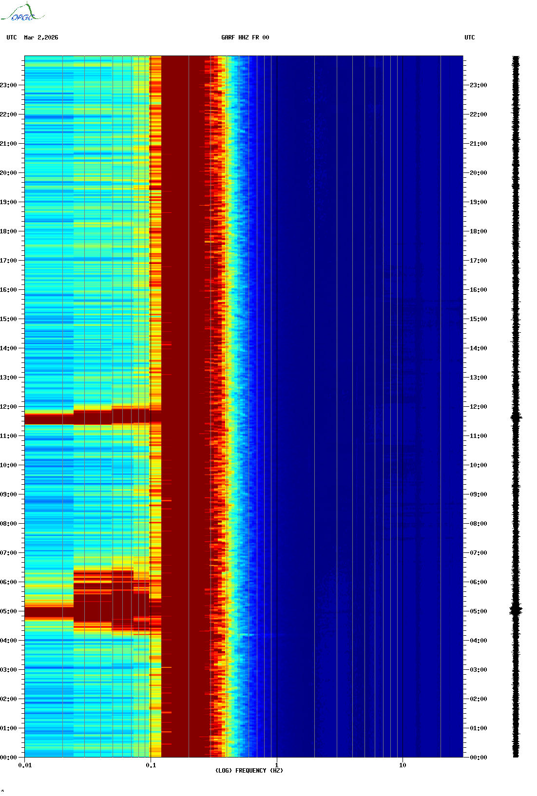 Spectrogrammes du Réseau Sismologique Auvergne-Charentes