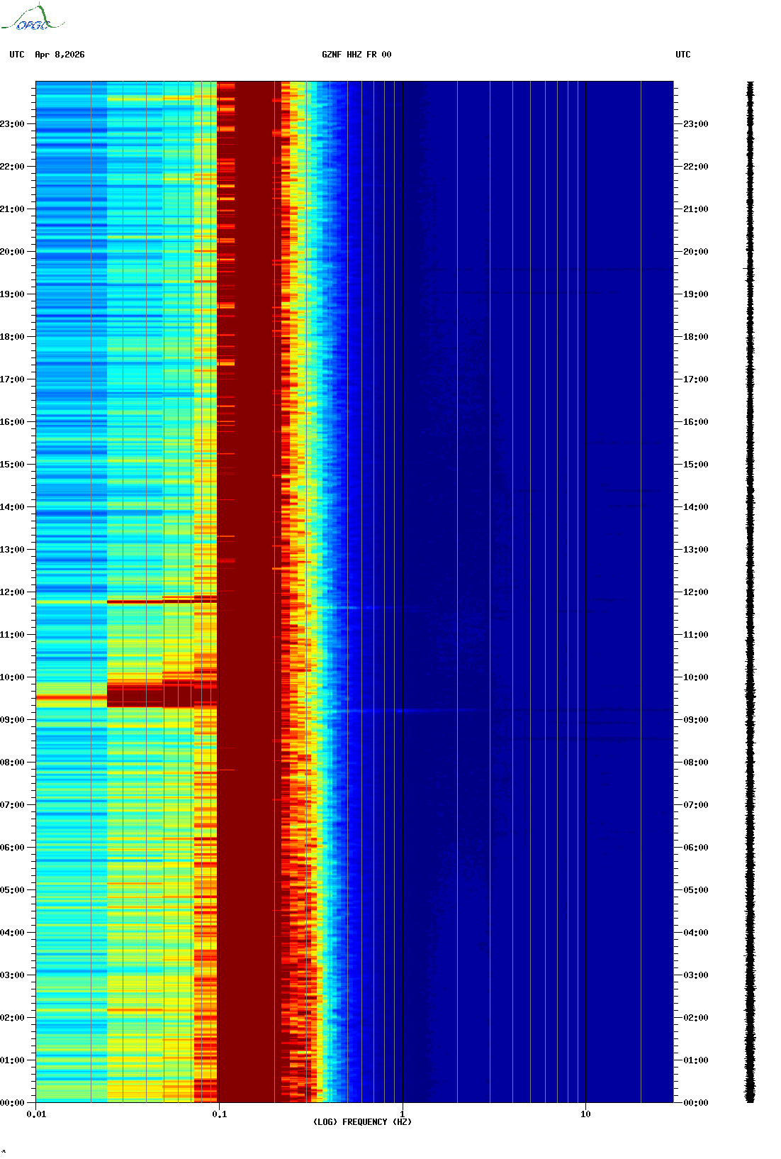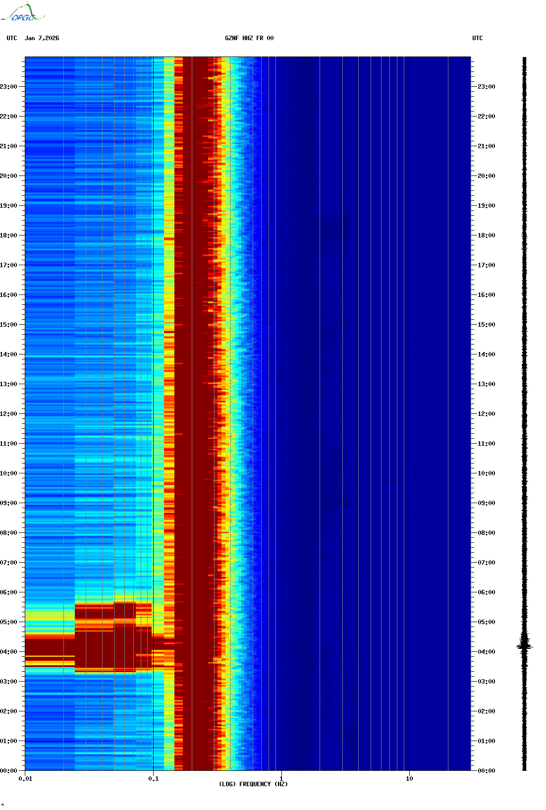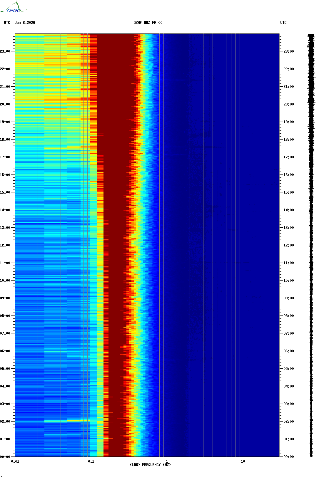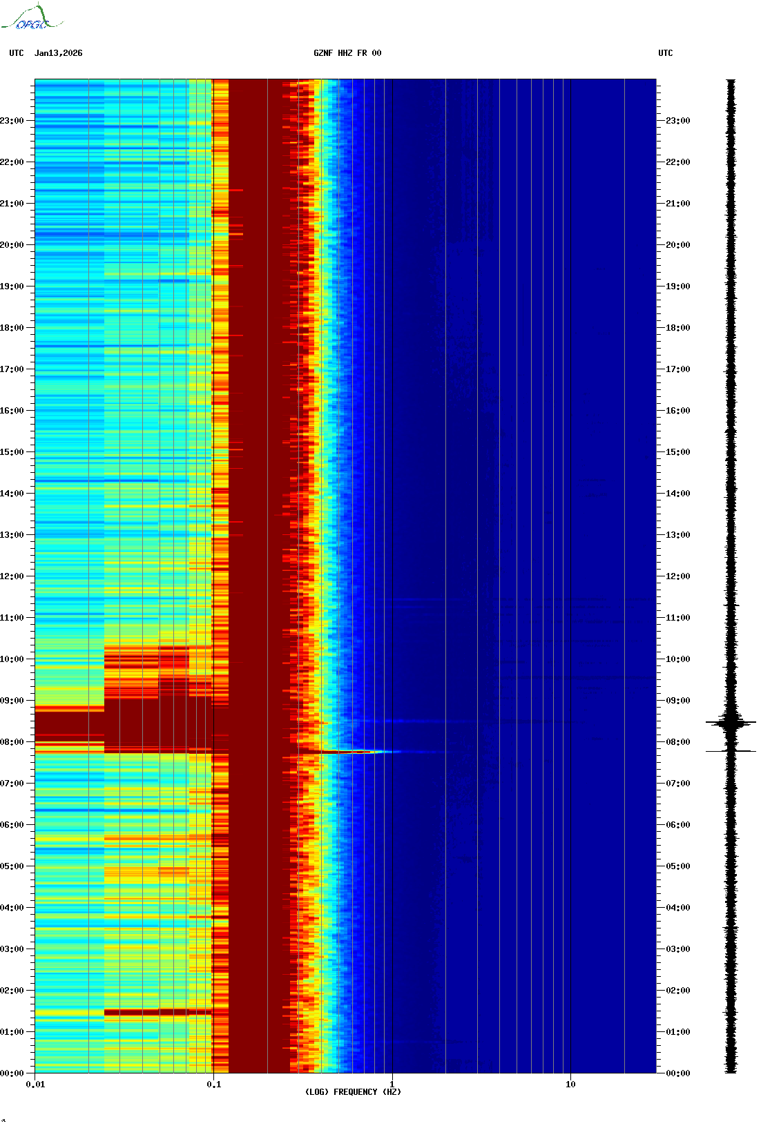 Spectrogrammes du Réseau Sismologique Auvergne-Charentes