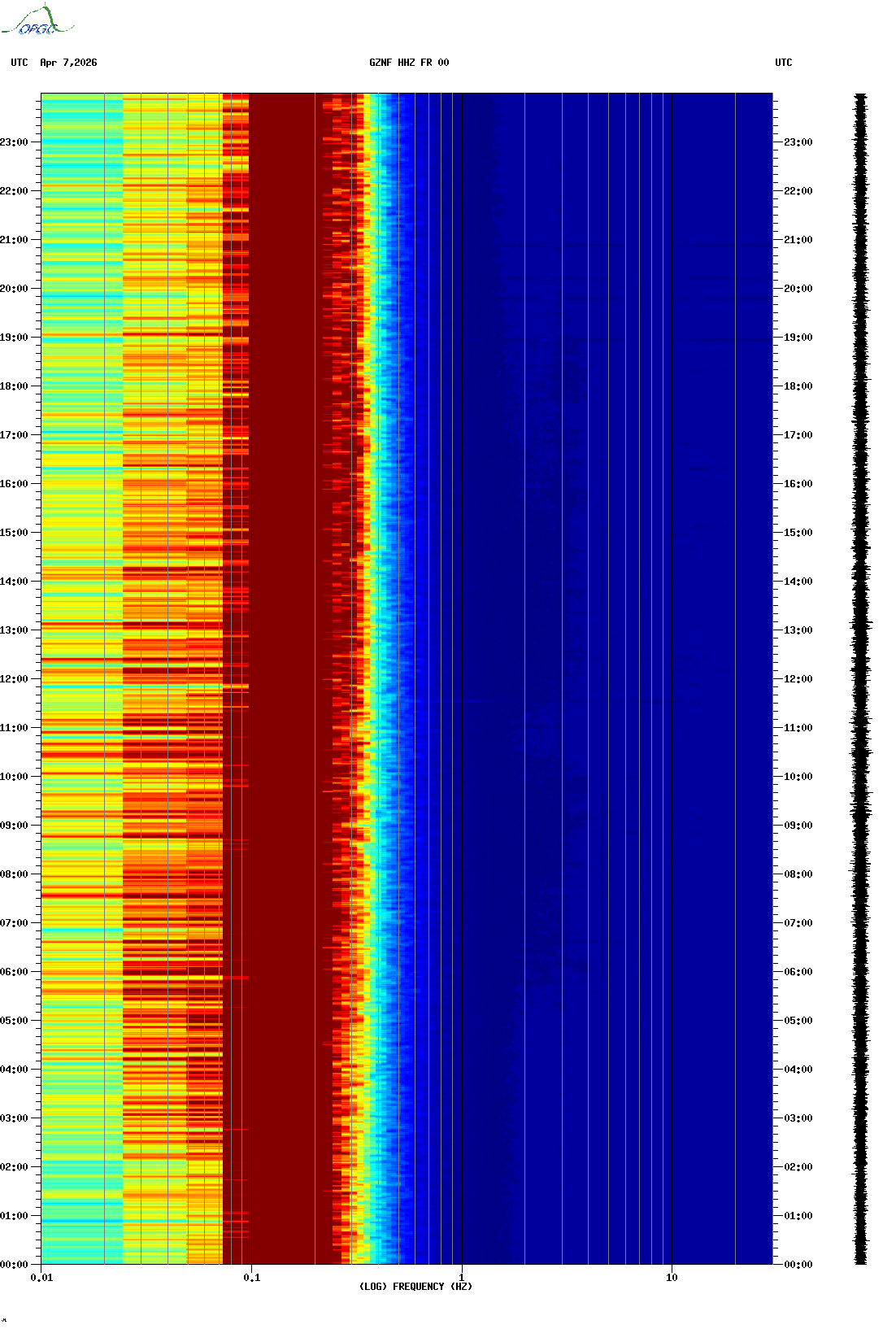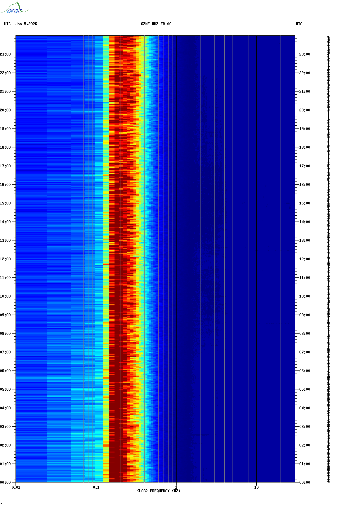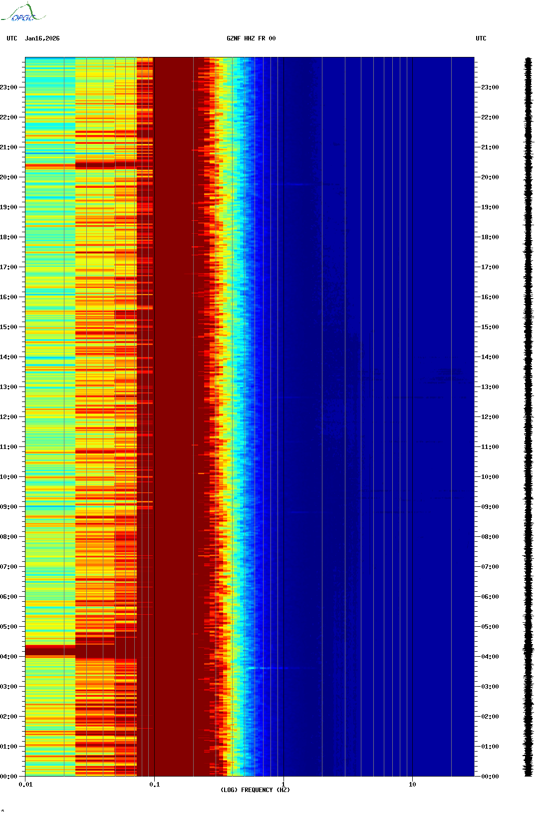 Spectrogrammes du Réseau Sismologique Auvergne-Charentes