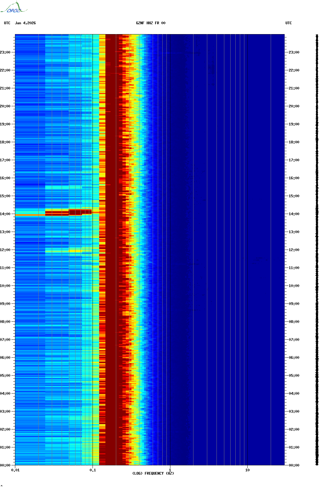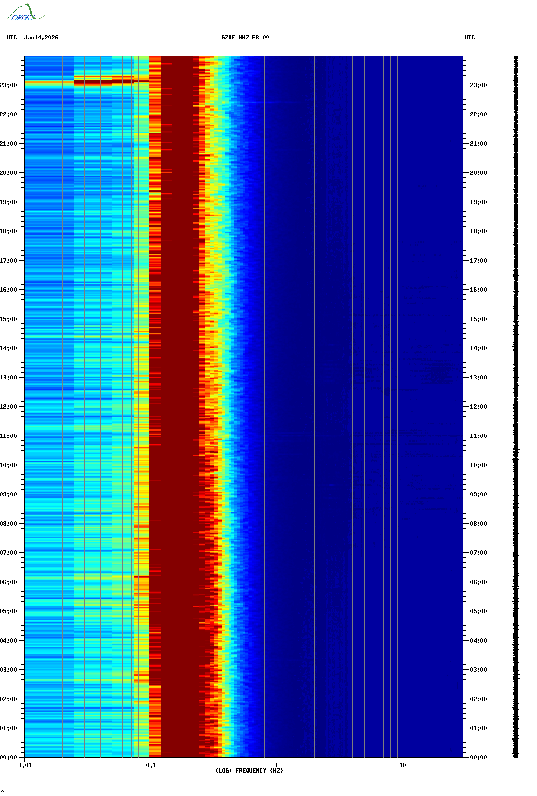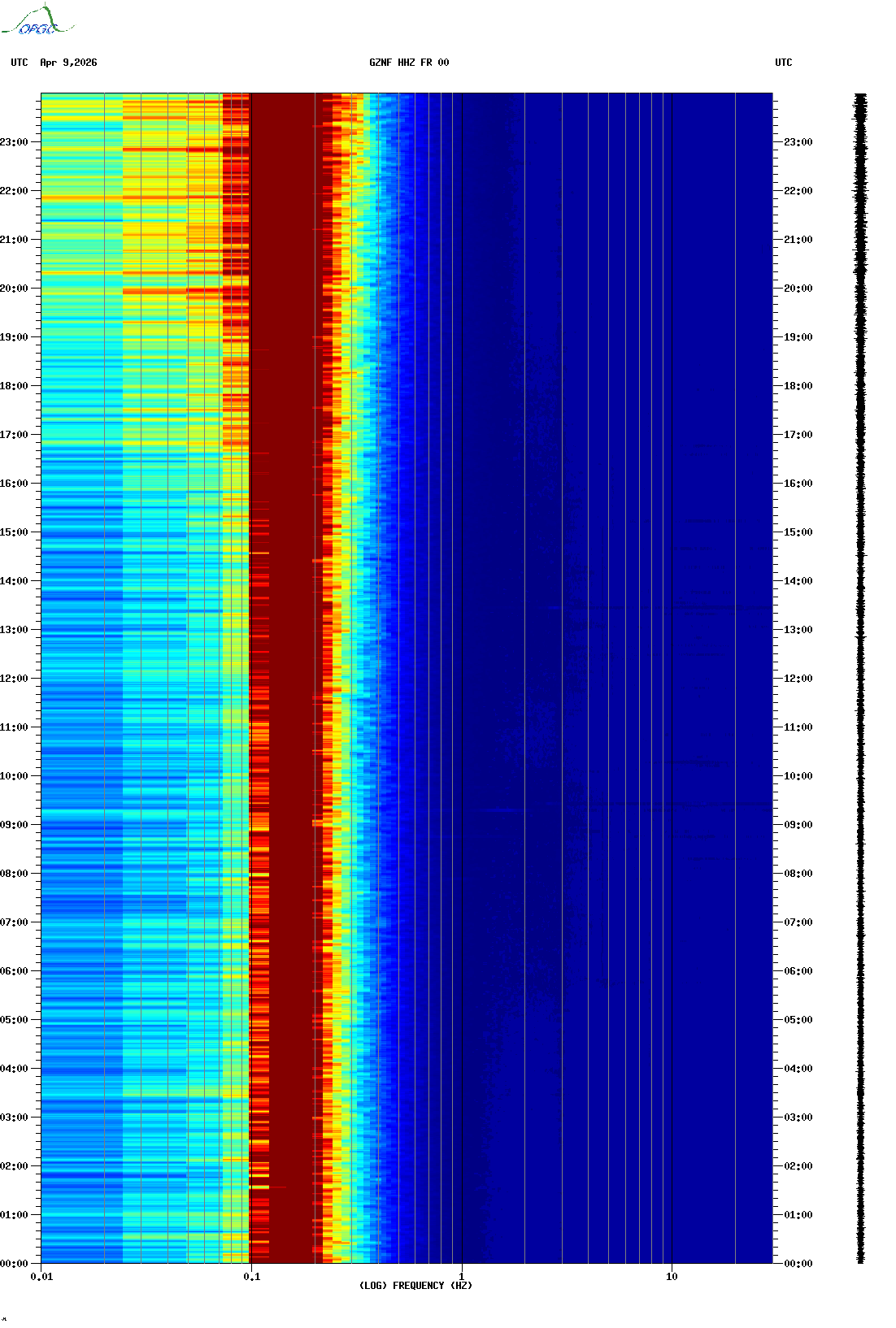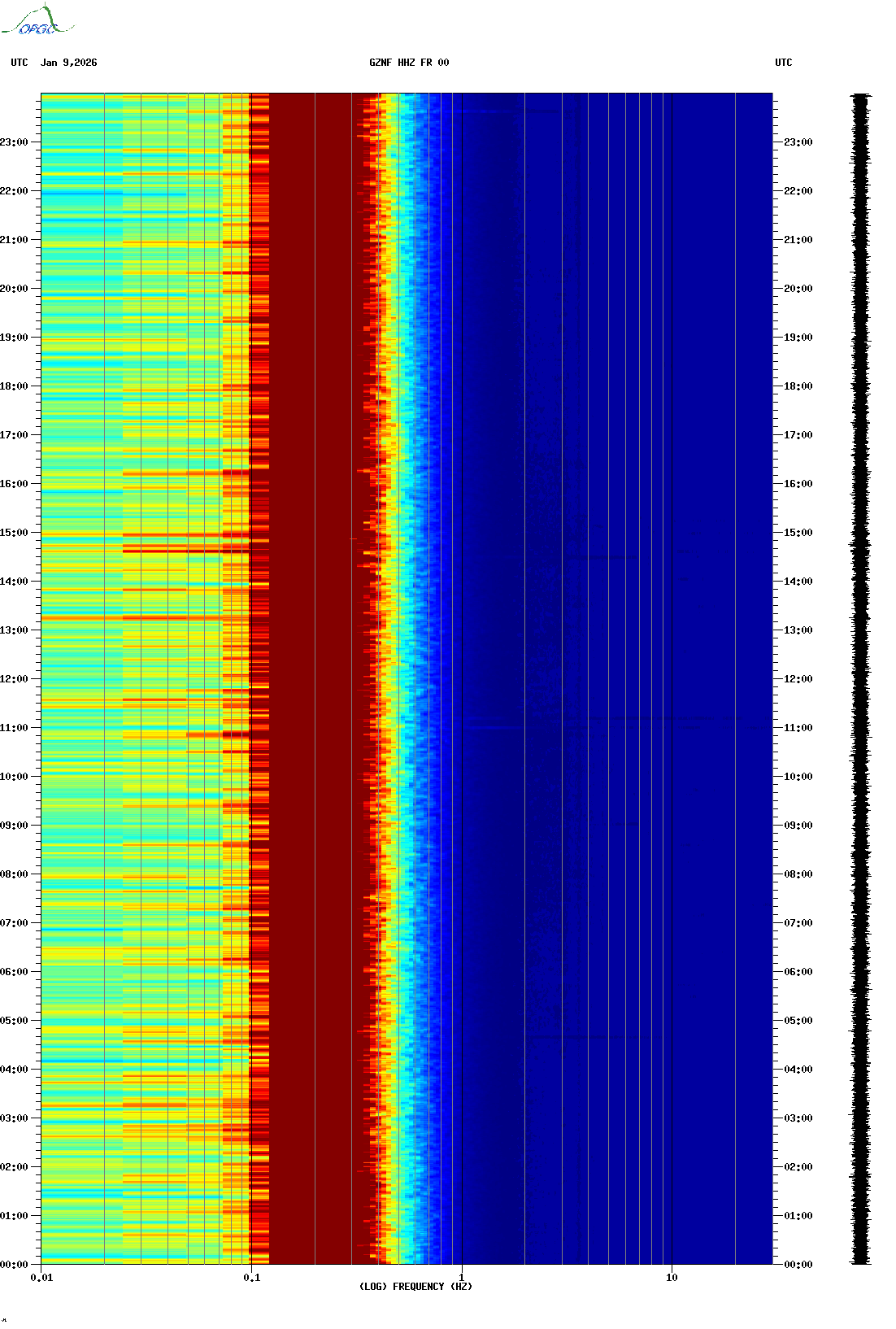 Spectrogrammes du Réseau Sismologique Auvergne-Charentes