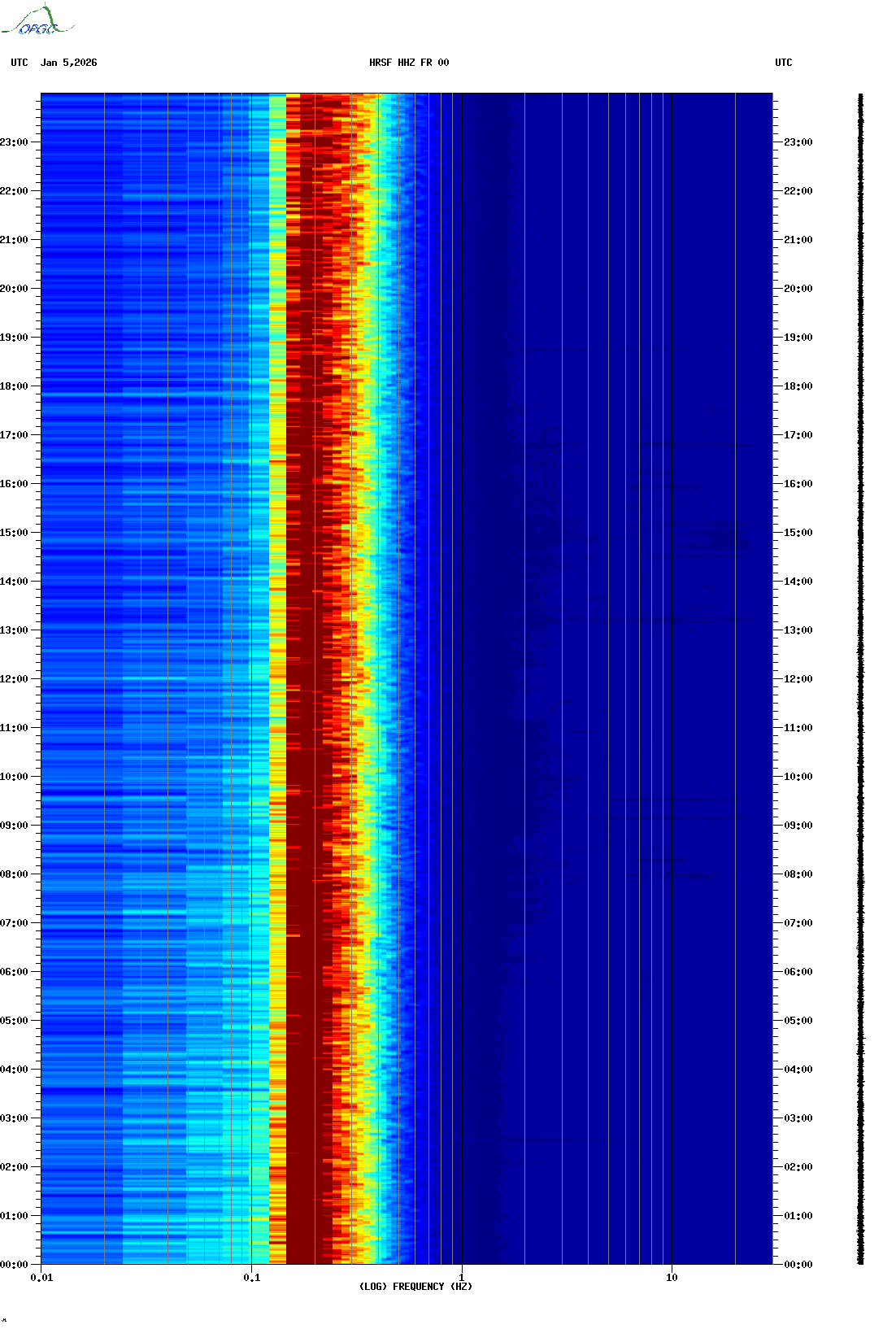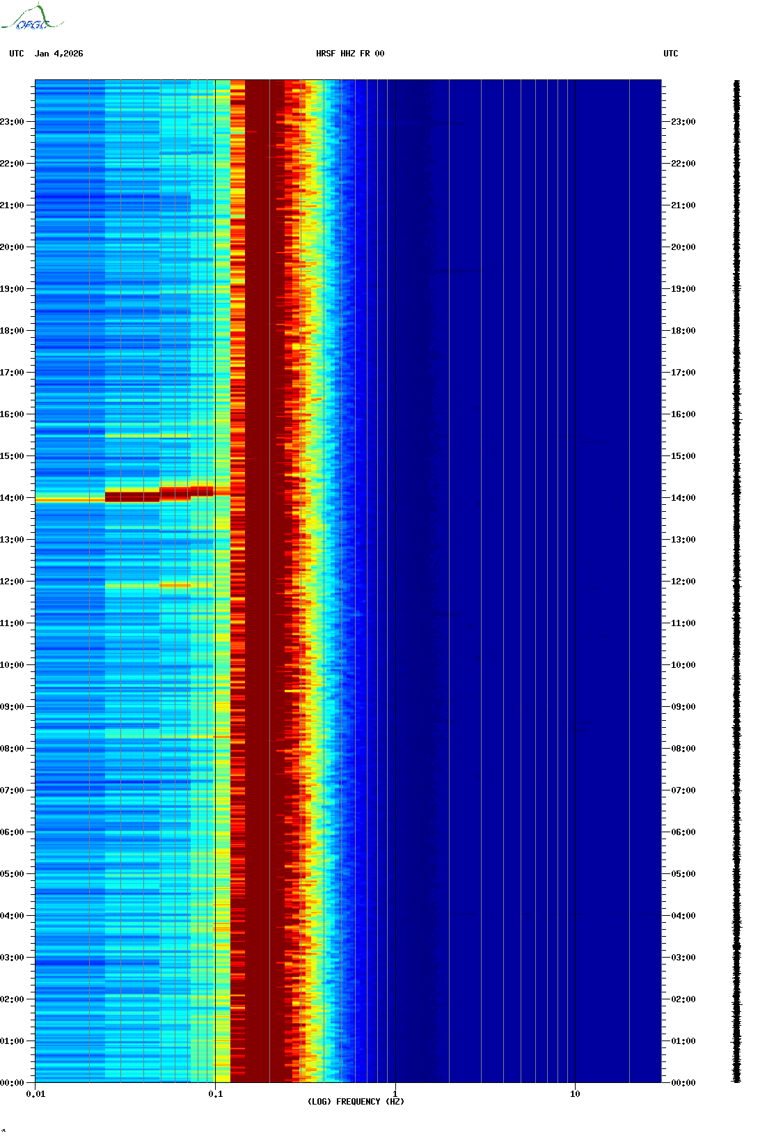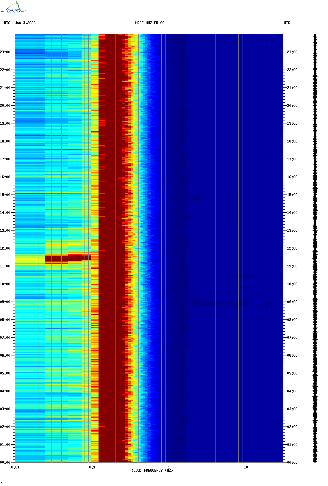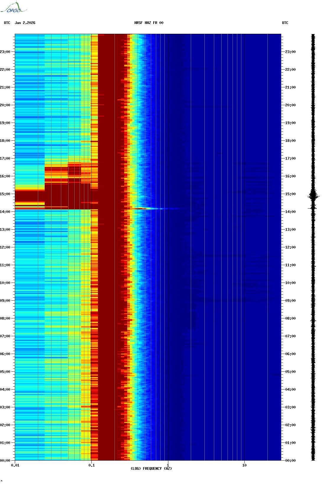 Spectrogrammes du Réseau Sismologique Auvergne-Charentes