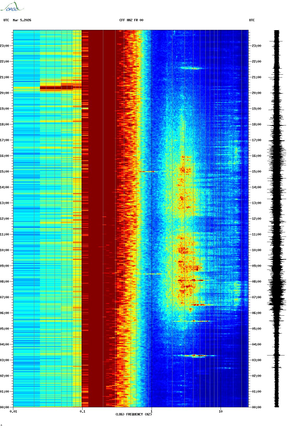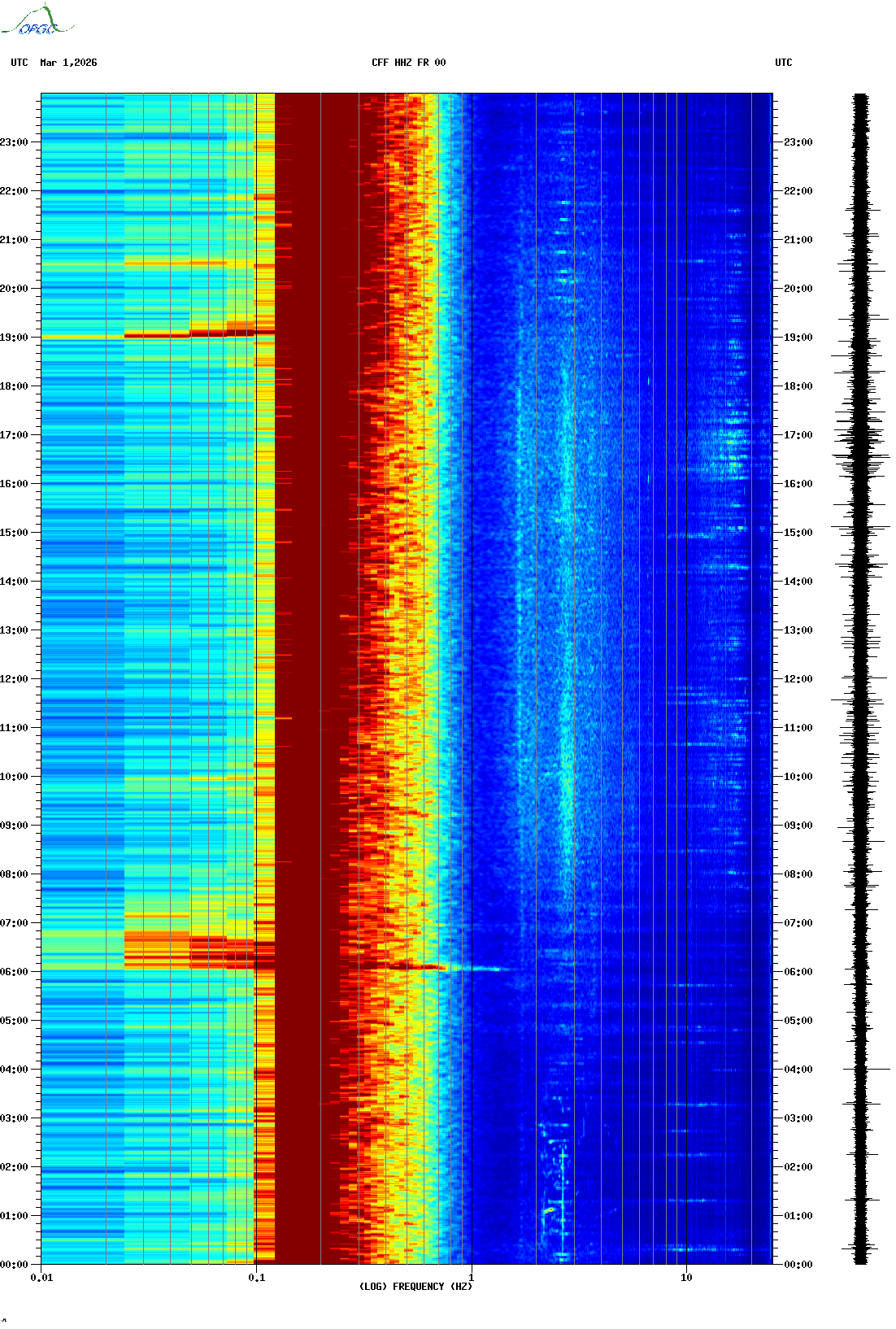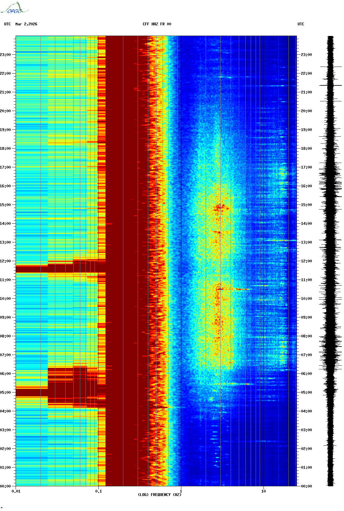 Spectrogrammes du Réseau Sismologique Auvergne-Charentes