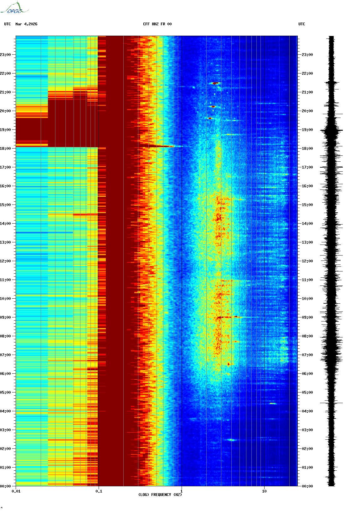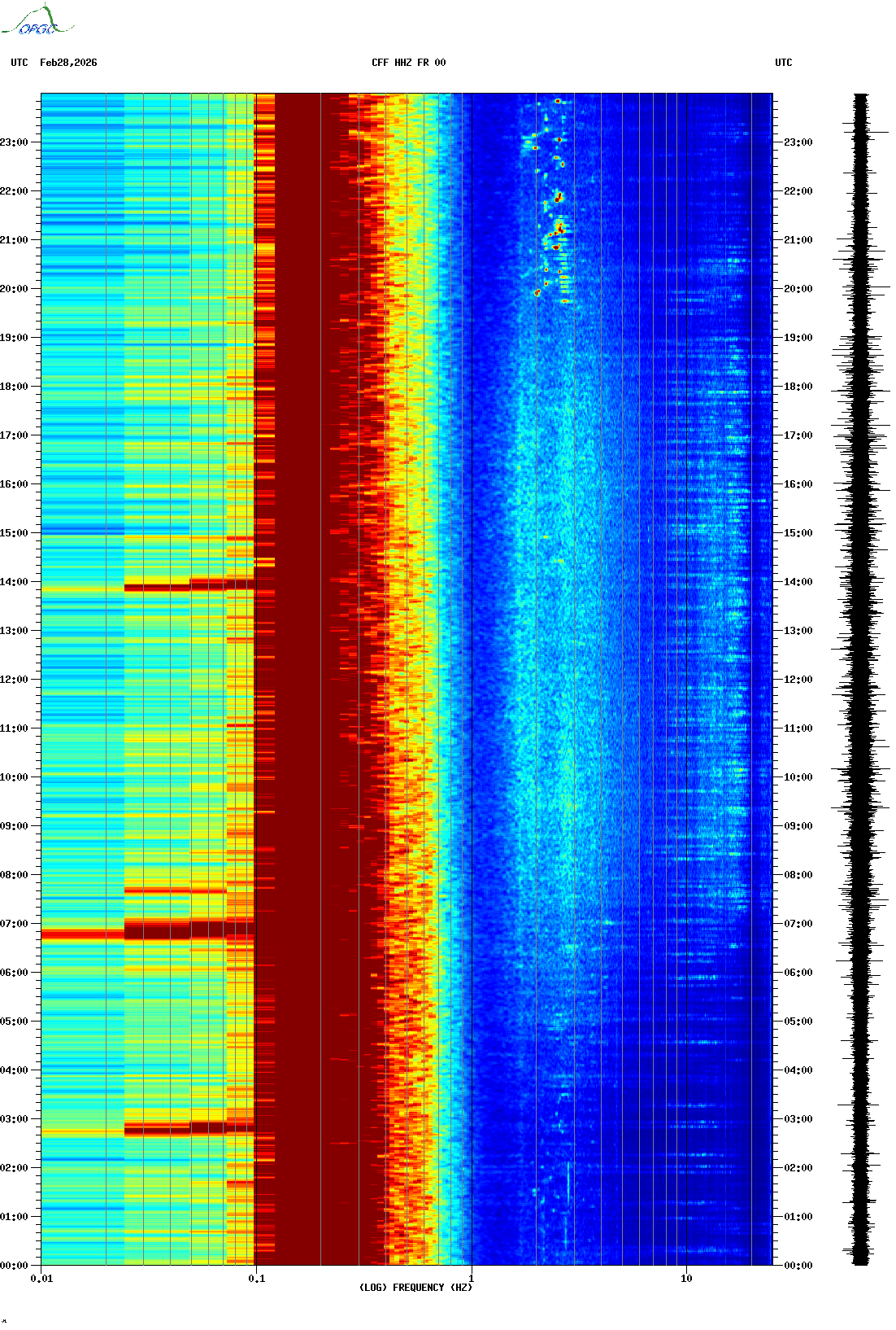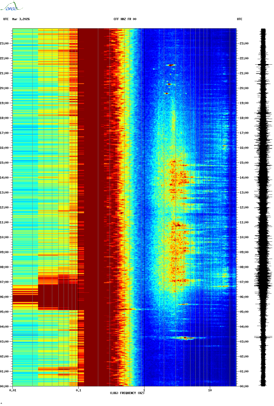 Spectrogrammes du Réseau Sismologique Auvergne-Charentes